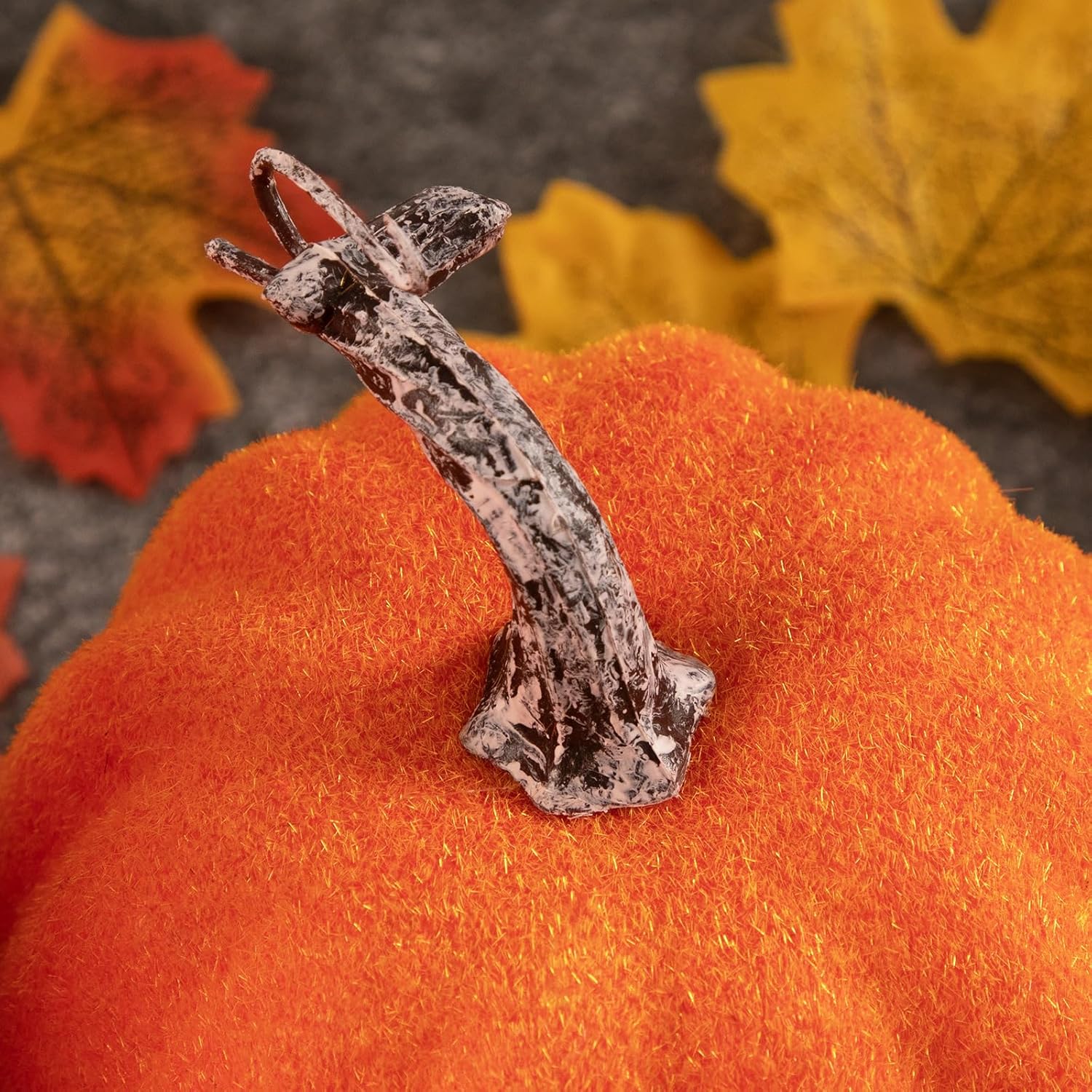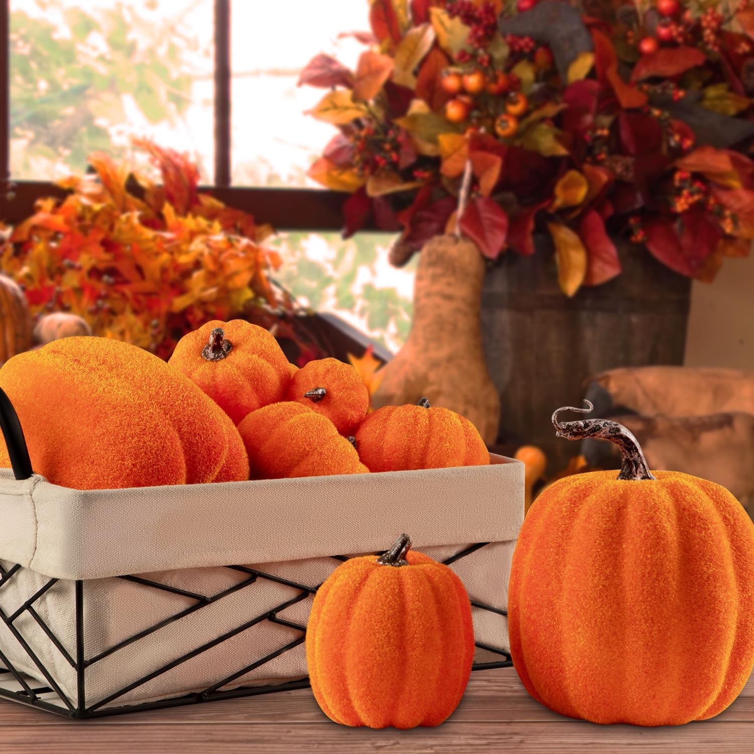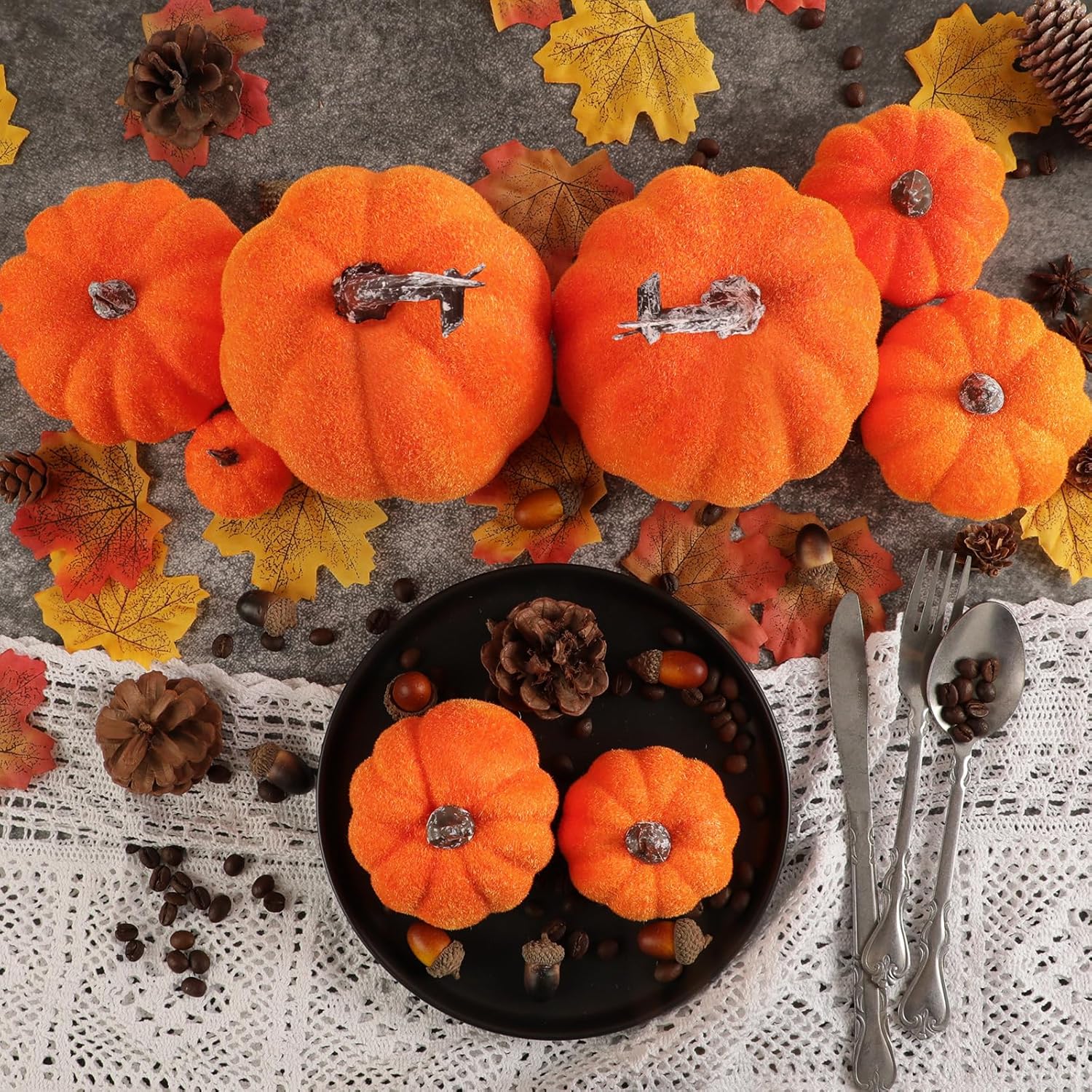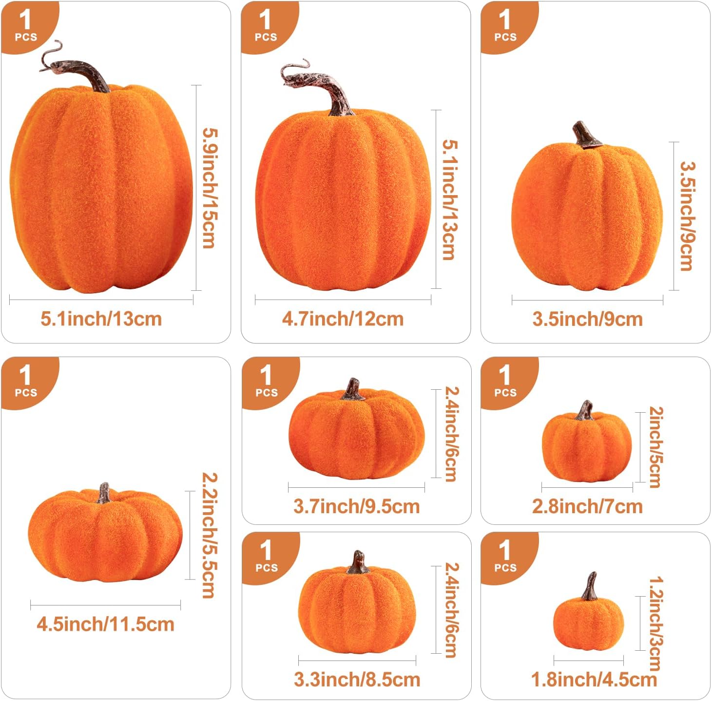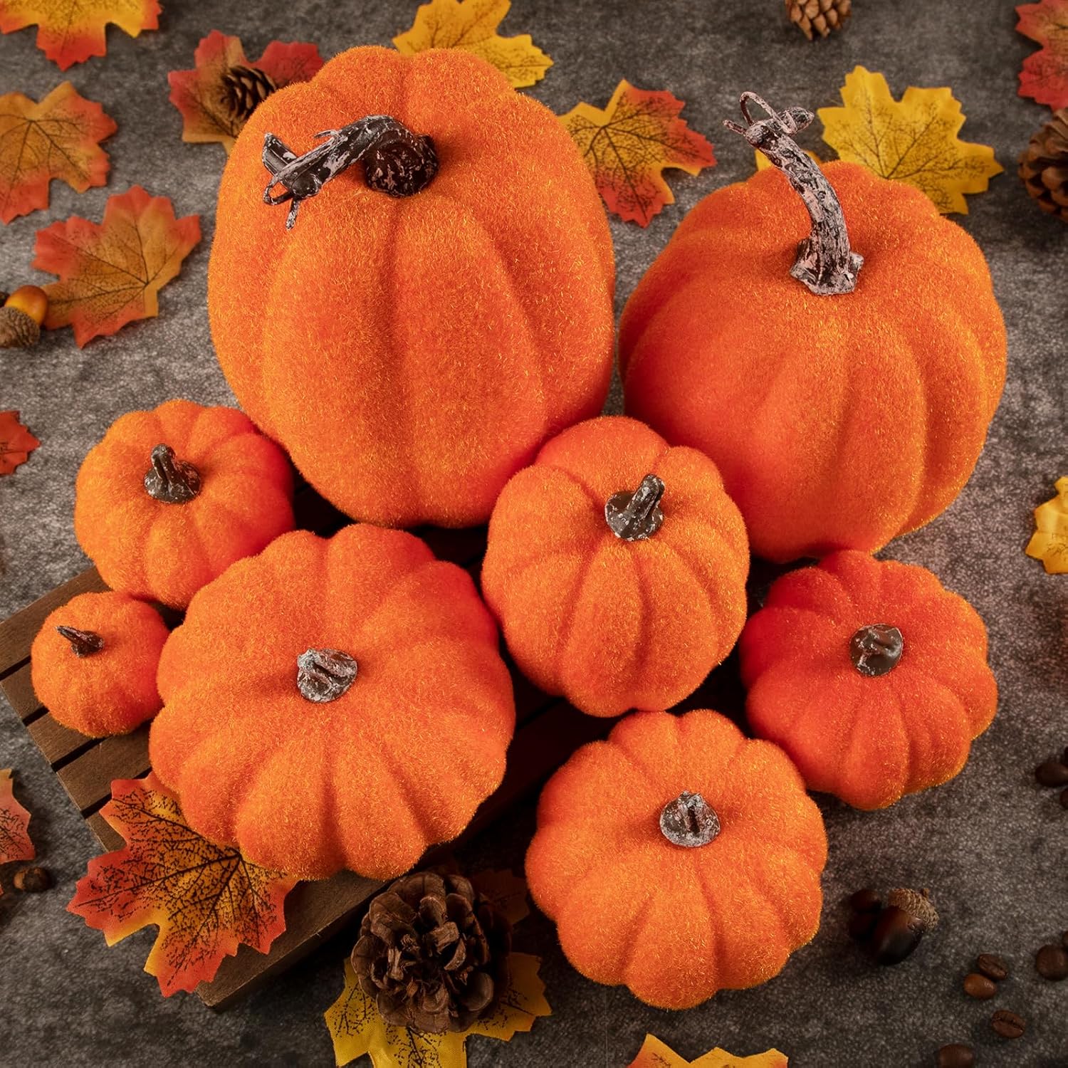 Benjia Пакет от 8 изкуствени тикви, есенни декорации, флокирани изкуствени тикви, фалшива тиква за вътрешна и външна декорация за Хелоуин, Деня на благодарността, есенна декорация (оранжева)