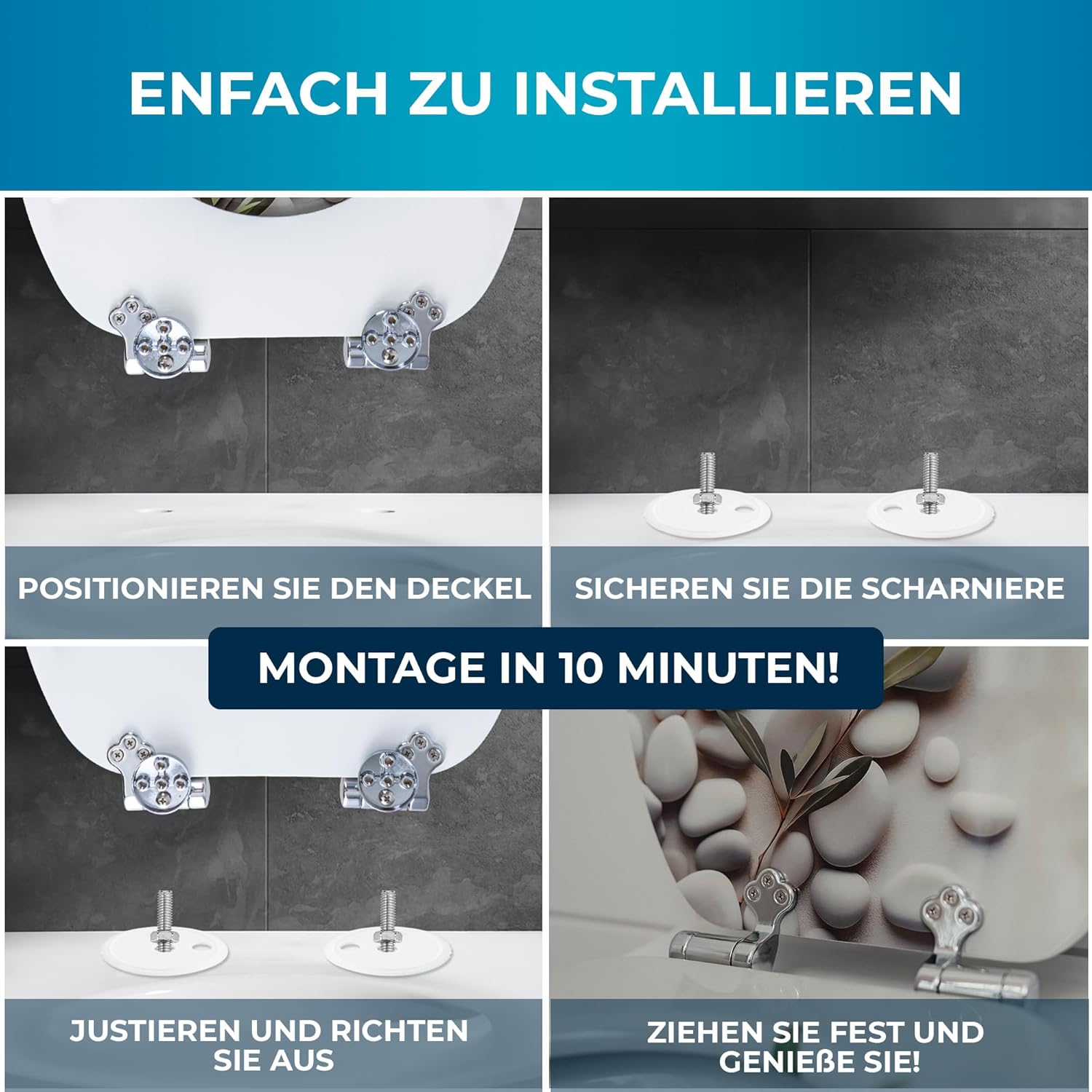 • Лесен за сглобяване и издръжливост до 150 кг: Висококачественото покритие на пантите от неръждаема стомана позволява бърз и безклатещ се монтаж отгоре. За монтажа е необходима само стандартна отвертка. Капакът има тестван капацитет на натоварване от 150 кг (DIN 19516) и по този начин винаги ви предлага сигурно захващане.