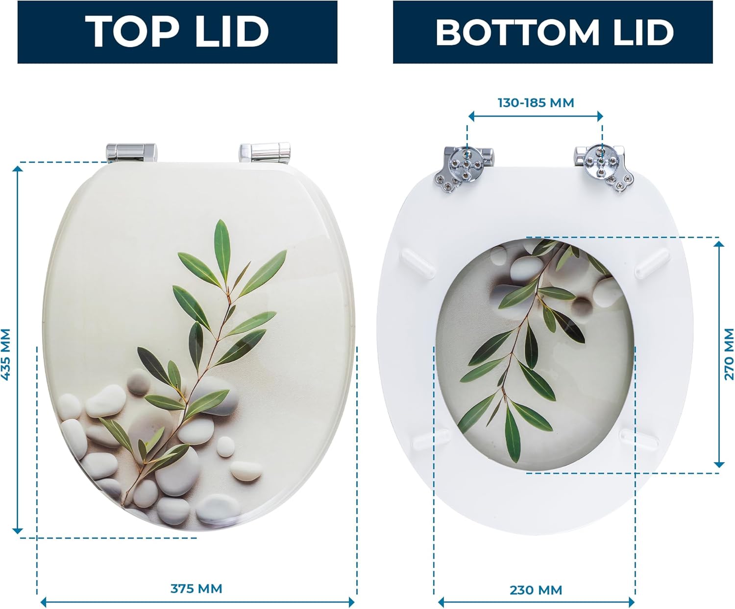• Двоен механизъм за плавно затваряне: Функцията за плавно затваряне позволява както на капака, така и на седалката да се плъзгат плавно надолу. Никой в ​​домакинството никога повече няма да бъде събуден от шума на блъскаща се тоалетна седалка.