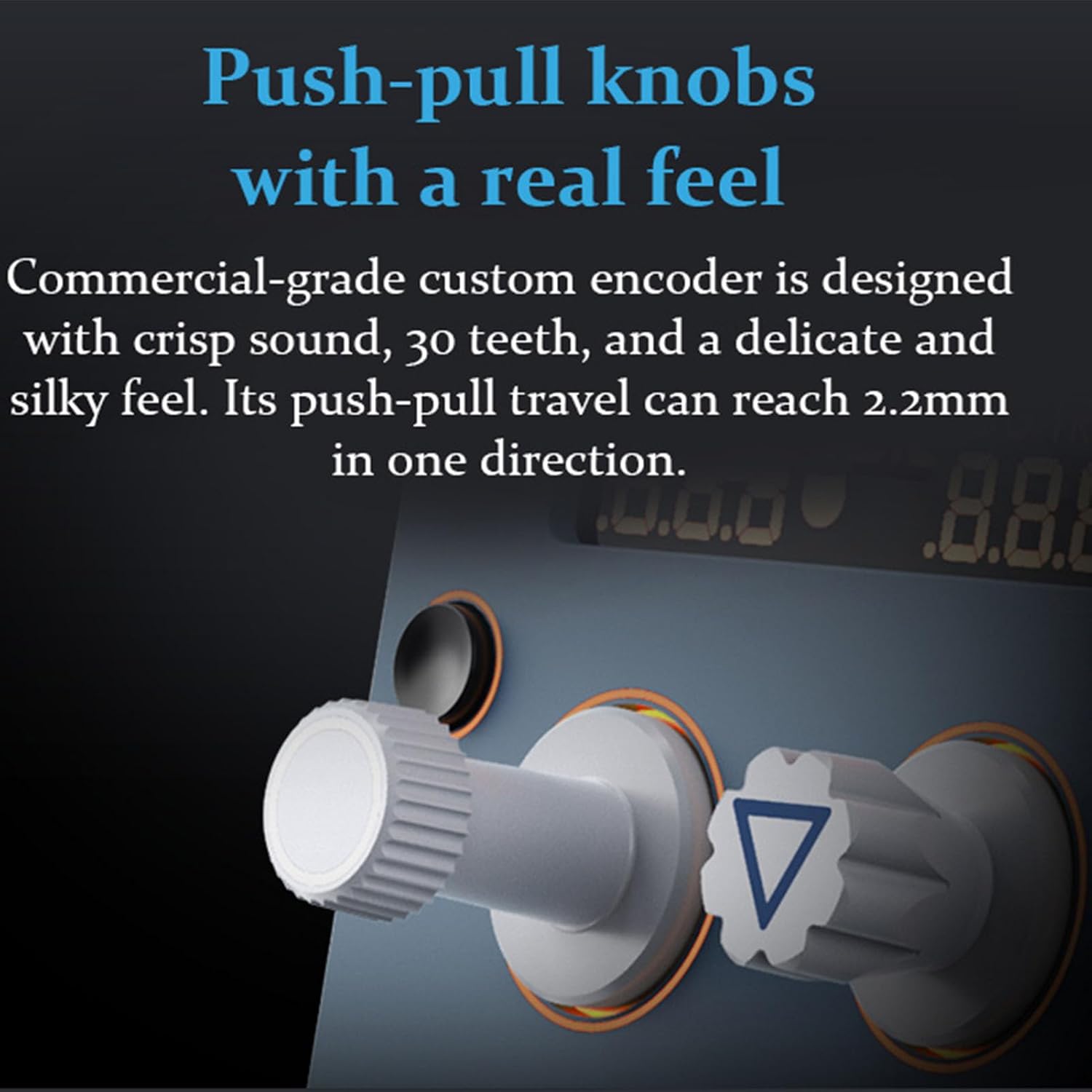 2.4 knobs with push and pull stroke of 2.5mm each,and a rotational angle of 360°(Without detents.)