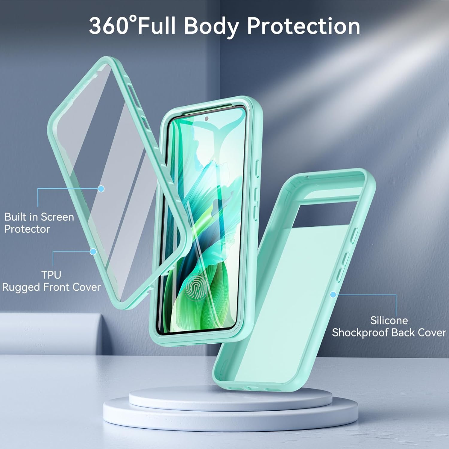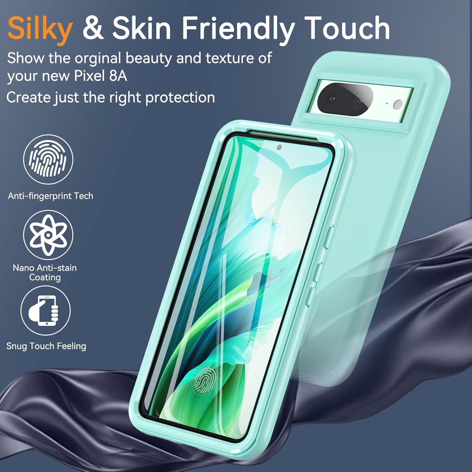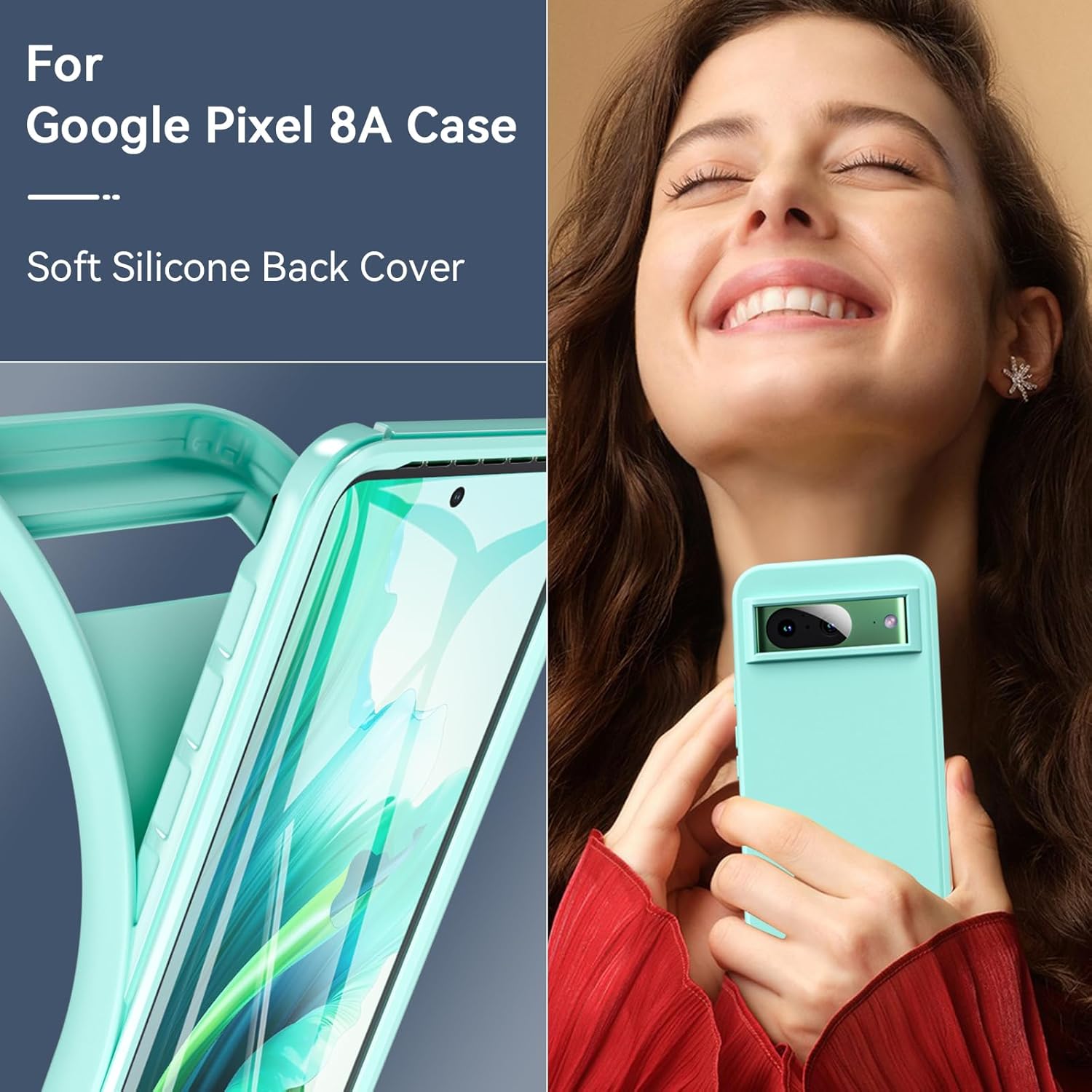BESINPO Кейс за Google Pixel 8a, Силиконов 360° всестранна защита с вграден протектор за екрана, Здрав капак, устойчив на надраскване, защитен калъф за мобилен телефон за Pixel 8a (зелен)