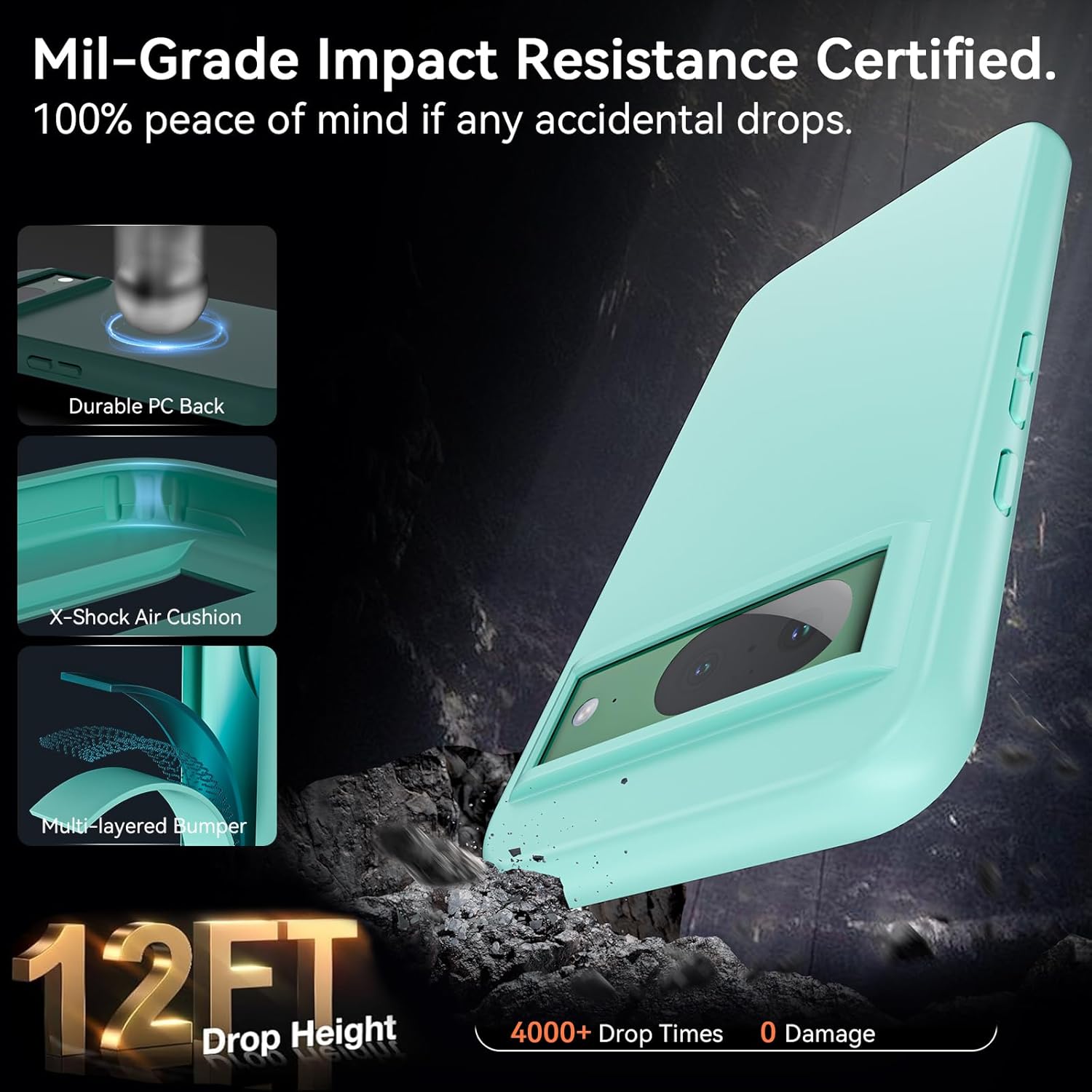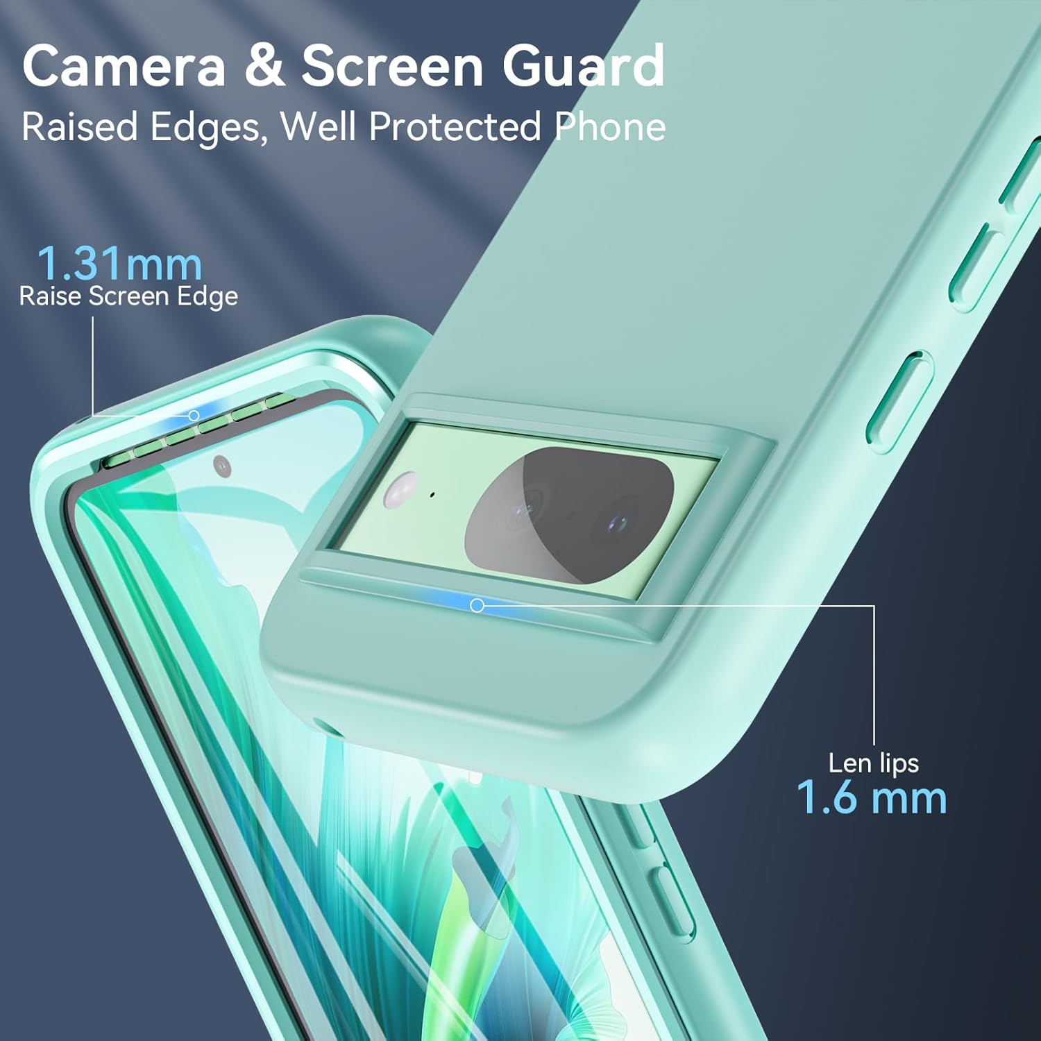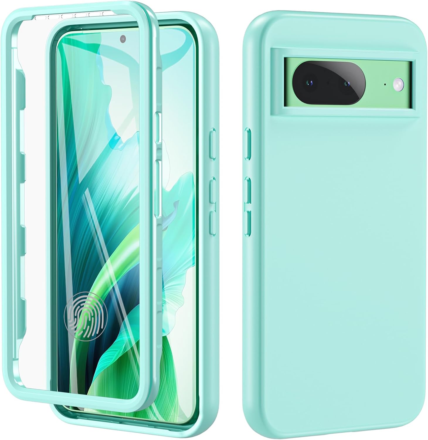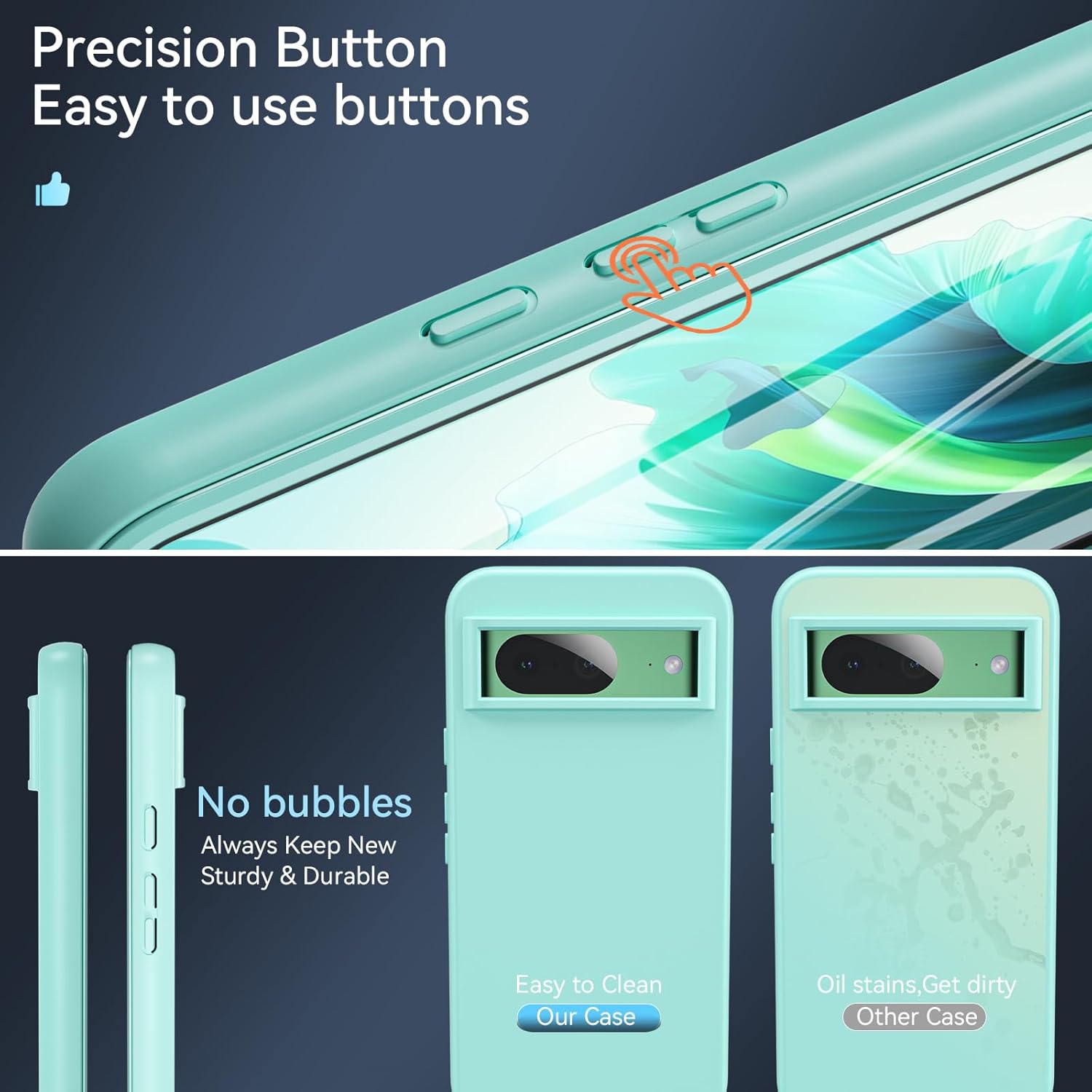 BESINPO Кейс за Google Pixel 8a, Силиконов 360° всестранна защита с вграден протектор за екрана, Здрав капак, устойчив на надраскване, защитен калъф за мобилен телефон за Pixel 8a (зелен)