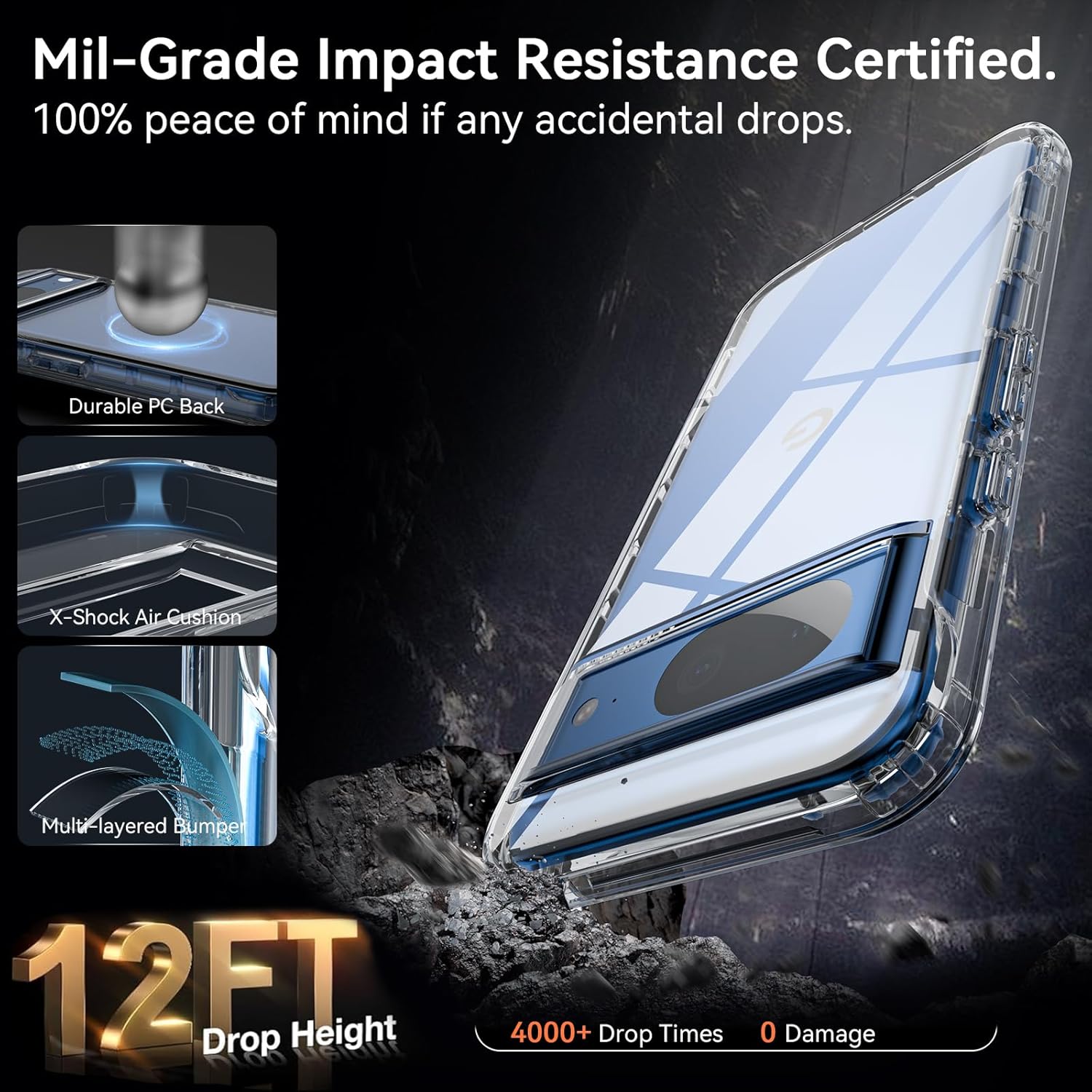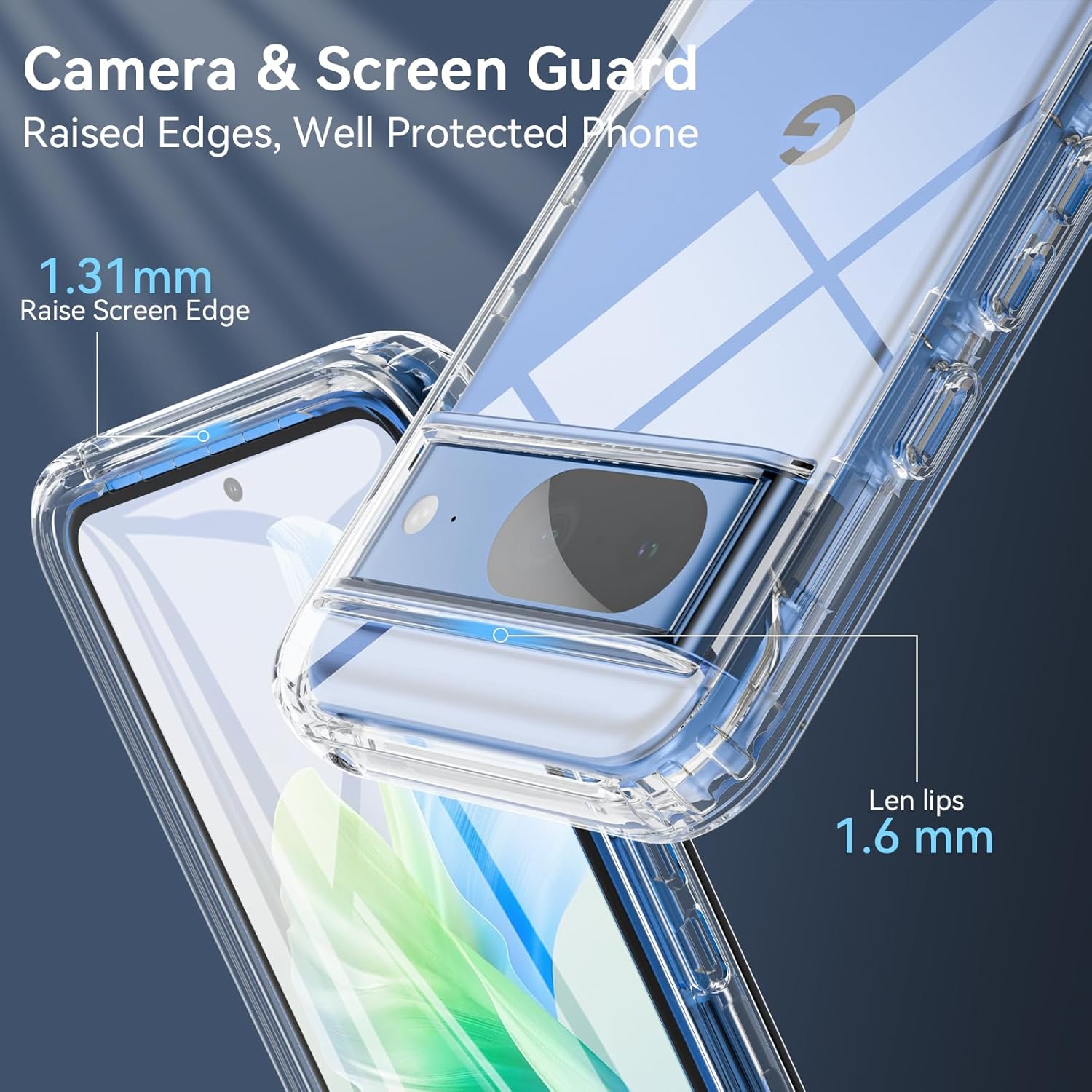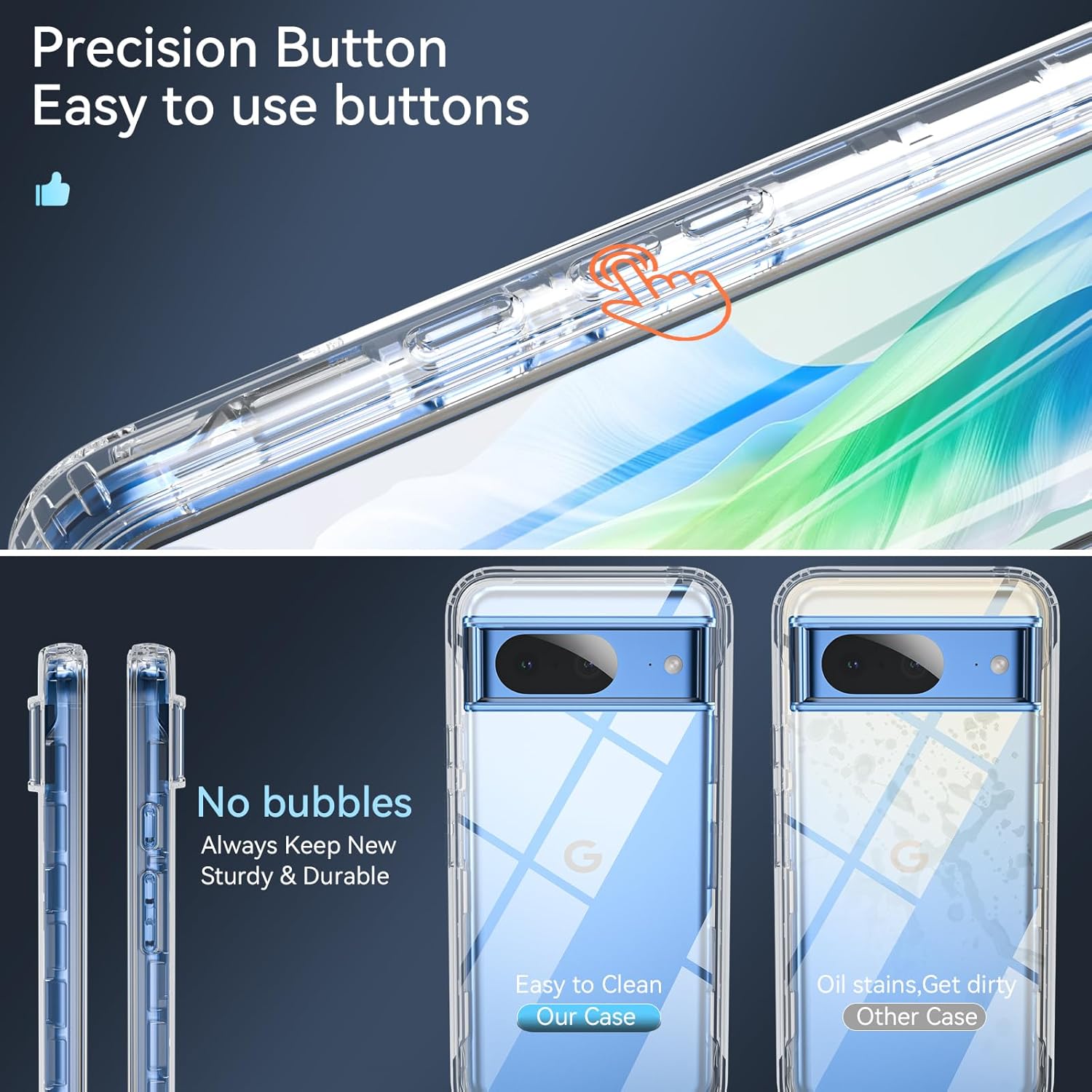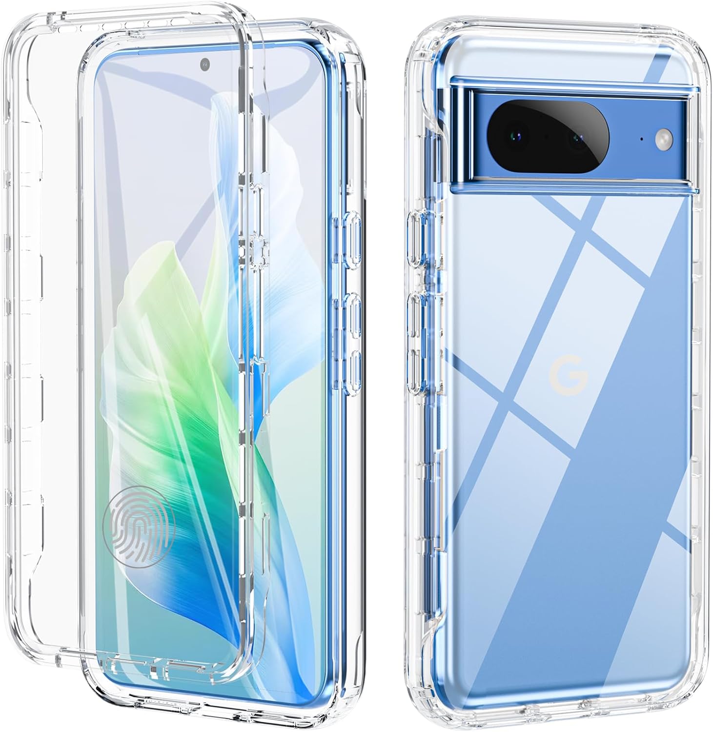 BESINPO Кейс за Google Pixel 8a, Силиконов 360° всестранна защита с вграден протектор за екрана, Здрав капак, защитен калъф за мобилен телефон за Pixel 8a за употреба на открито (прозрачен)