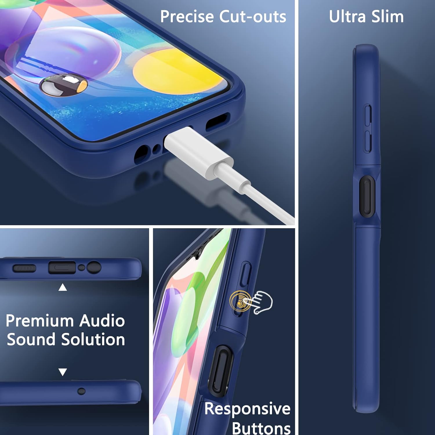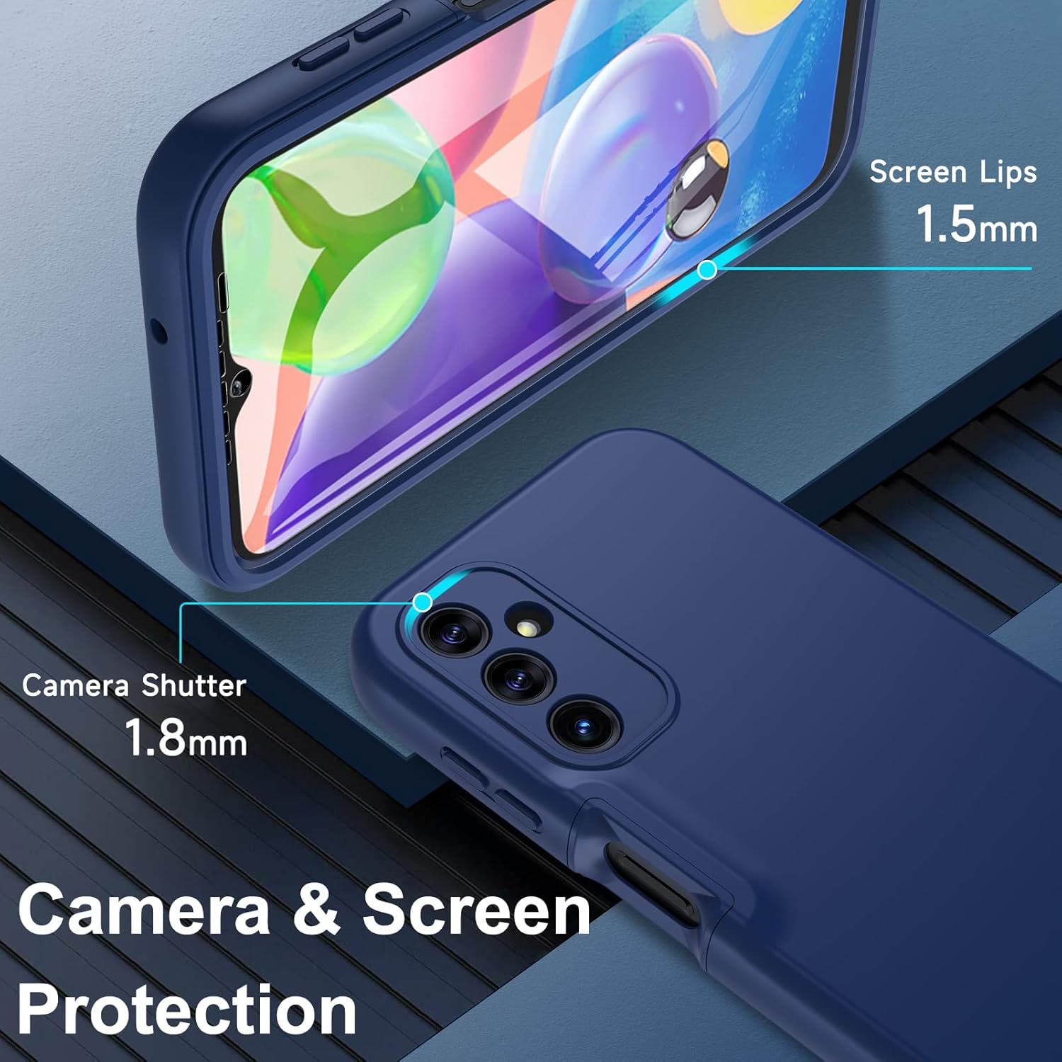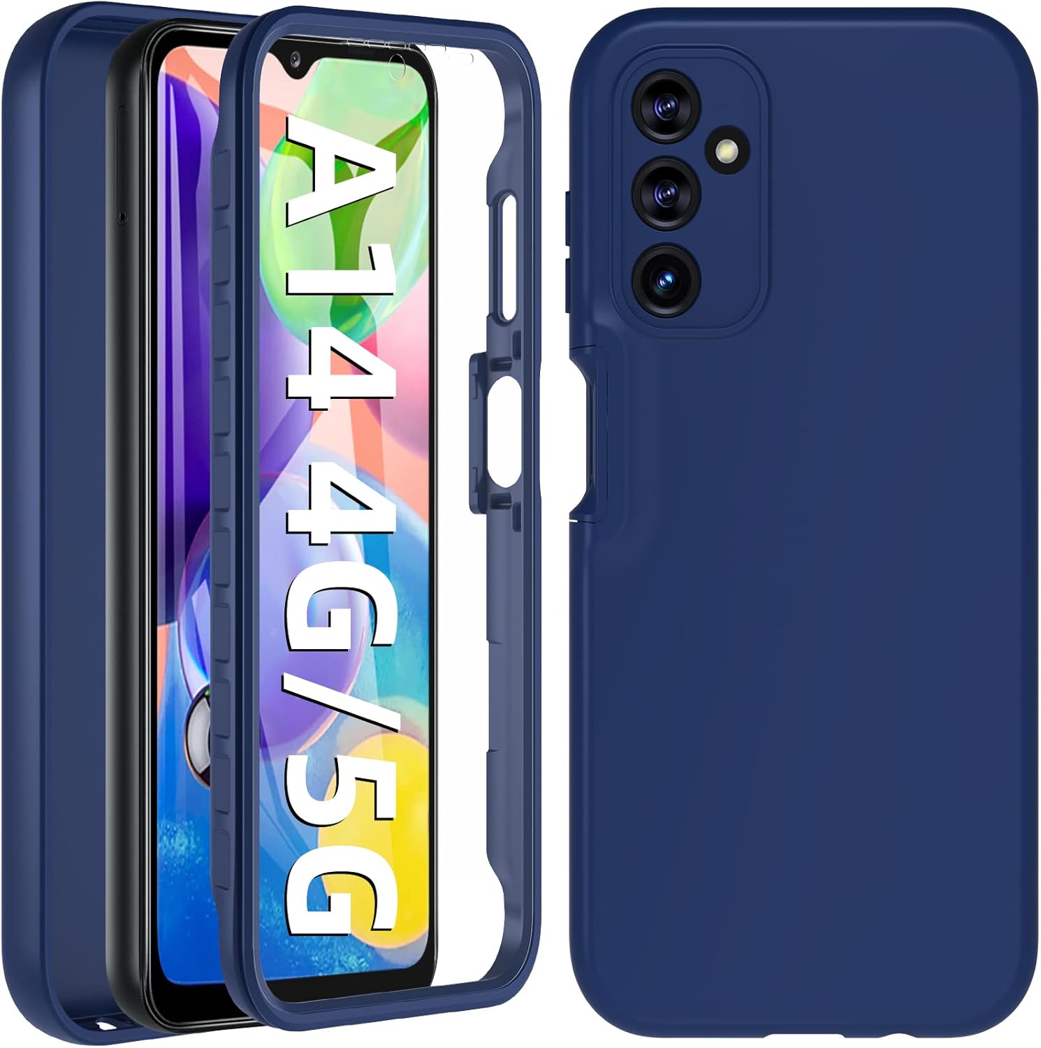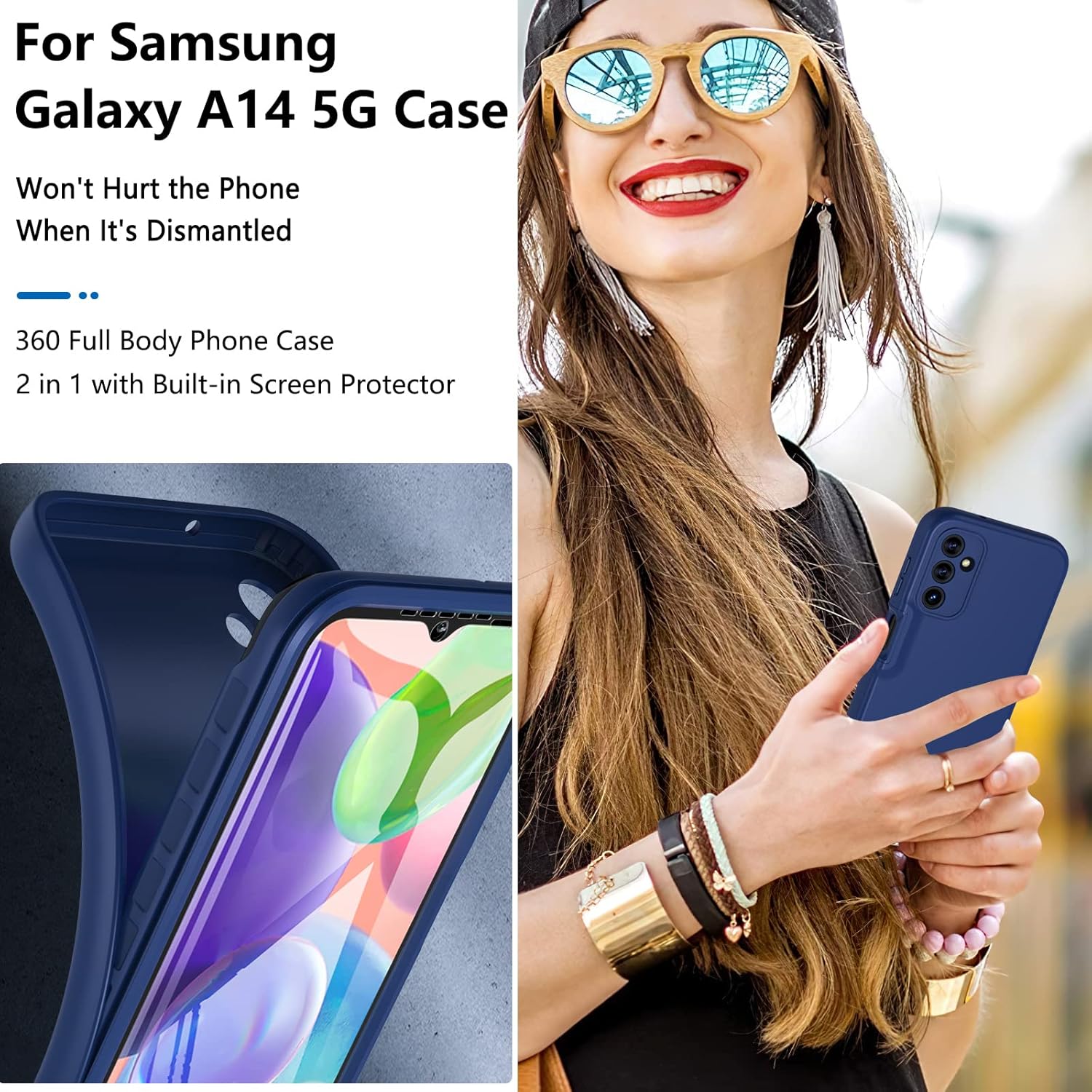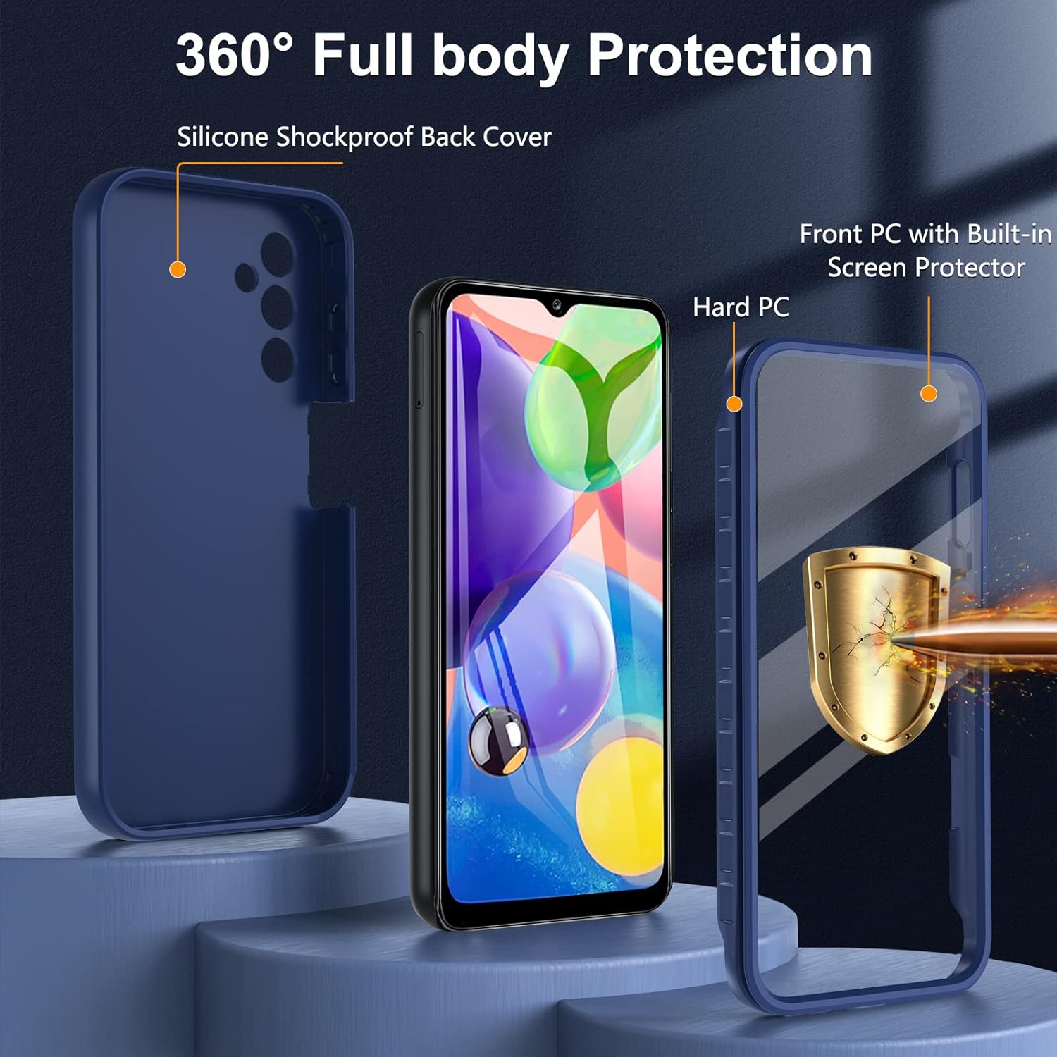 BESINPO Кейс за Samsung A14 5G/A14 4G, за Galaxy A14, 360-градусов всестранно защитен кейс с вграден протектор за екрана, здрав силиконов защитен кейс за мобилен телефон за външна употреба