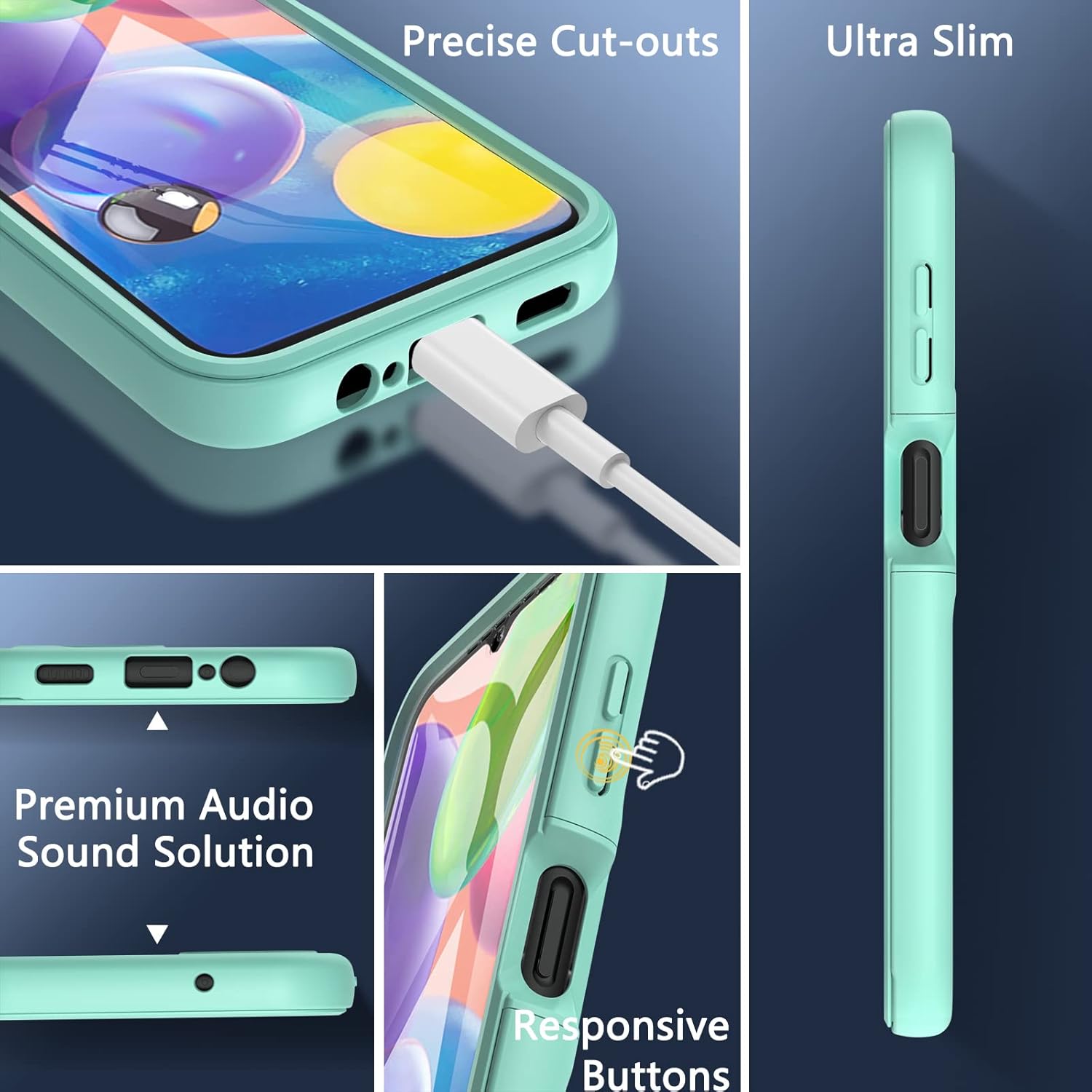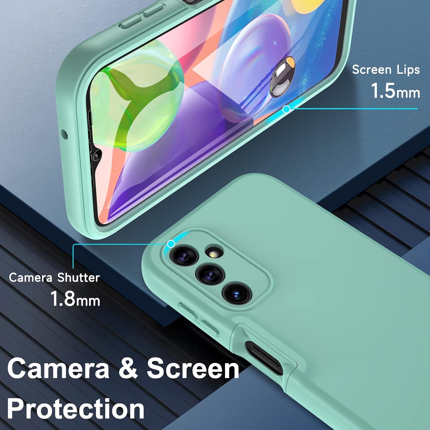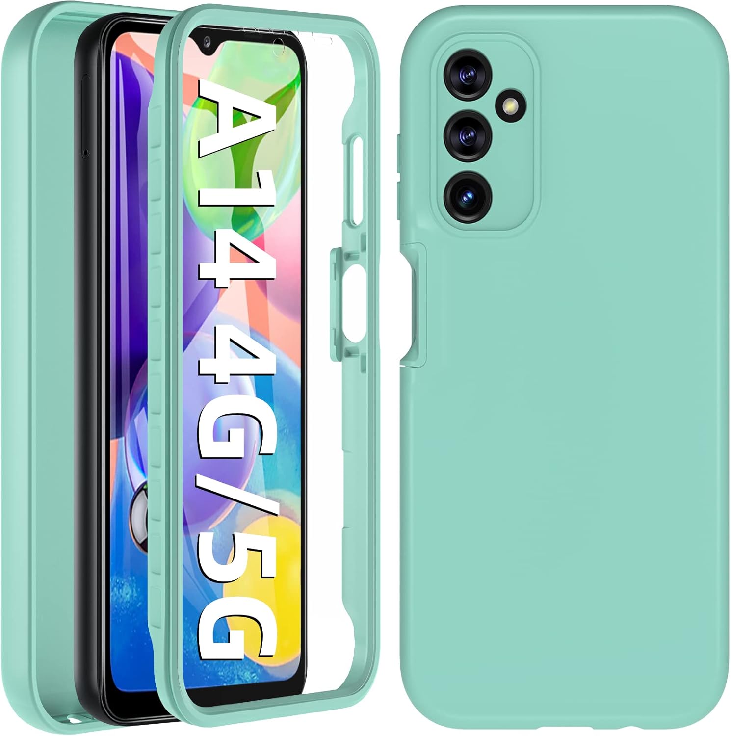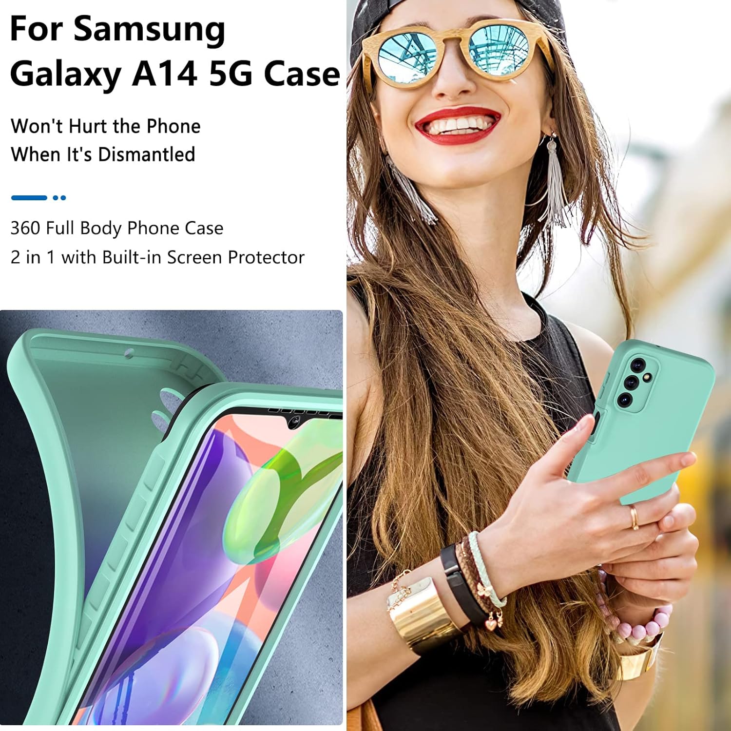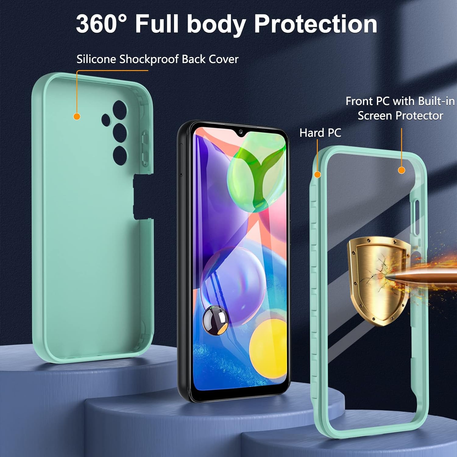 BESINPO Кейс за Samsung Galaxy A14, 360-градусов всестранно защитен кейс с вграден протектор за екрана, здрав силиконов защитен кейс за външна употреба за Samsung A14 4G/5G (зелен)