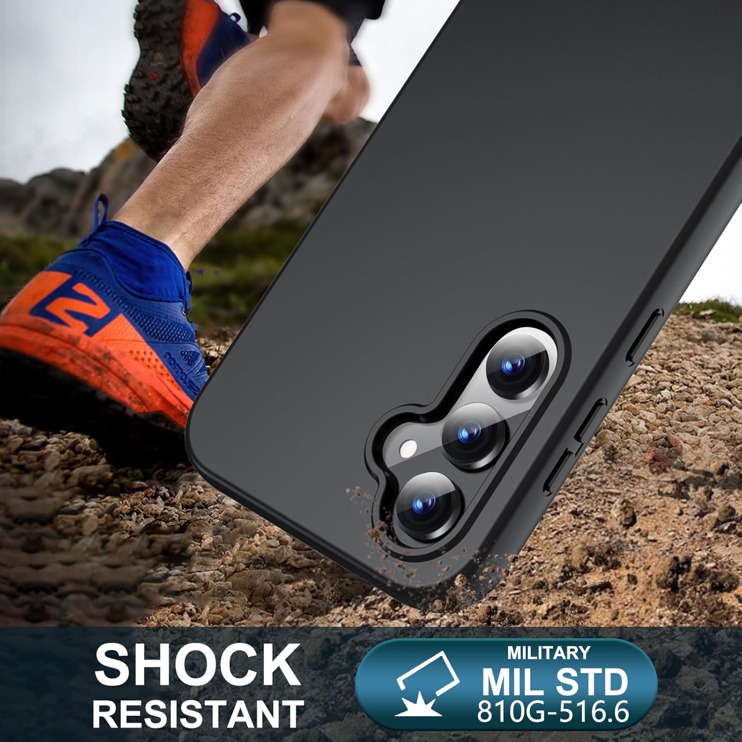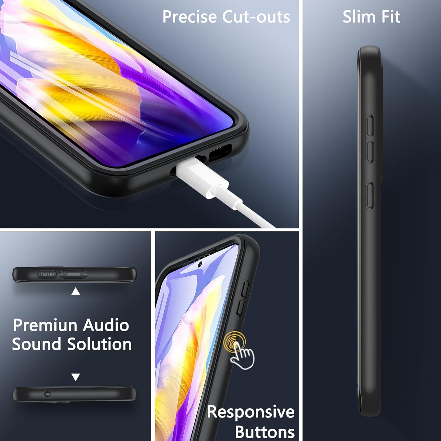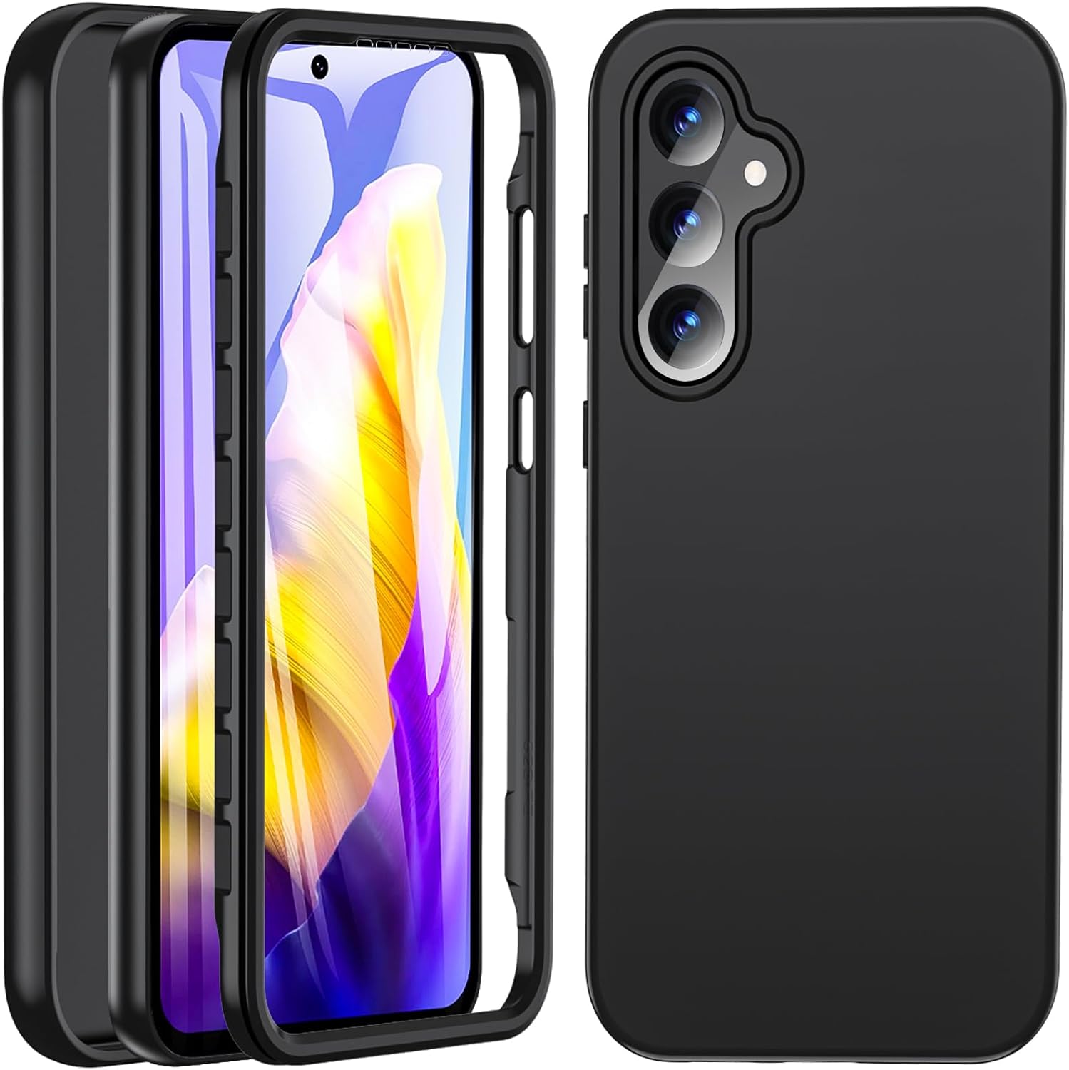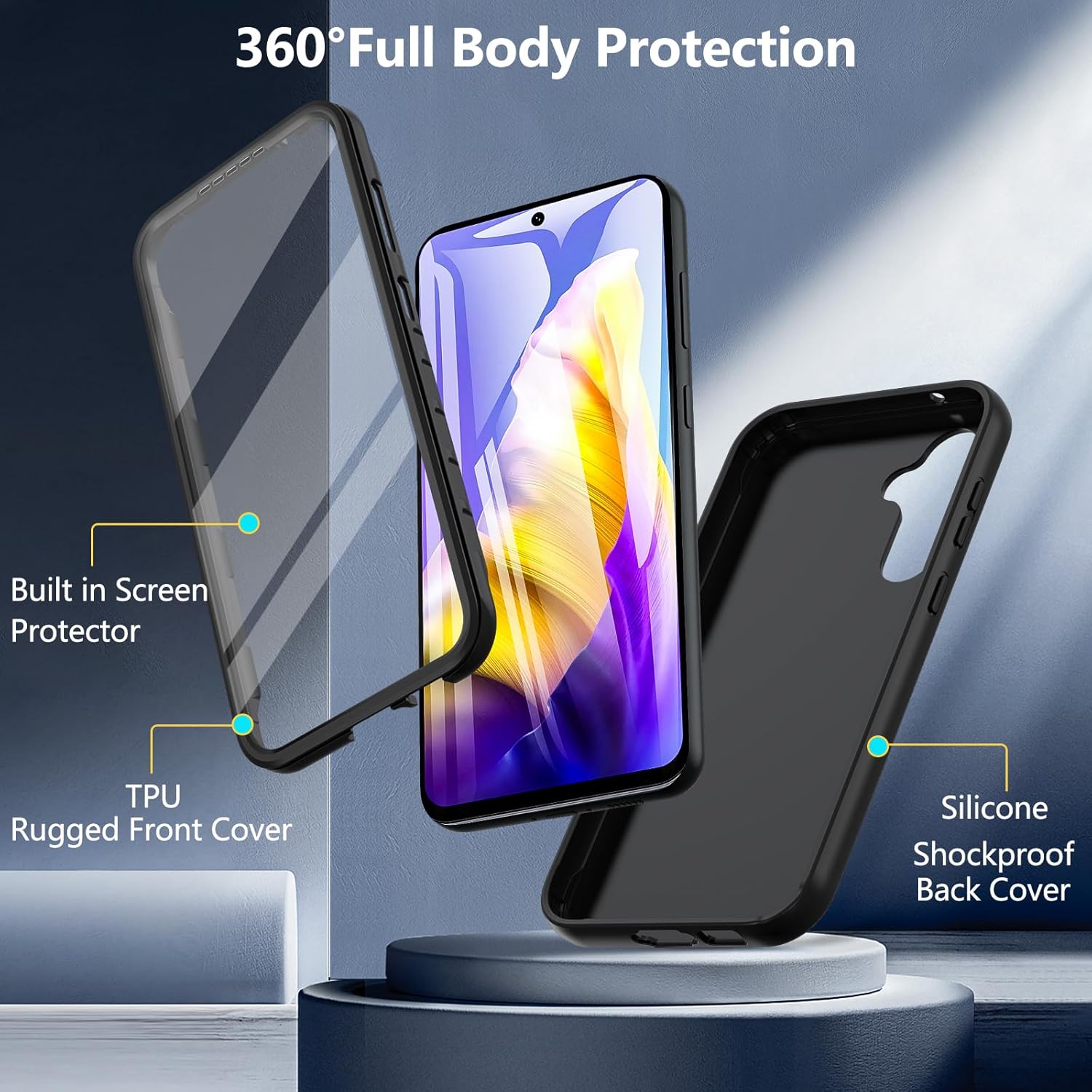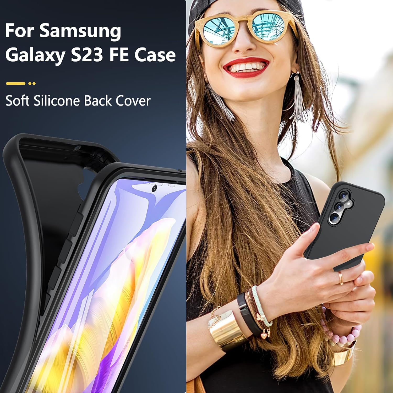 BESINPO Кейс за Samsung Galaxy S23 FE, Кейс за S23 FE, 360-градусов силиконов протектор с TPU, протектор за екран, здрав защитен калъф за външна употреба за Samsung S23 FE (черен)