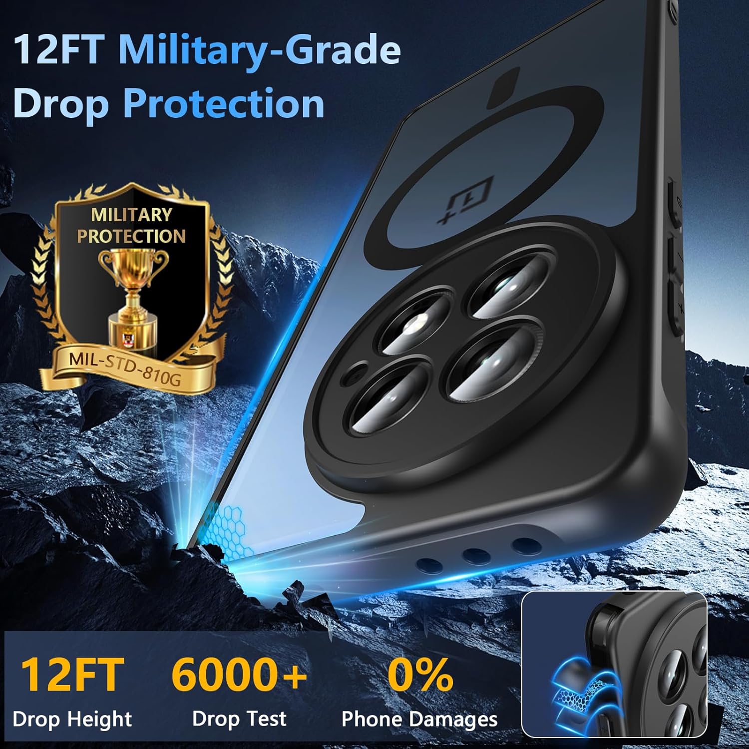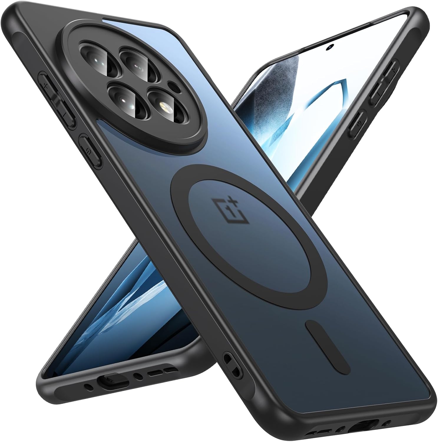 BESINPO Магнитен калъф за Oneplus 13, Военен защитен калъф за мобилен телефон за Oneplus 13 с MagSafe матов прозрачен здрав защитен калъф 2025 (черен)