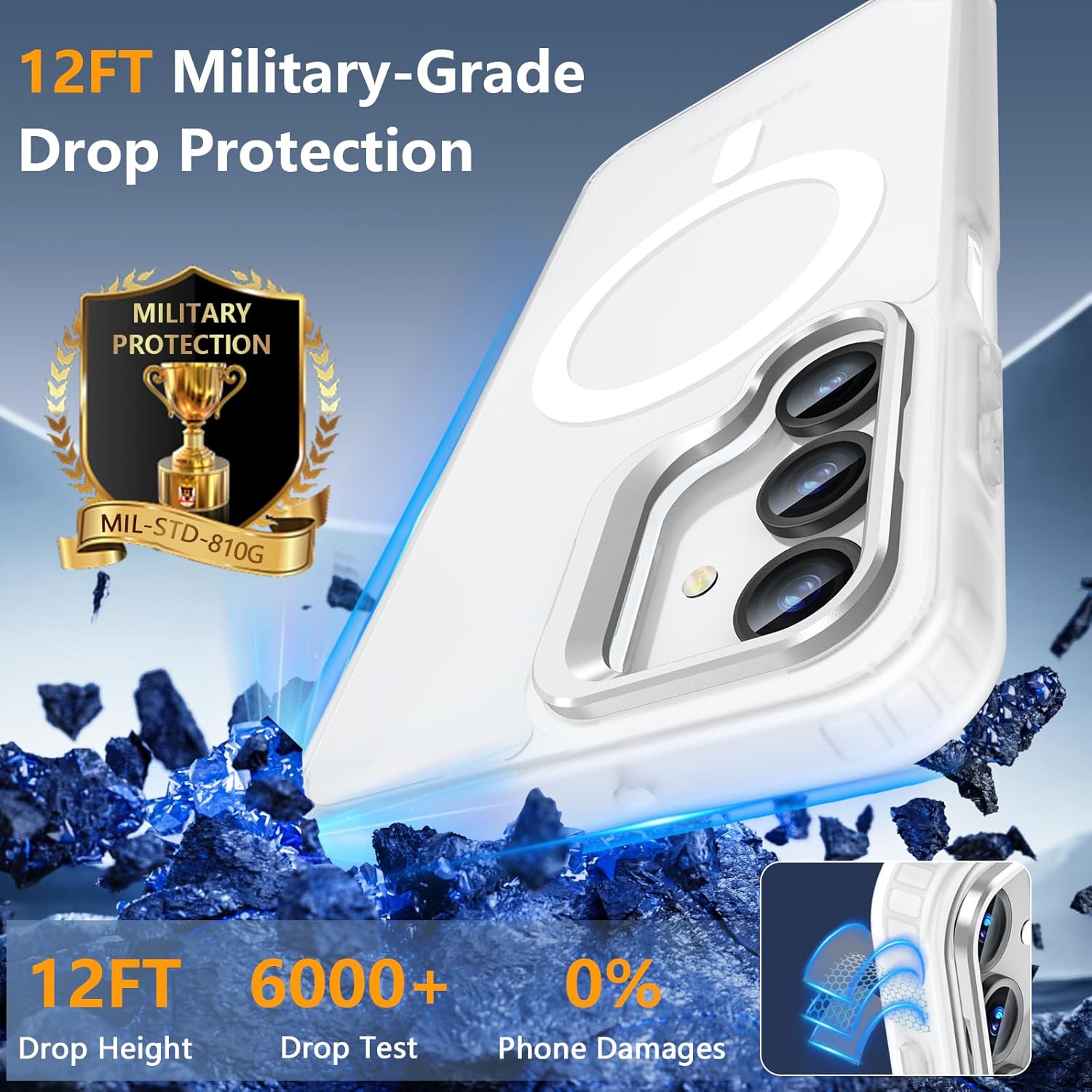 • Сертифициран военен клас, тестван за падане: Калъфът за Samsung S25 Ultra използва ударопоглъщащ TPU и има здрава структура с 4-слойно омекотяване и технология X-Shock 3.0.