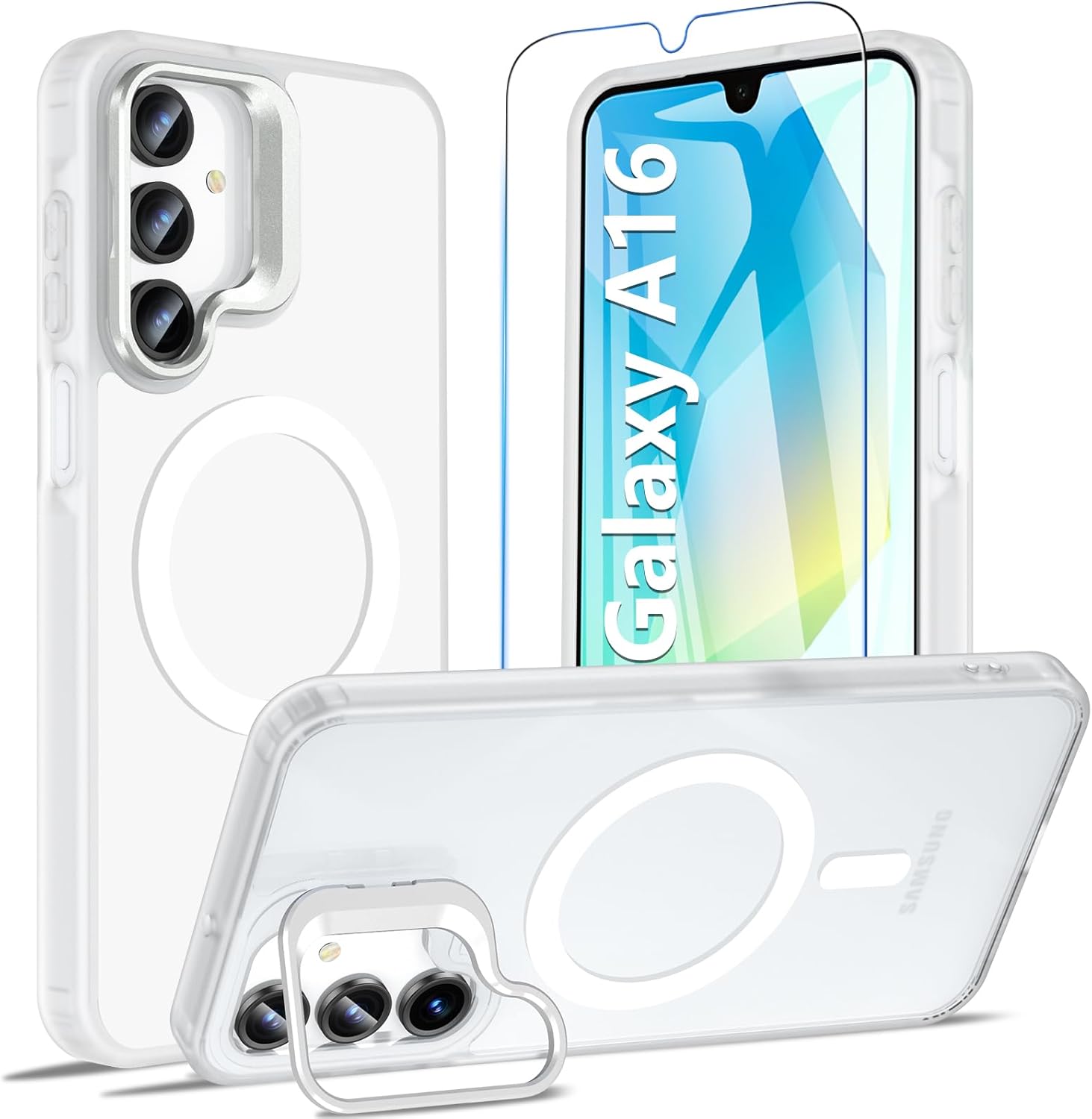 BESINPO Магнитен калъф за Samsung Galaxy A16 5G със закалено стъкло, военна защита и стойка, калъф за мобилен телефон за A16 с MagSafe протектор за екрана, защитен калъф за Samsung A16 (матов)