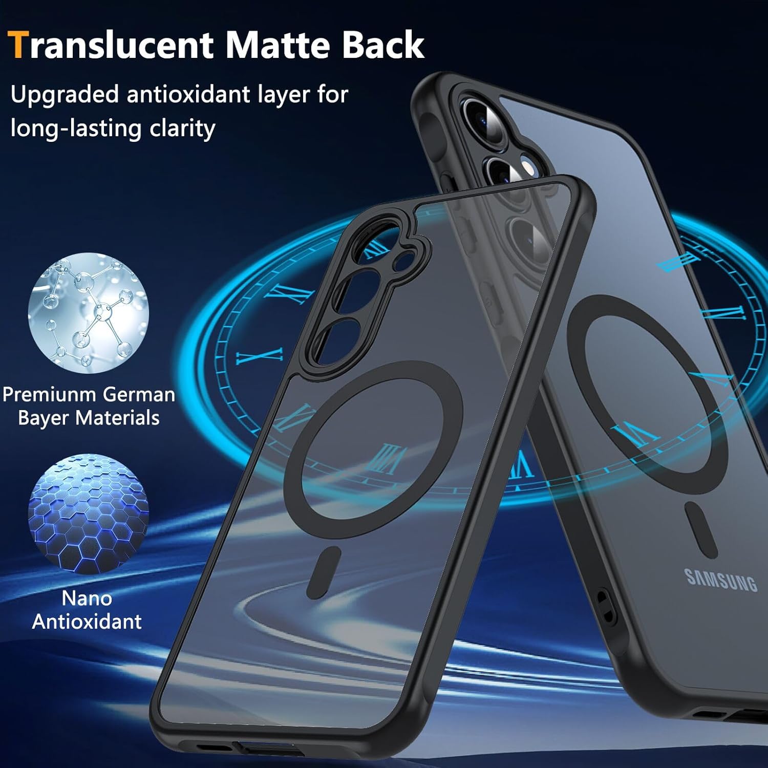 • Приятно усещане, без прах, без пожълтяване: Луксозен матов полупрозрачен дизайн. Гърбът е изработен от матиран, полупрозрачен, матиран поликарбонат (PC) за кадифено усещане.