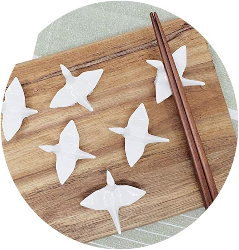 BESTonZON 6-частични керамични поставки за клечки в японски стил, ръчно изработена поставка за клечки „Хиляда хартиени жерава“, поставка за вилици и ножове - 5.5x5x3 см (бяла)