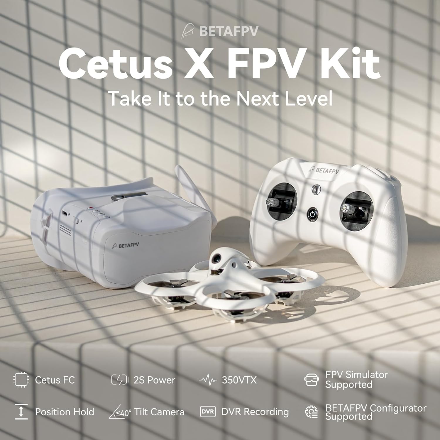 • Комплект Cetus X FPV: BETAFPV Комплектът Cetus X FPV, като усъвършенстван 2S power whoop пакет, е напълно основен избор за достигане на по-високо ниво. Предлага се с подобрена задвижваща система, очила VR03, радиопредавател LiteRadio 3, пилотите могат да отключат повече постижения за следващото ниво.