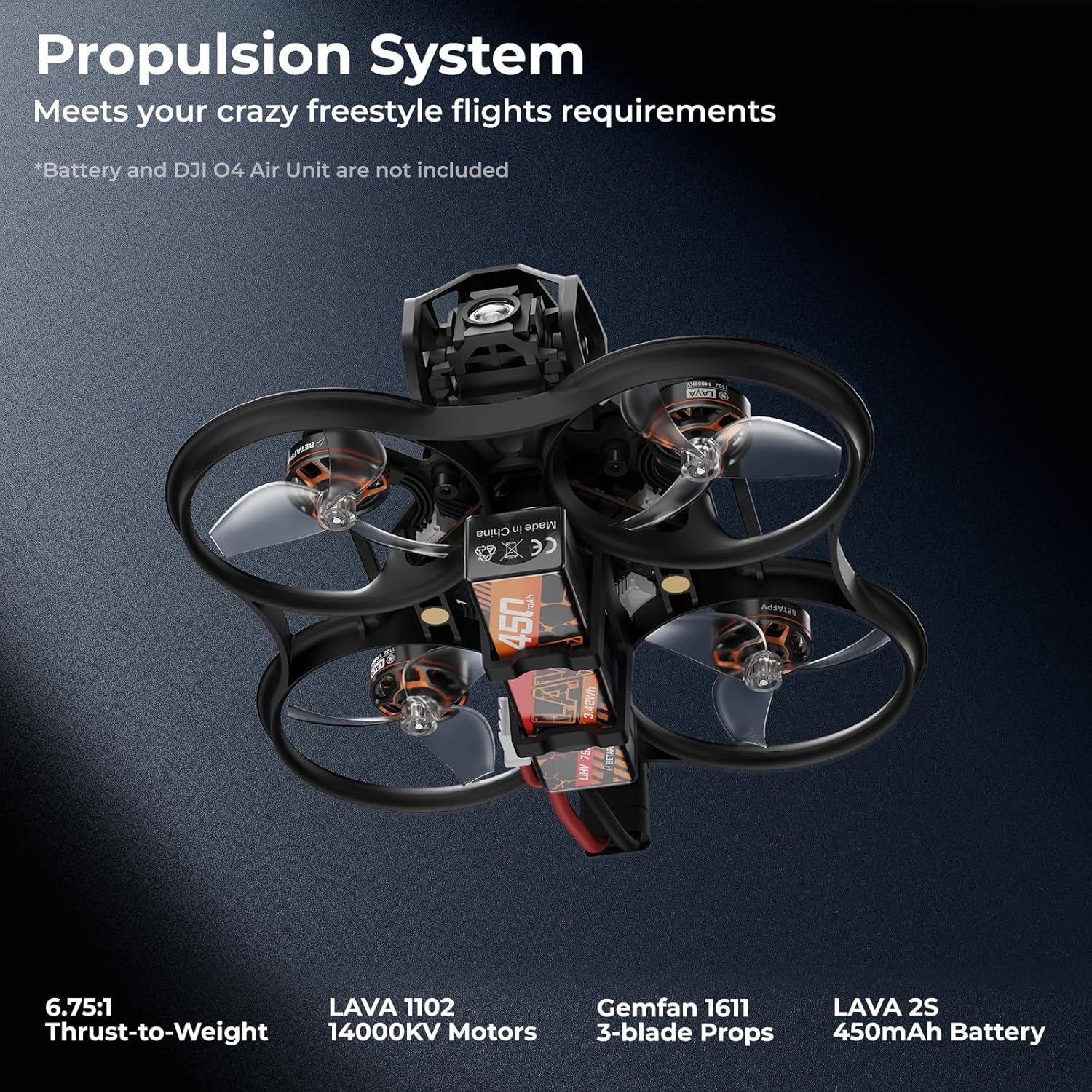 • Високопроизводителна задвижваща система: оборудван с новите двигатели Lava 1102|14000KV, 3-лопатъчни витла Gemfan 1611 и оптимизирана рамка, Pavo Femto се гордее с впечатляващо съотношение на тяга към тегло от 6.75:1. Компактната му и лека конструкция осигурява пъргавина и стабилност, което го прави най-добрият 2S 4K джобен дрон както за начинаещи, така и за опитни пилоти.
