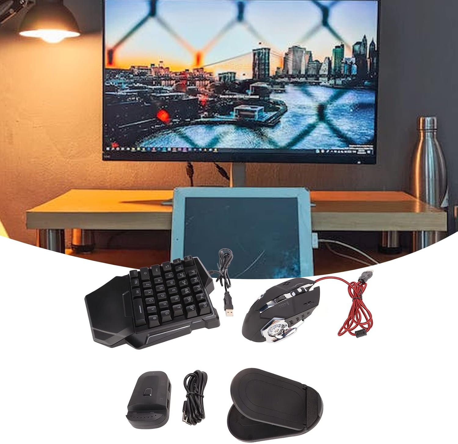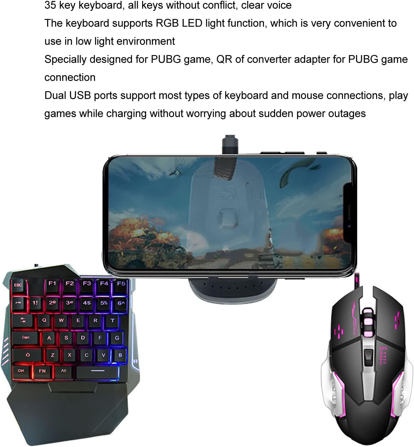 • ПРОФЕСИОНАЛЕН ДИЗАЙН Комбинацията от геймърска клавиатура и мишка за една ръка е специално проектирана за PUBG игри, QR конвертор адаптер за PUBG гейминг връзка. Забележка: Конверторният адаптер е подходящ за повечето телефони и таблети и не се поддържа за системи с версия 13.4 или по-нова.