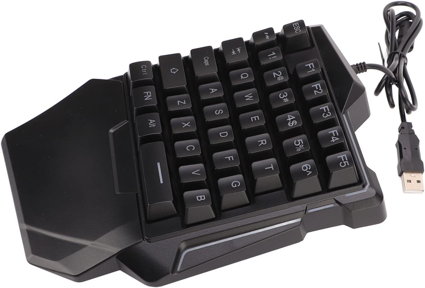 • 35 КЛАВИША Геймърската клавиатура за една ръка е с 35-клавишен дизайн, всички клавиши са без конфликт, гласът е ясен, а ритъмът - силен, което ви осигурява най-доброто механично изживяване. Поддържа RGB LED подсветка, което е много удобно в среда със слаба светлина.