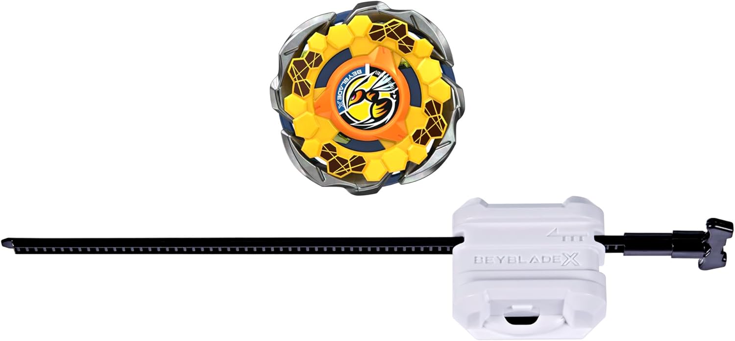 Следващото поколение арени, пускови установки и топове на стадиона Beyblade: Beyblade X. Стартовият пакет Beyblade X Fort Hornet R 7-60T CX включва един пусков агрегат и един въртящ се надясно топ Balance-Type с острие Balance-Type (необходима е арена Beystadium, продава се отделно). Феновете на Beyblade могат да се впуснат директно в битката или да заменят взаимозаменяемите части (острие, тресчотка и бит) с части от други топове Beyblade X (продават се отделно), за да създадат свой собствен перфектен топ. Топовете CX са проектирани с острие, което може да се разглоби на три части за още повече опции за персонализиране! Beyblade X разполага със системата за ускорение X-Celerator: зъбното колело на топа Beyblade X се заключва в пистата на арената Beystadium, давайки на топа супер ускорение (Xtreme Dash) за готини катастрофи и изблици. Време е да се потопите в битката и да спечелите точки! Играчките Hasbro Beyblade с автентични метални части Takara Tomy са чудесен подарък за деца над 8 години. HASBRO и всички свързани марки и лога са търговски марки на Hasbro, Inc.