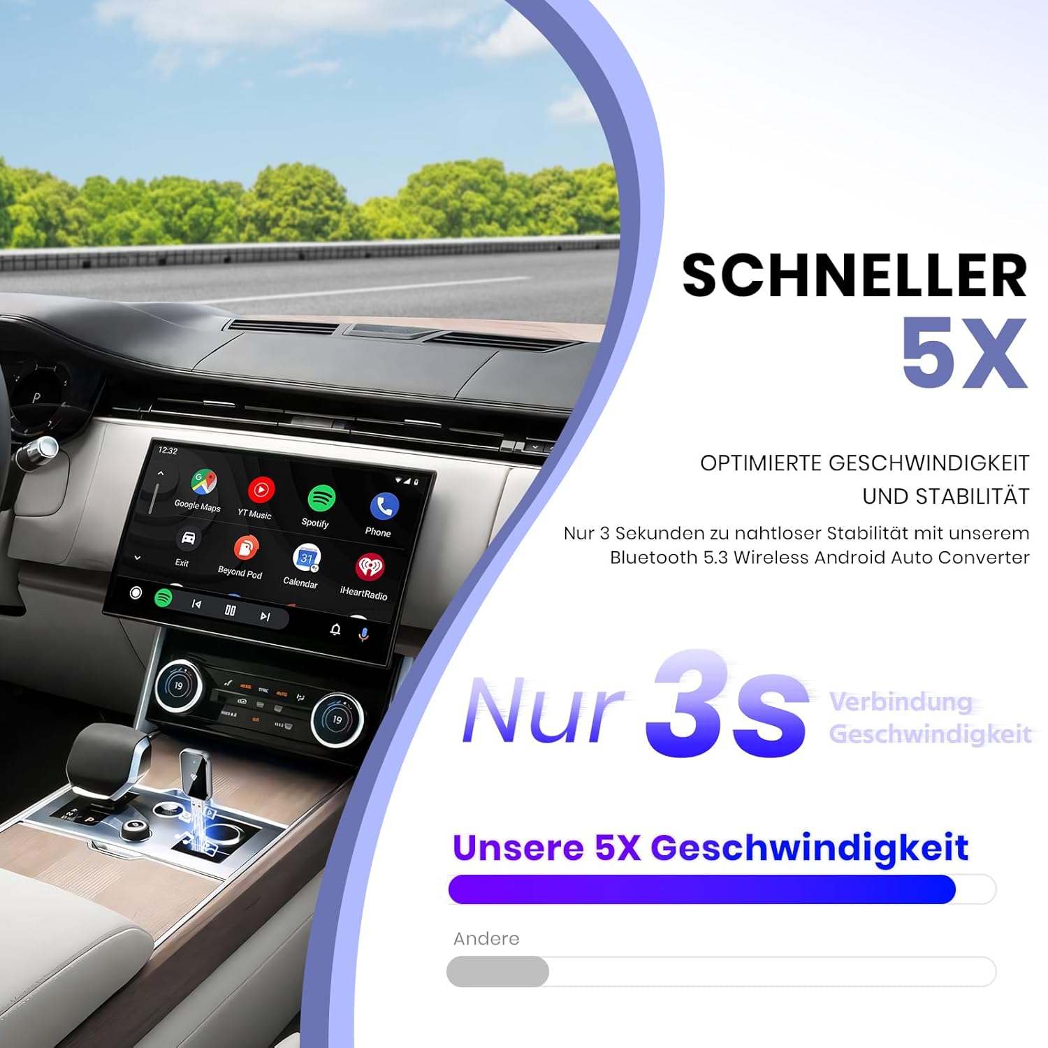 • 【Безжичен адаптер AIZEO за Android Auto】Надстройте кабелния си Android Auto до безжичен с най-новия адаптер. Той предлага по-бързи скорости на връзка от всякога, което ви позволява да използвате любимите си приложения за Android Auto безпроблемно и без забавяне. Наслаждавайте се на навигация, разговори със свободни ръце, музика, гласови асистенти и други, като същевременно поддържате връзка с оригиналните контроли на вашия автомобил.