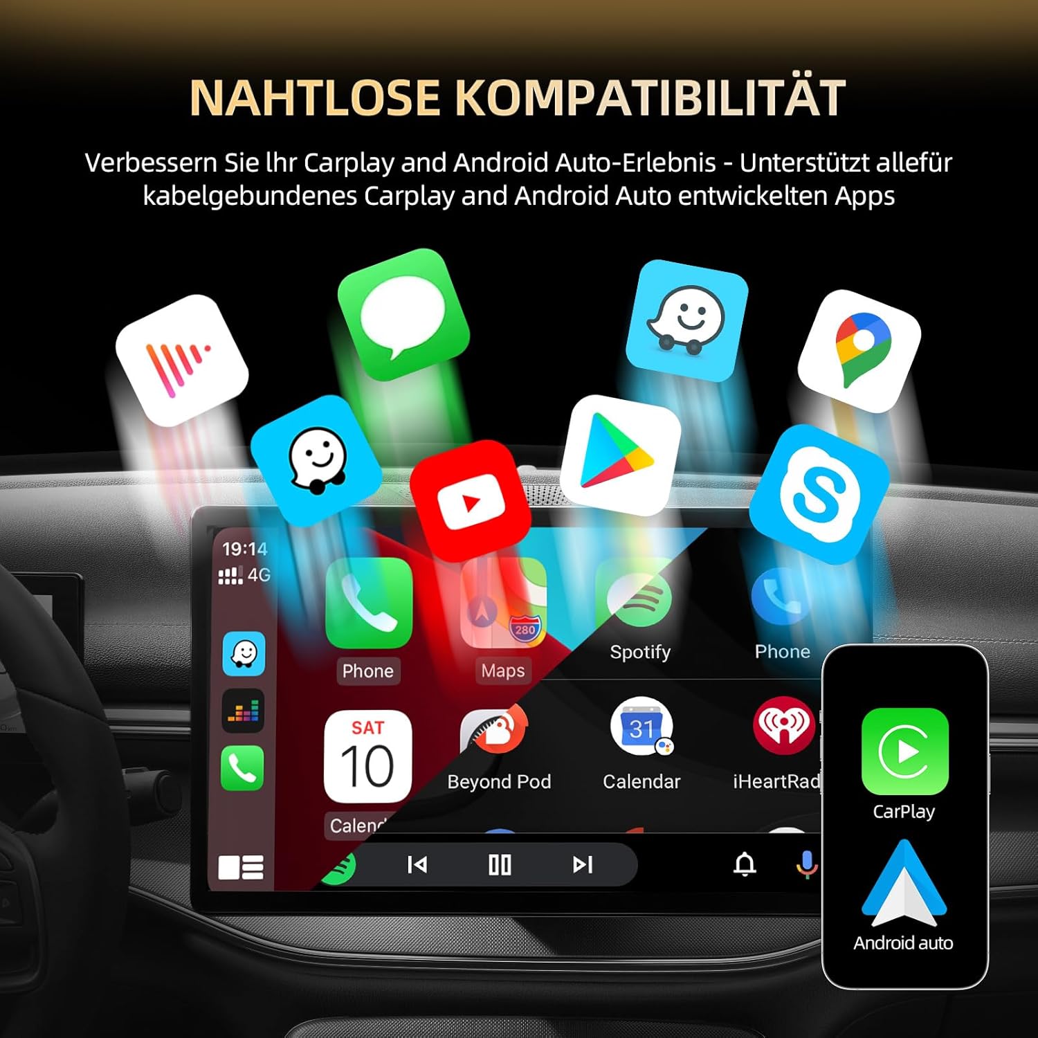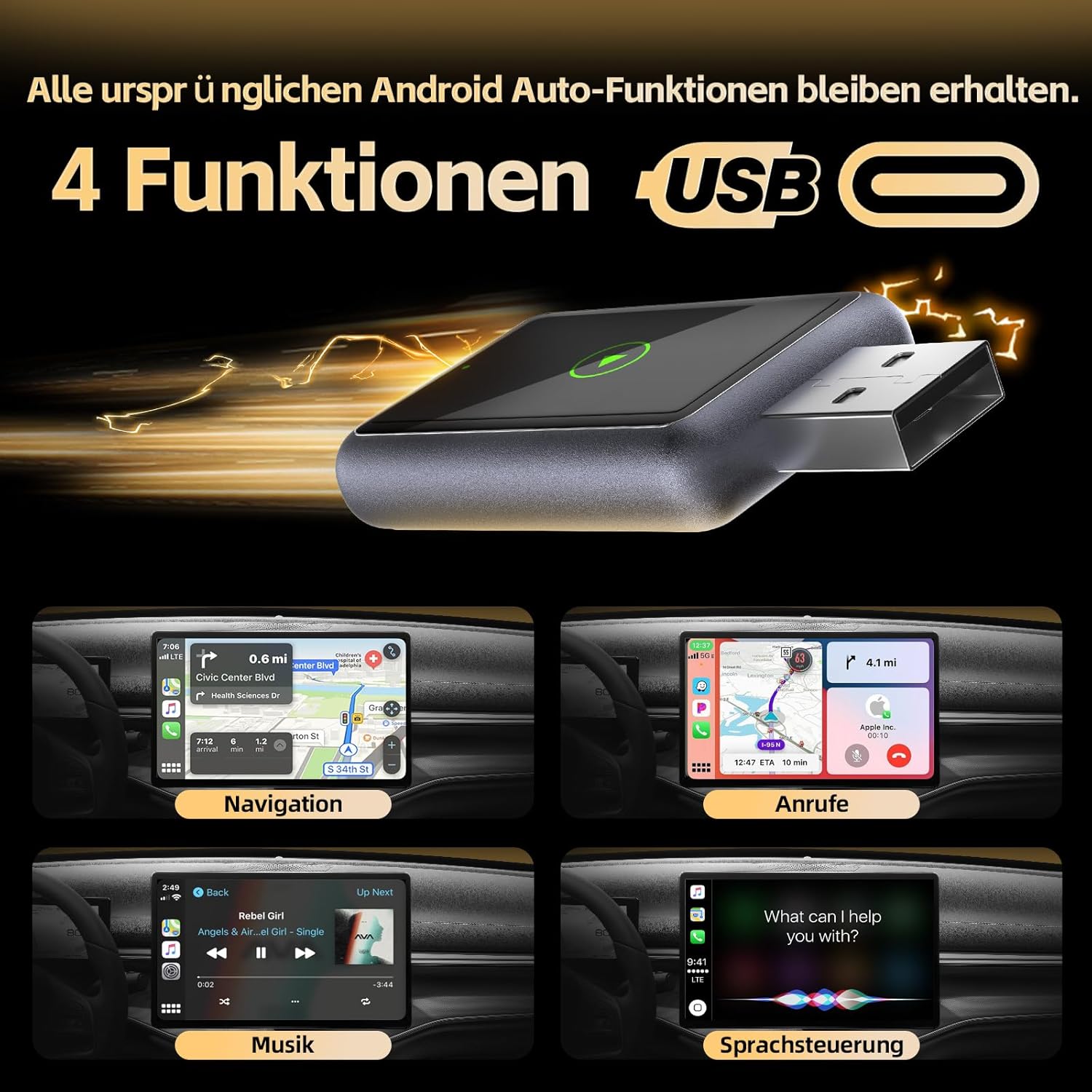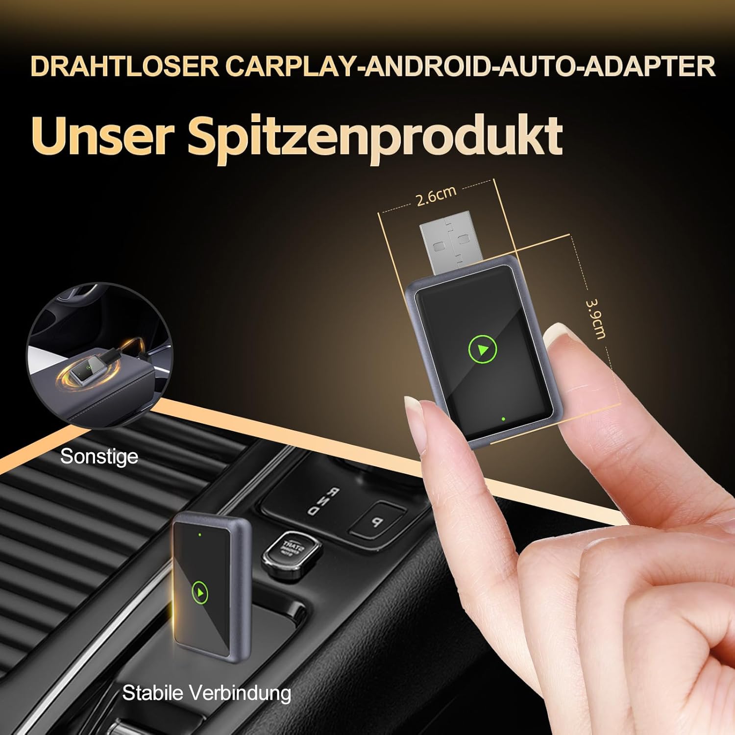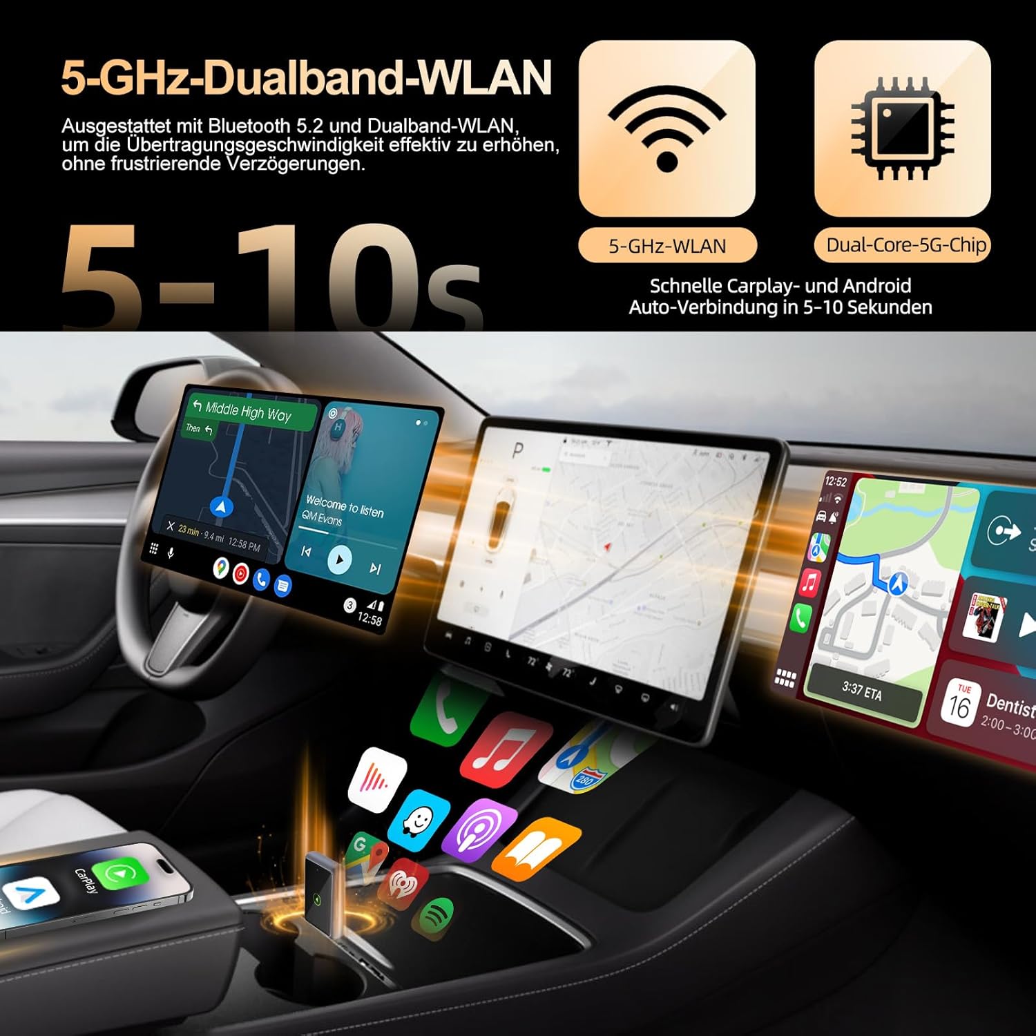 • 【Високопроизводителна двубандова връзка】С усъвършенствана технология на двубандов чипсет 2.4GHz + 5GHz за 100% повишена производителност и по-стабилни връзки с почти нулева латентност. Изживейте ултраплавен CarPlay с непрекъснато възпроизвеждане на музика, прецизна навигация и безжични разговори със свободни ръце.