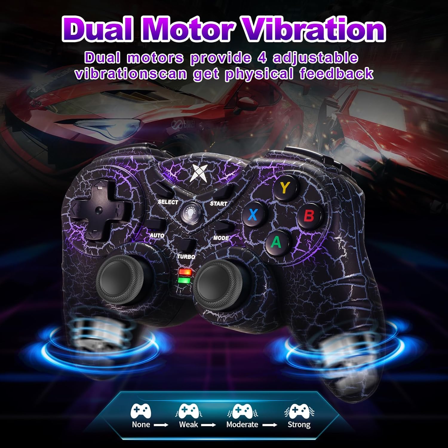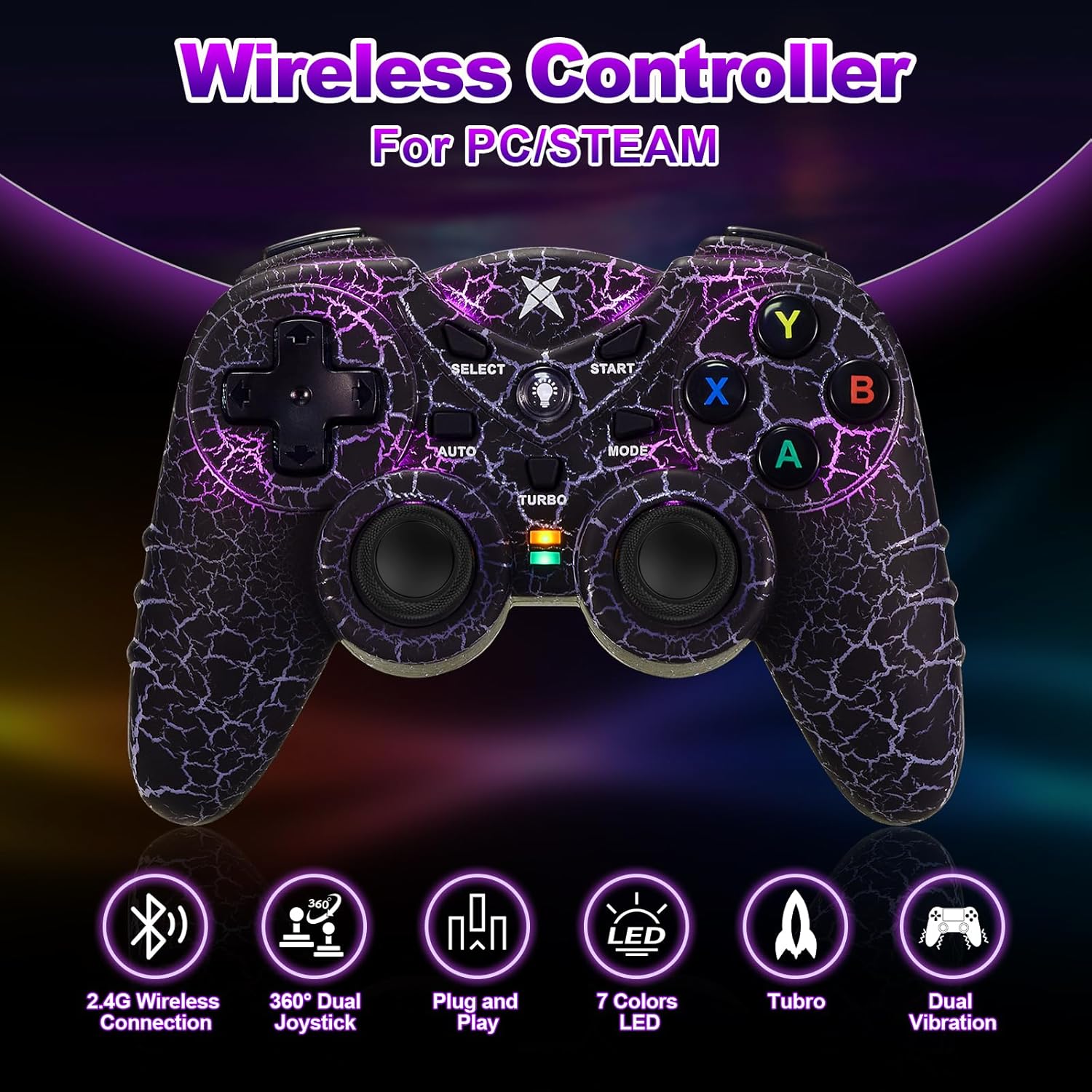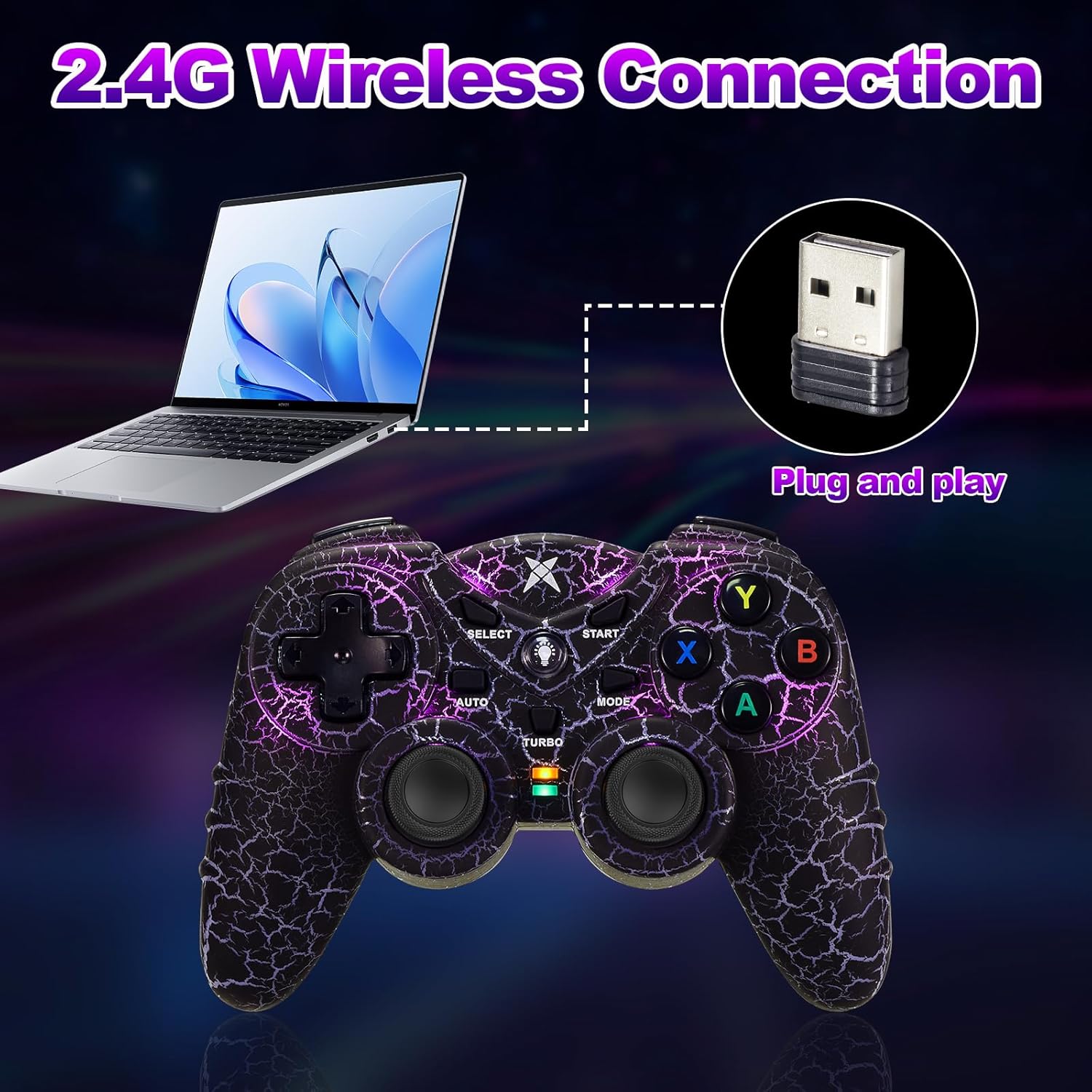 Безжичен геймпад за компютър NBCP, геймпад за компютър с двойна вибрация, 2.4G безжичен гейминг джойстик с готина RGB подсветка, турбо функция за Windows 7/8/10/11 и Steam
