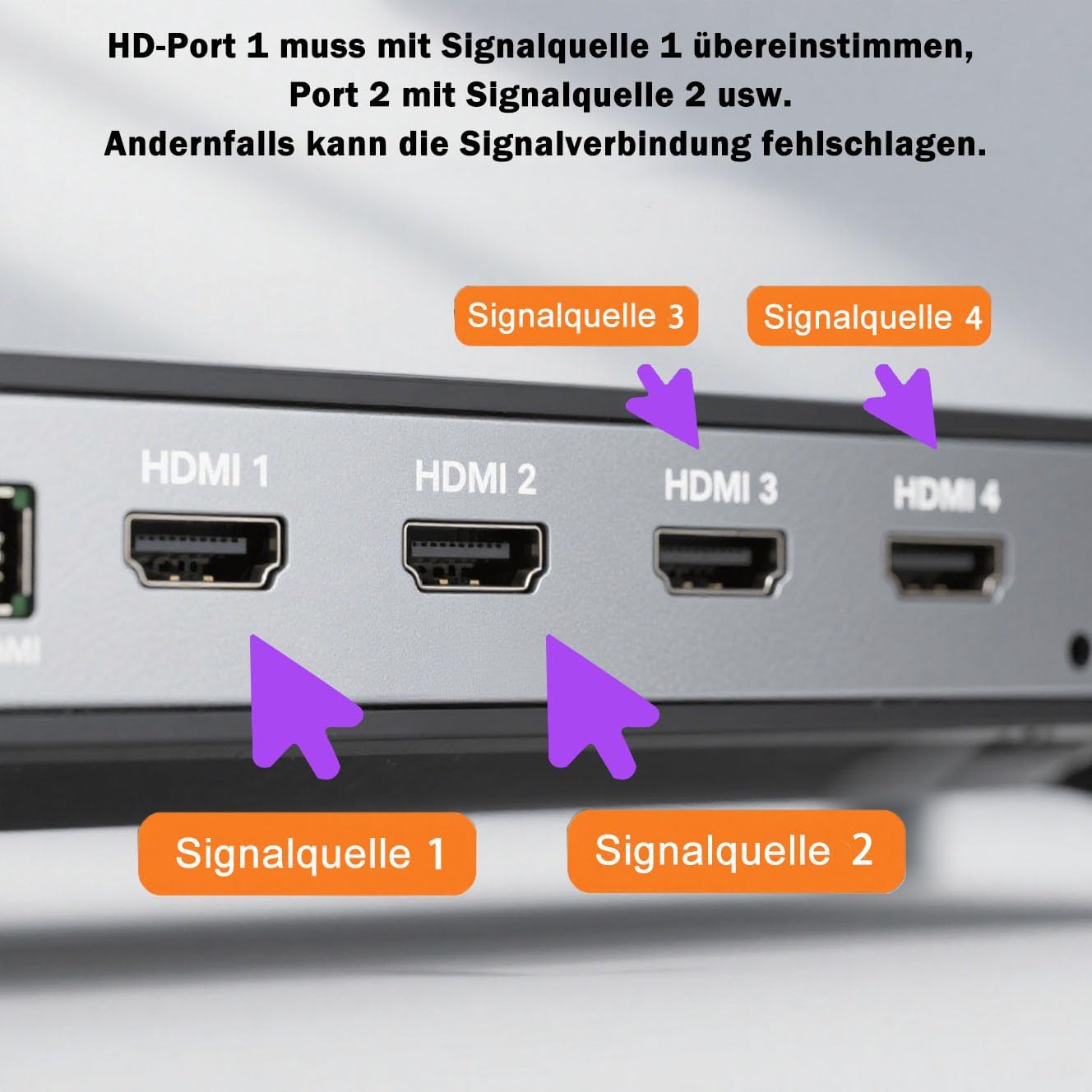 Antwort: Bitte prüfen Sie, ob die HDMI-Schnittstelle des Geräts richtig eingesteckt ist und schalten Sie auf die entsprechende Signalquelle um. Es wird empfohlen, ein 5V/2A-Netzteil zu verwenden. Bitte prüfen Sie, ob die HDMI-Schnittstelle des Fernsehers veraltet ist oder einen schlechten Kontakt hat , und versuchen Sie, die HDMI-Schnittstelle auszutauschen.