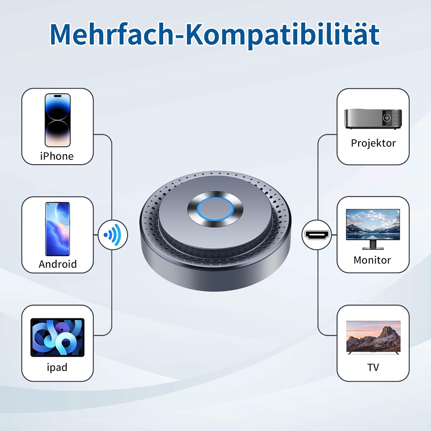 • Зашеметяващо HD изживяване: Нашият безжичен HDMI адаптер за дисплей поддържа 4K декодиране и осигурява впечатляващ 1080P Full HD изход. Изпитайте безпроблемна връзка с по-голям екран и се насладете на висококачествено аудио и видео със семейството и приятелите си.