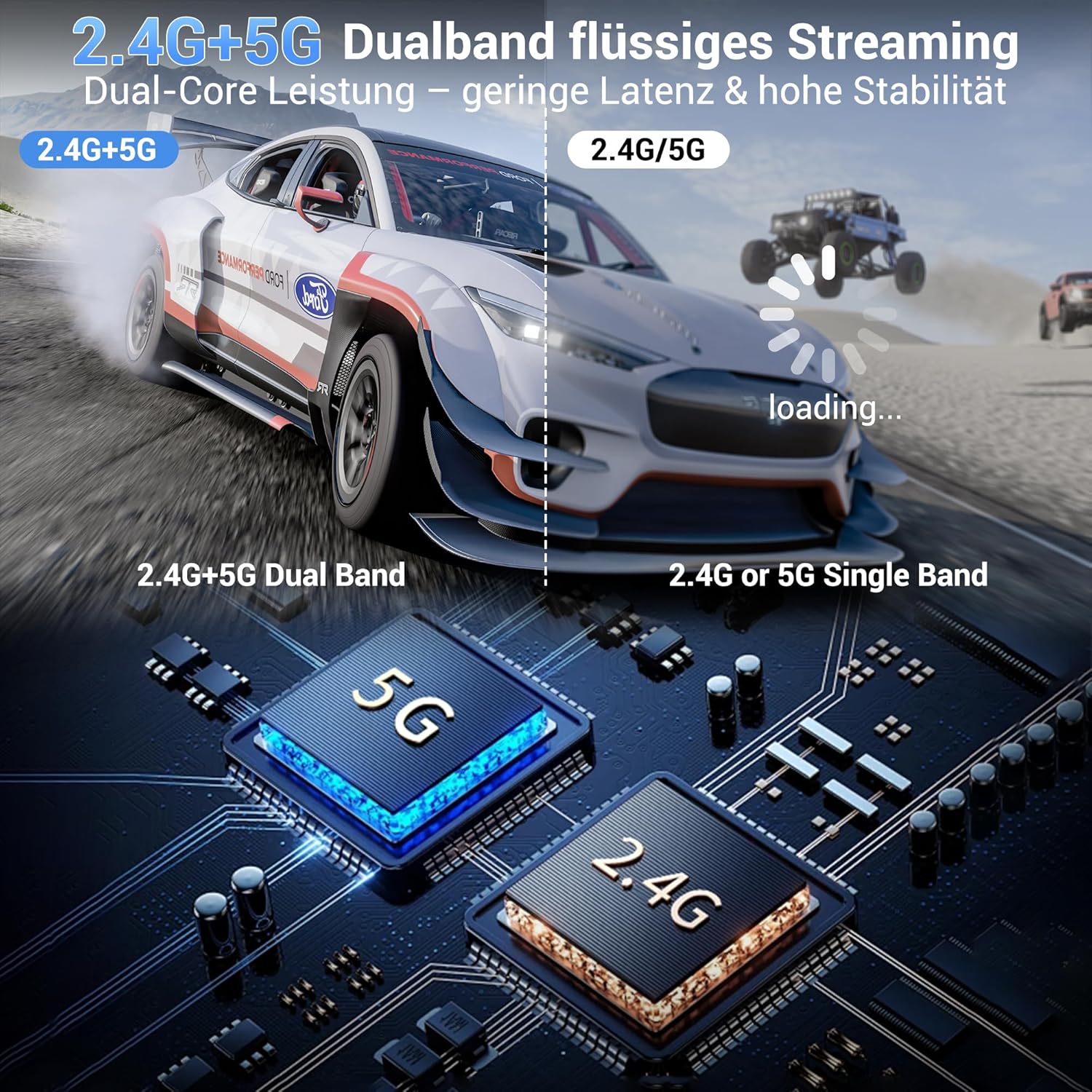 • Стабилно предаване, минимална латентност: Двубандовите антени (2.4 + 5 GHz) гарантират надеждно предаване на сигнала и висококачествено декодиране на видео. Обхват до 5 метра (16 фута) с изключително ниска латентност от само 100 ms.