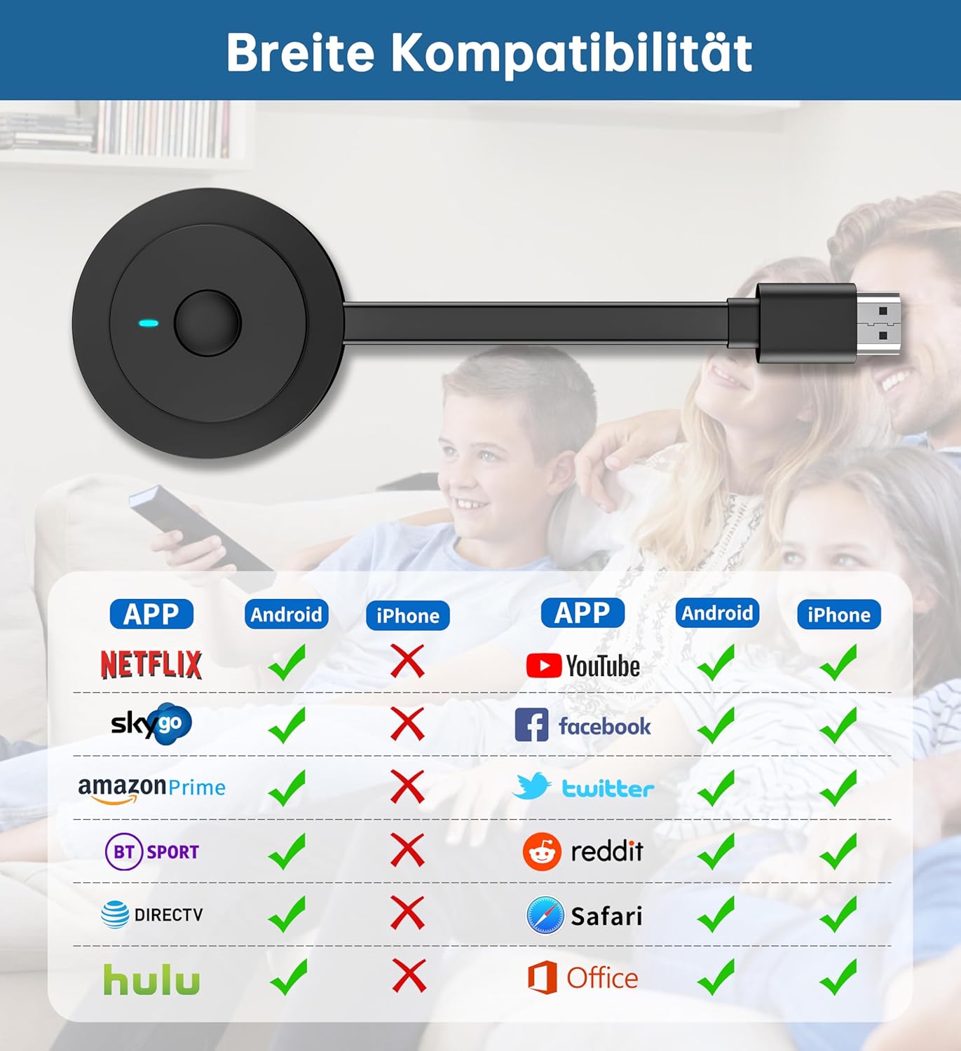 • Съвместими устройства, системи и поводи: Безжичният HDMI адаптер AT-Mizhi поддържа безжично предаване на стрийминг съдържание от компютри с Mac OS/Windows, персонални компютри, мобилни телефони и таблети с iOS/Android към телевизори, проектори и монитори чрез Miracast, Airplay и DLNA. Идеален за корпоративни конференции, домашно кино и забавление, мултимедийни курсове в училища и др. (Забележка: iOS не е съвместим с Netflix, Hulu Plus или други HDCP приложения за авторски права)