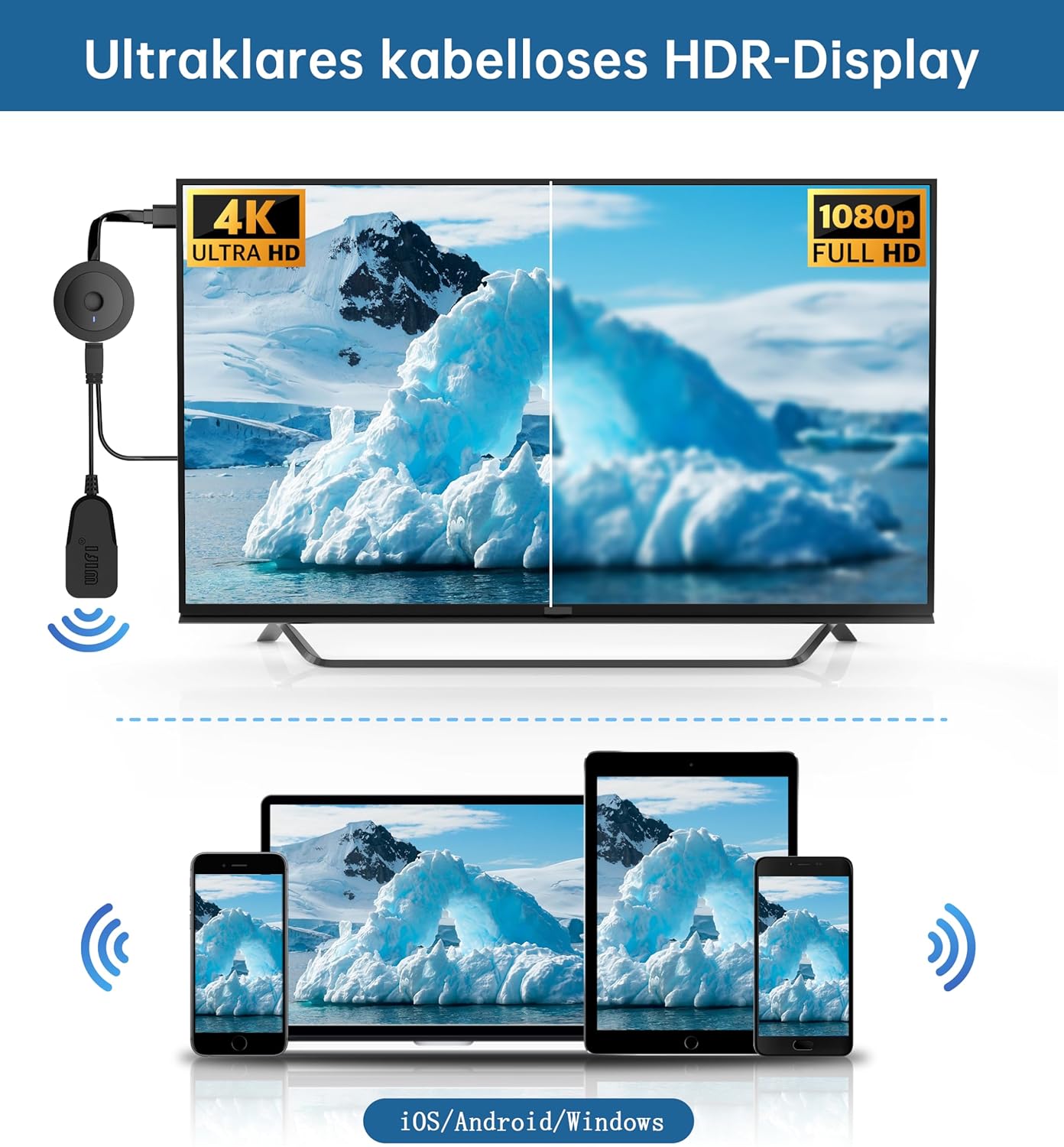 • Перфектно обслужване на клиенти: Безжичният HDMI адаптер предлага добро съотношение цена-качество и се предлага с едногодишна гаранция и доживотна техническа поддръжка. При нас качеството на продукта и удовлетвореността на клиентите винаги са наш основен приоритет. Така че, ако имате някакви въпроси, не се колебайте да се свържете с нашето обслужване на клиенти по всяко време.