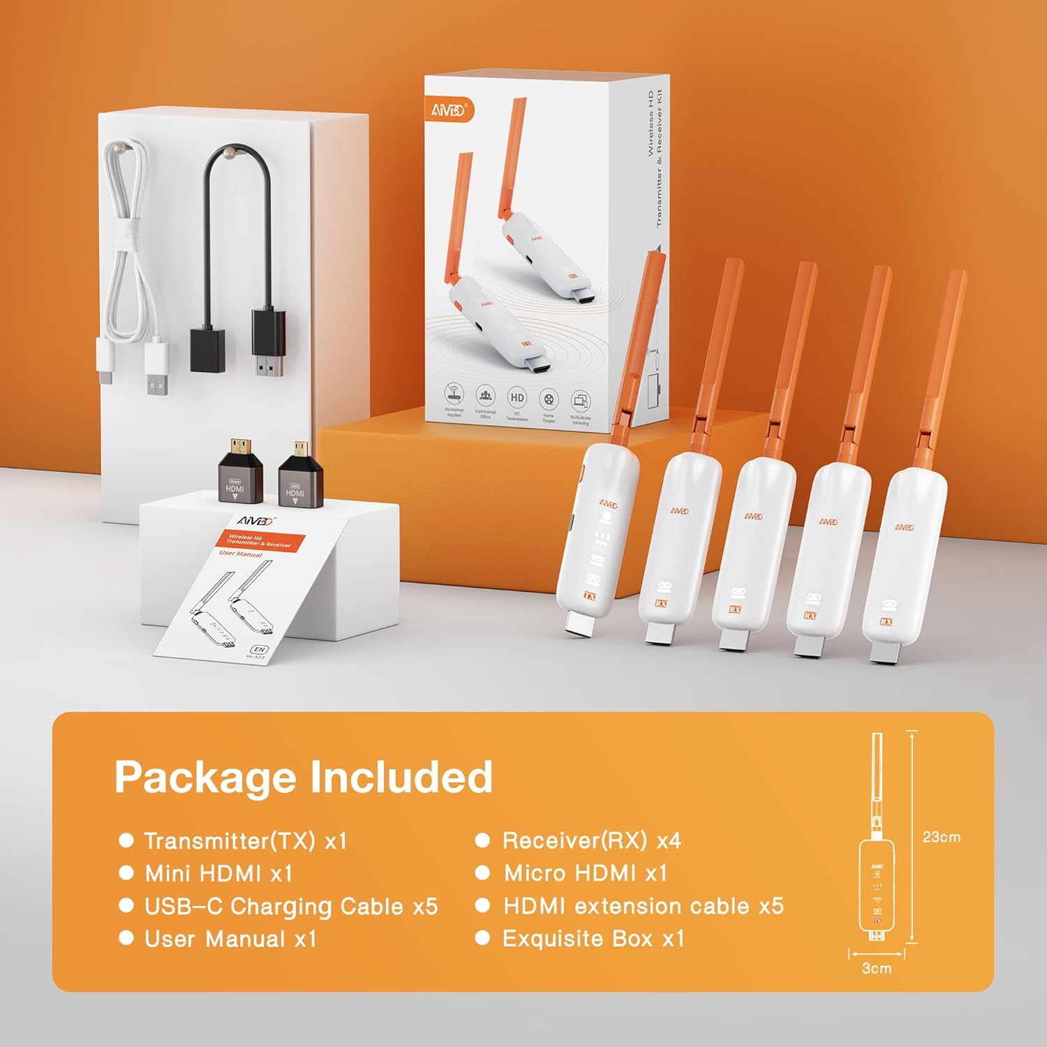 • До 6 RX - 2025 подобрен безжичен HDMI: Безжичният HDMI предавател и приемник на TIMBOOTECH поддържа приемане на до 6 RX устройства, което ви позволява да стриймвате любимото си съдържание към до 6 дисплея в една и съща/различна стая едновременно. Съдържанието на кутията включва два MINI+MICRO HDMI порта, които имат повече функции от конвенционалните кабели!