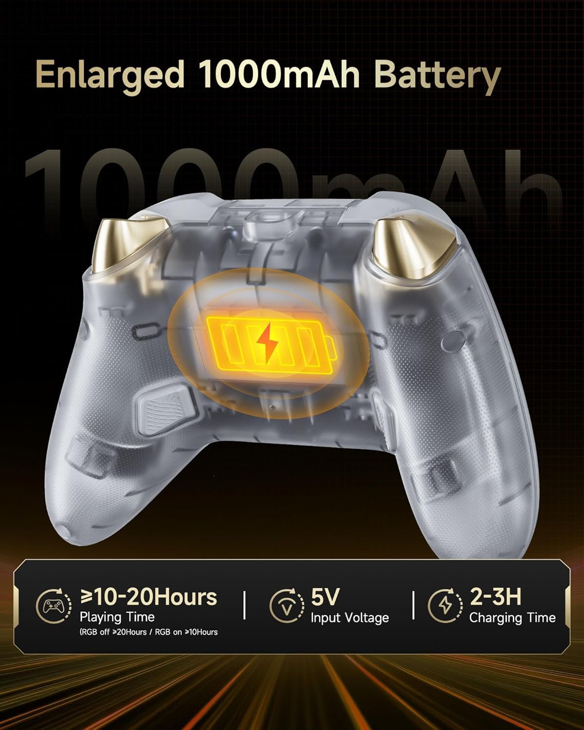 • КОНТРОЛЕР СЪС ЗАРЯДНА СТАНЦИЯ: Всичко в едно – Магнитната докинг станция зарежда контролера и прибира 2.4G адаптера. Батерията с капацитет 1000 mAh се зарежда напълно за 2,5 часа.