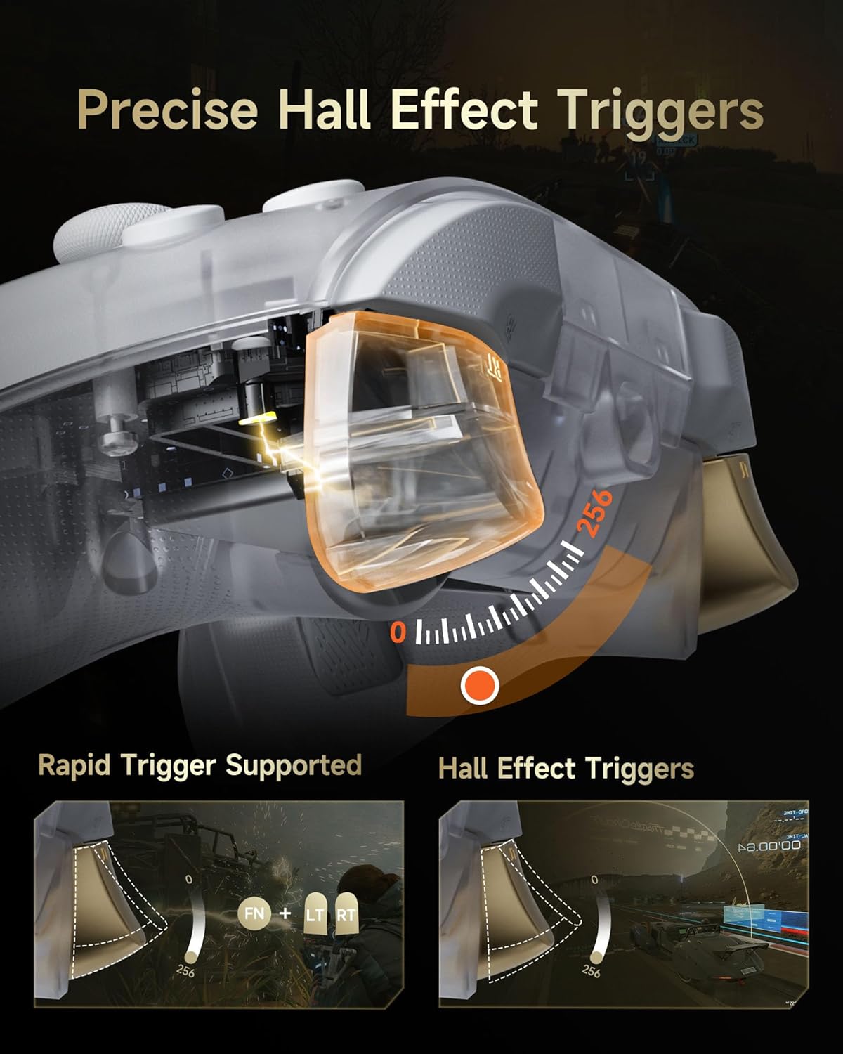 • ПРЕЦИЗНОСТ С ЕФЕКТ НА ХОЛ И НУЛЕВ ДРИФТ: Магнитните джойстици с ефект на Хол гарантират 100% точност за състезателни FPS и състезателни игри.