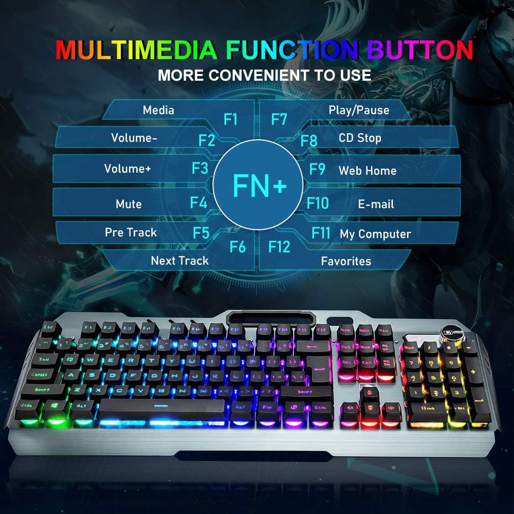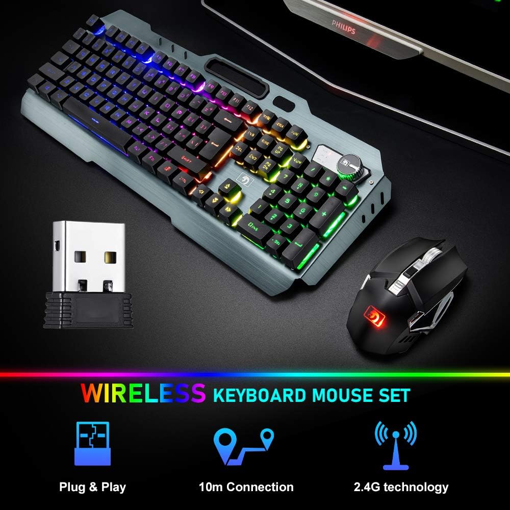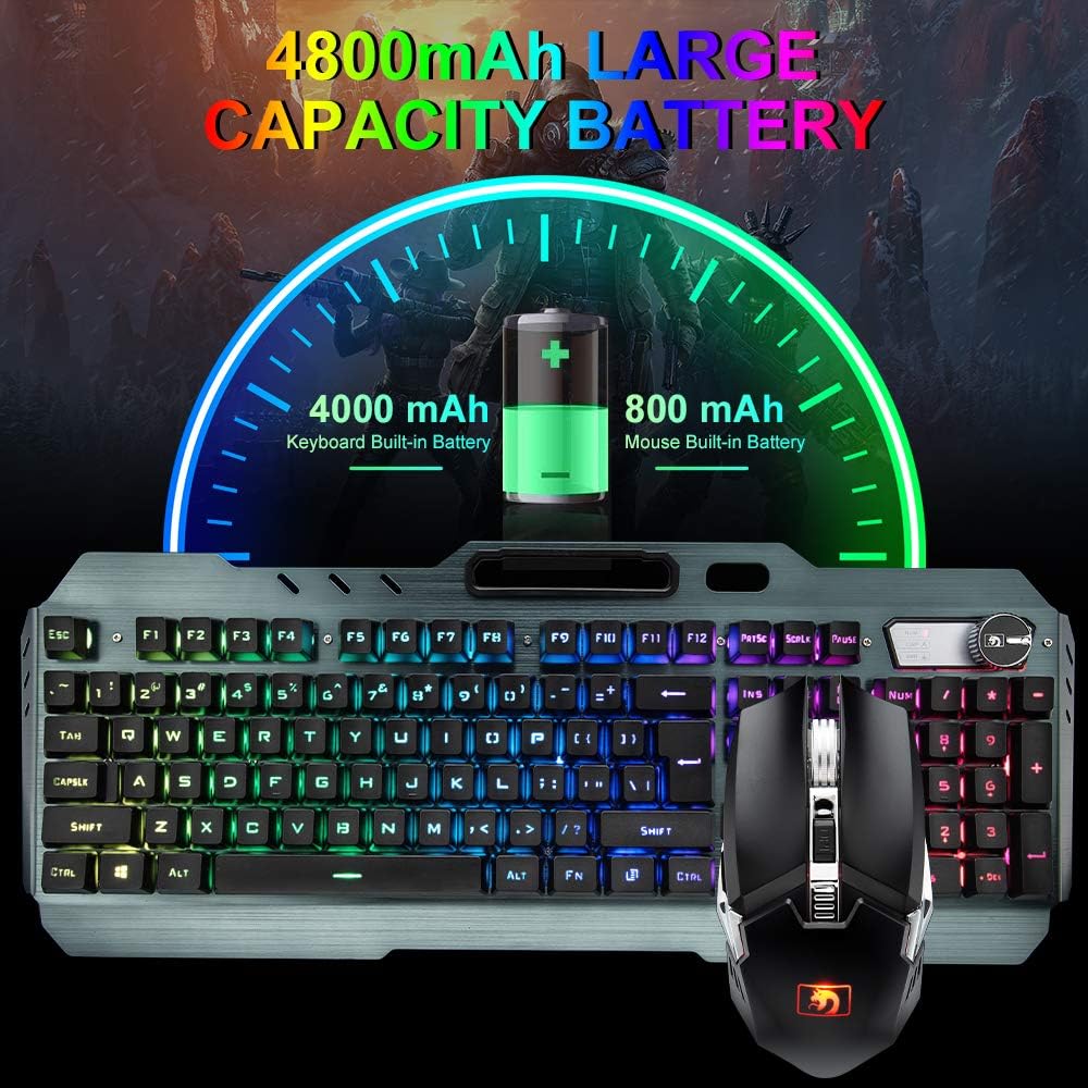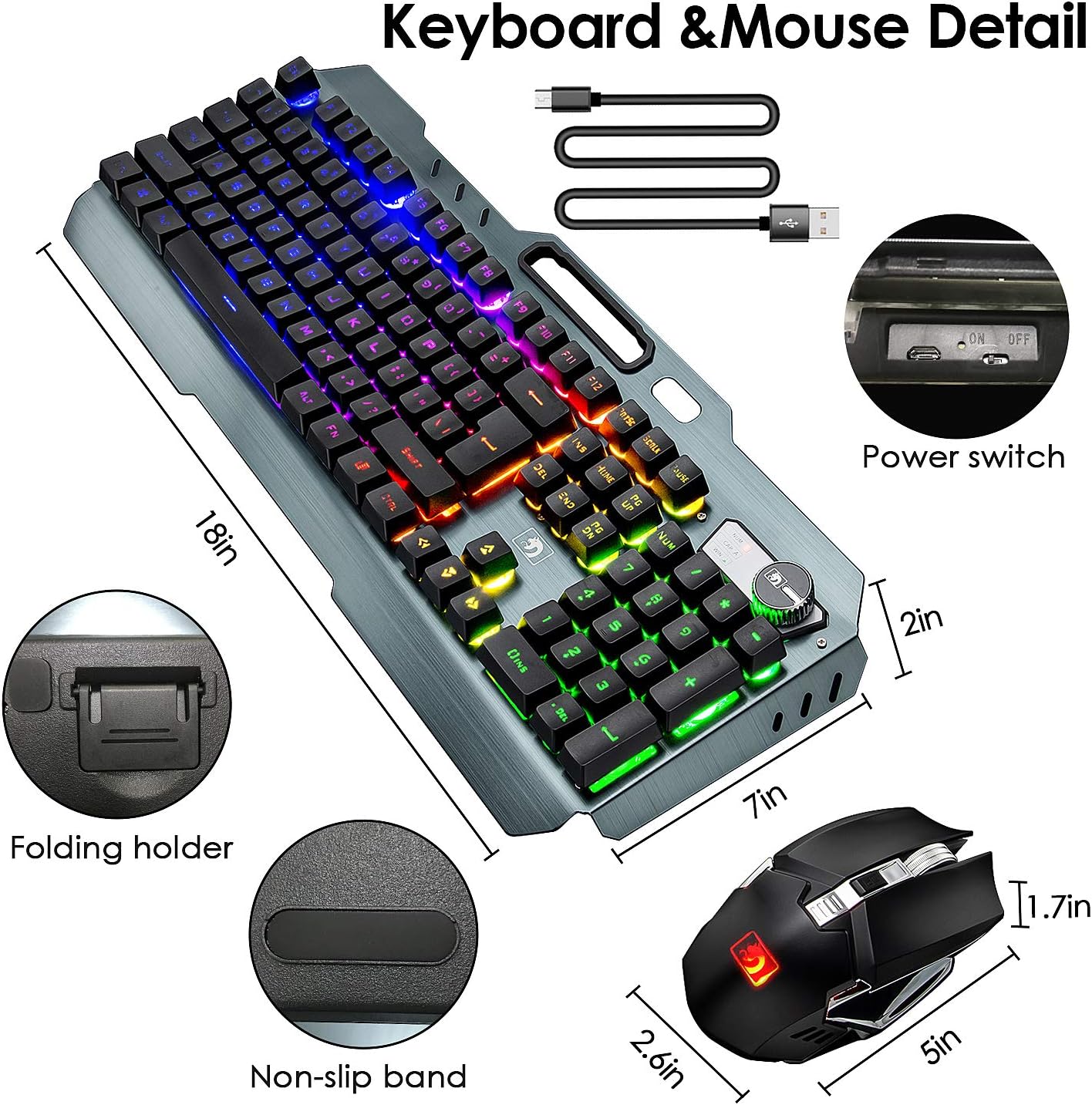 Tastatur-Spezifikationen: Layout: USTastaturgröße: ca. 455 x 175 x 45 mmSchnittstelle: USB (2,4 GHz drahtlose Verbindung) Eingebaute Akku-Kapazität: 4000 mAhLichteffekte: 16 Arten von LED-Hintergrundbeleuchtung, FN + 1/2/3/4/5: Es kann 16 Arten von Tastatur-Hintergrundbeleuchtung umschalten. Knopfschalter (Es kann 16 Arten von Hintergrundbeleuchtung durch Drücken des Knopfes umschalten, und es kann auch die Helligkeit der Hintergrundbeleuchtung und die Atmungsfrequenz einstellen. )FN + ≧ / ≦: Verbessern / reduzieren Sie die Helligkeit der Hintergrundbeleuchtung, es hat 3 Stufen. FN + ÷/→: Beschleunigt / verlangsamt die Hintergrundbeleuchtung der Atemlichtgeschwindigkeit. Maus-Spezifikationen: DPI-Schalter: 800/1200/1600/2400DPI. Eingebaute Batteriekapazität: 800 mAhLichteffekte: Sieben Farben Atmungslichter (Maus-Hintergrundbeleuchtungsfarbe kann nicht angepasst werden)Hinweis: Es ist strengstens verboten, die Tastatur und Maus mit hoher Spannung oder schneller Aufladung aufzuladen. Die richtige Methode besteht darin, 5 V DC Strom zum Laden zu verwenden. - Tastatur und Maus teilen sich einen Empfänger, der Empfänger befindet sich an der Unterseite der Maus. - Schlüsselbrettcode: 1. Ziehen Sie den USB-Empfänger ab. 2. Drücken Sie gleichzeitig die Taste K + ESC. - Mauscode: 1. Ziehen Sie den USB-Empfänger ab. 2. Rechtsklick auf das mittlere Rad gleichzeitig.