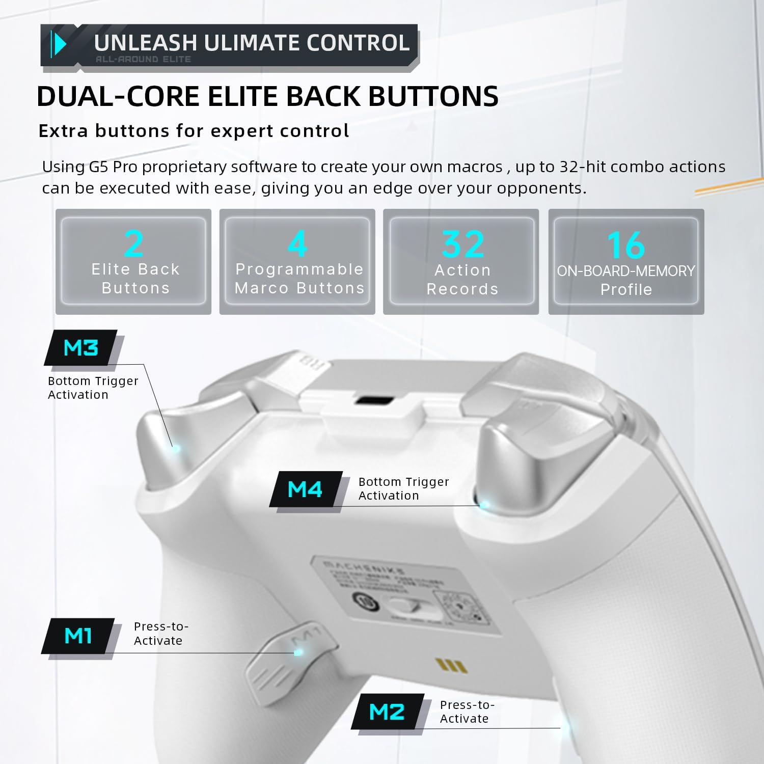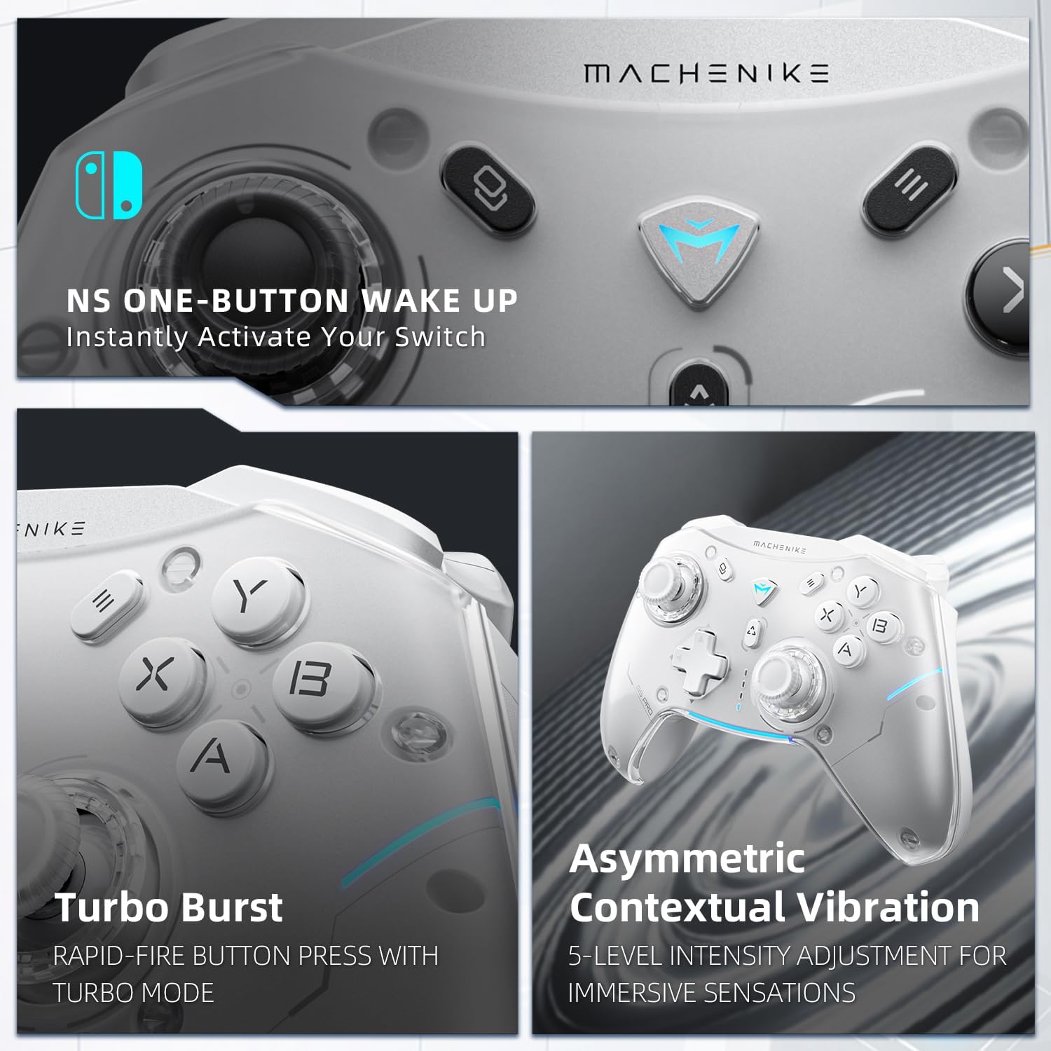 Безжичен контролер Machenike G5 Pro за Windows PC/Switch/IOS/Android, RGB светлини, PC контролер, джойстик и спусък с ефект на Хол, жироскоп, (бял)