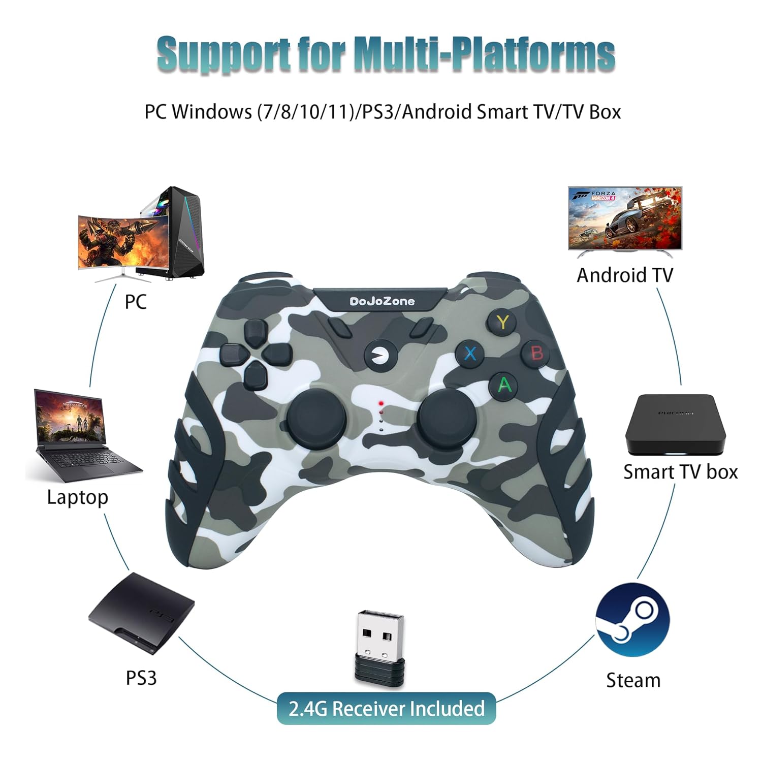 Геймпадът е съвместим с Windows 11/10/7/8, PS3, Android Smart TV/TV Box, Steam, лаптоп и Raspberry Pi.