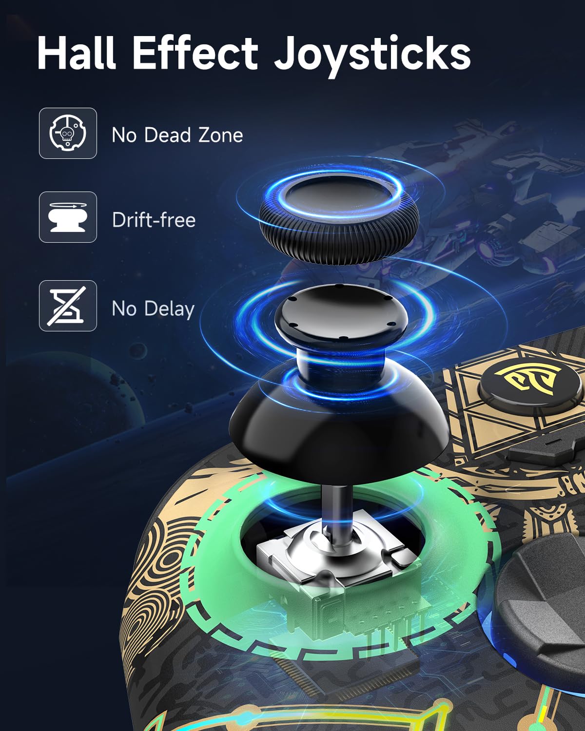 • Тригери и джойстици на Хол: двойните тригери и джойстици на Хол осигуряват по-прецизен контрол. Няма мъртва зона, няма дрейф.
