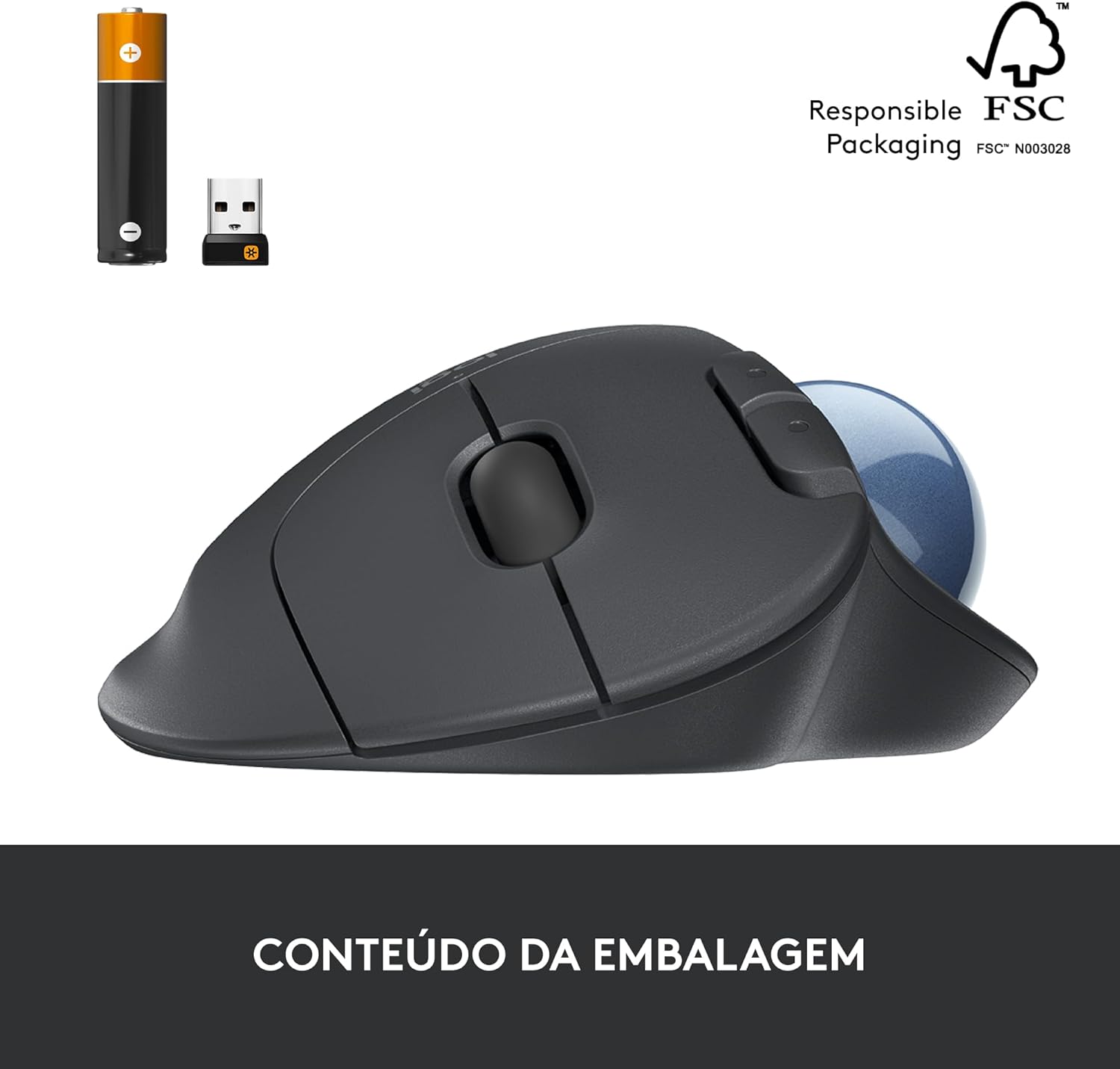 Безжичен тракбол Logitech Ergo M575, ергономичен комфортен дизайн, оптична безжична връзка до 10 метра, 2000 DPI, Bluetooth технология - 910-005869 (черен) (подновен)