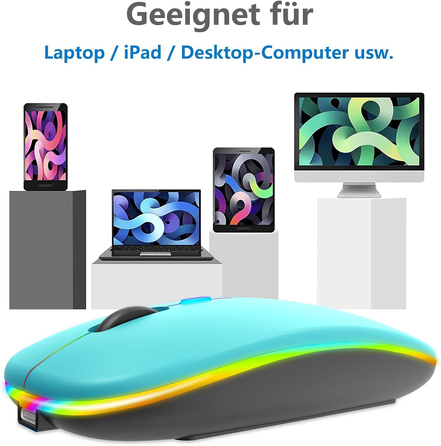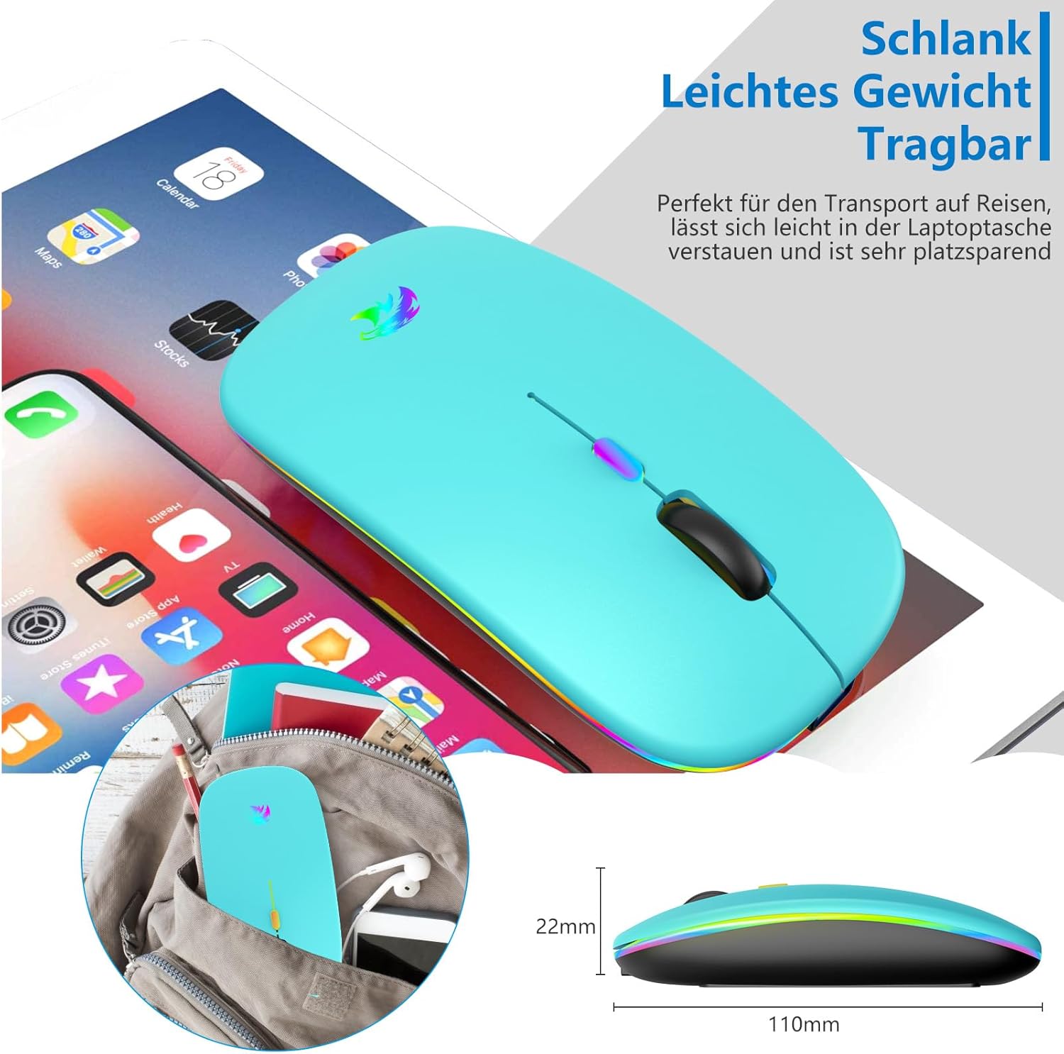 Безжична Bluetooth, Безжична мишка, 2.4 GHz USB мишка, 1600 DPI Оптично проследяване, за лаптоп, компютър, PC, Mac, iOS, Android, iPad, Windows, Apple (Lake Blue)