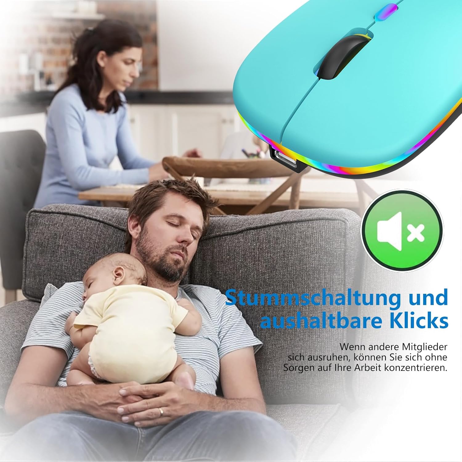 • Вградена батерия и автоматично пестене на енергия: безжичната мишка има вградена батерия (500 mAh) и се предлага с кабел за зареждане, който може да се зарежда през USB порта. Времето за зареждане е само 2-3 часа и поддържа 30 дни в режим на готовност. Ако не използвате мишката в продължение на 5 минути, тя автоматично преминава в режим на заспиване, за да пести енергия от батерията. Просто щракнете с мишката, за да се върнете в работен режим.