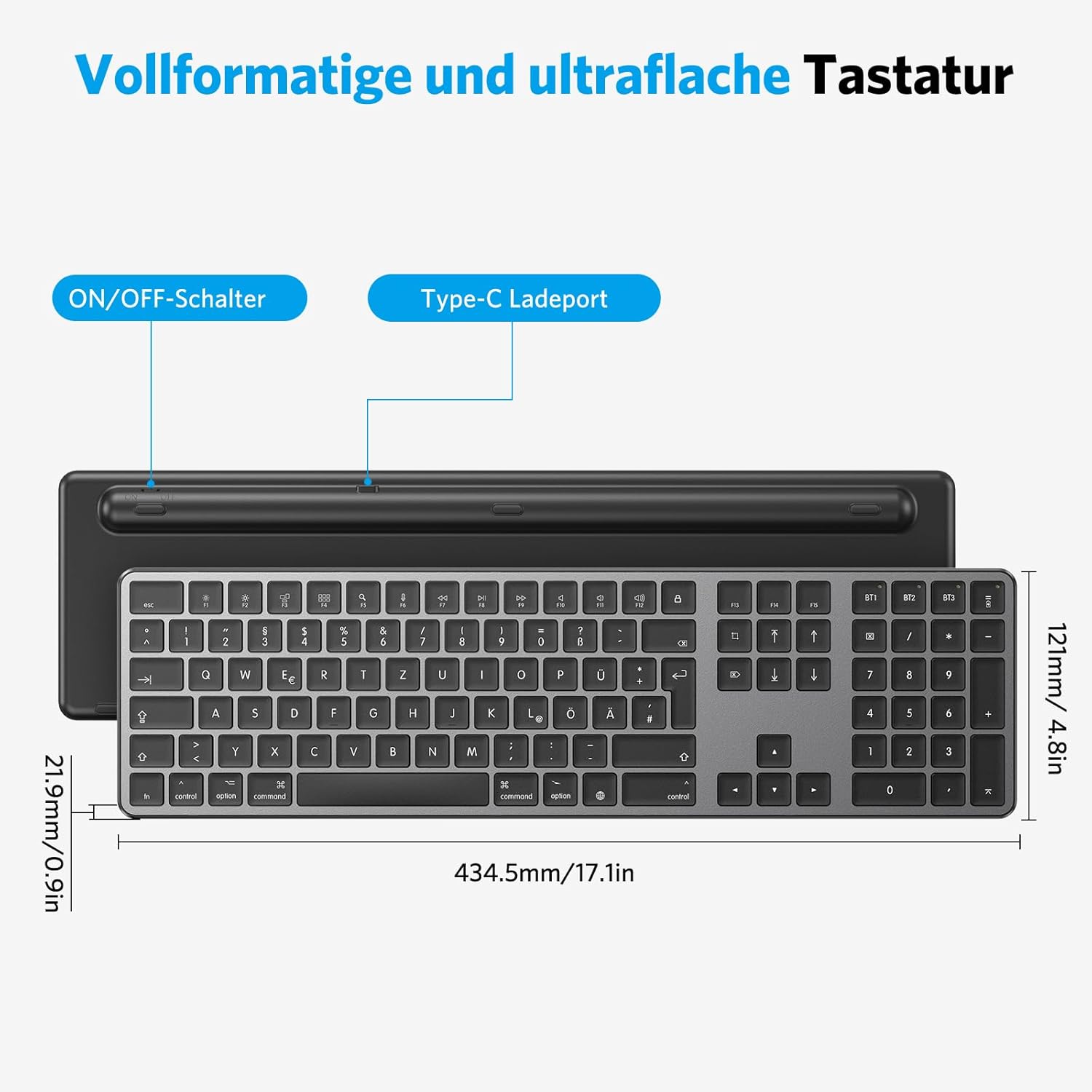 • 3. УДОБНА КЛАВИАТУРА С ПЪЛЕН РАЗМЕР Тази Bluetooth клавиатура за Mac с пълен размер е добър избор за офис и домашна употреба, осигурявайки фантастично изживяване при писане. Клавиатурата с пълен размер с ножичен дизайн може да отговори на вашите изисквания, да ви осигури бърза реакция и добър контрол.