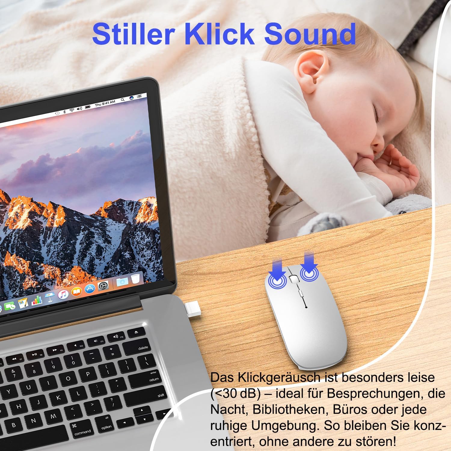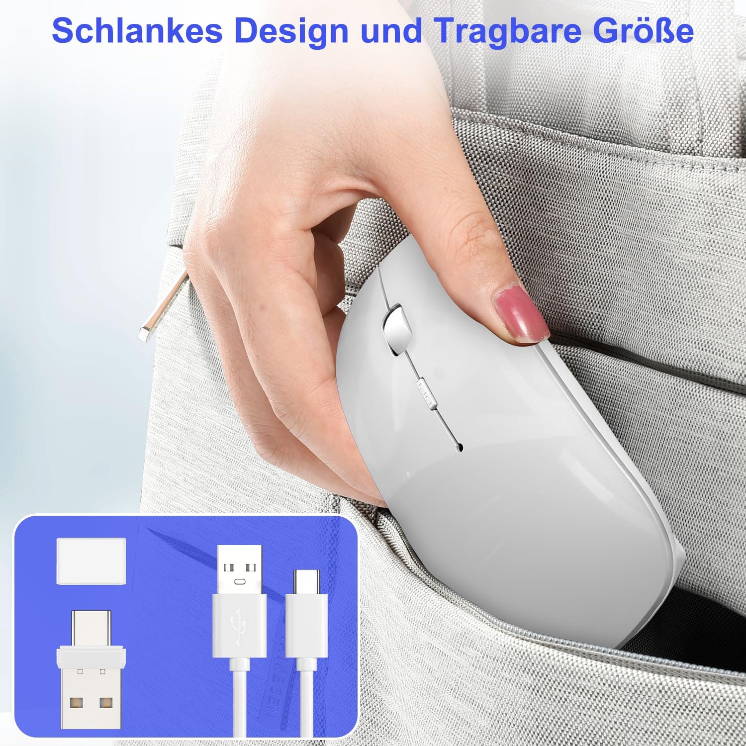 Безжична Bluetooth мишка Azmall за MacBook Pro/Air/Mac/iPad/лаптоп/настолен компютър/Mac/PC/компютър/телефон - Мишка за преносима и безшумна употреба с USB-C адаптер за 2.4 GHz без кабели
