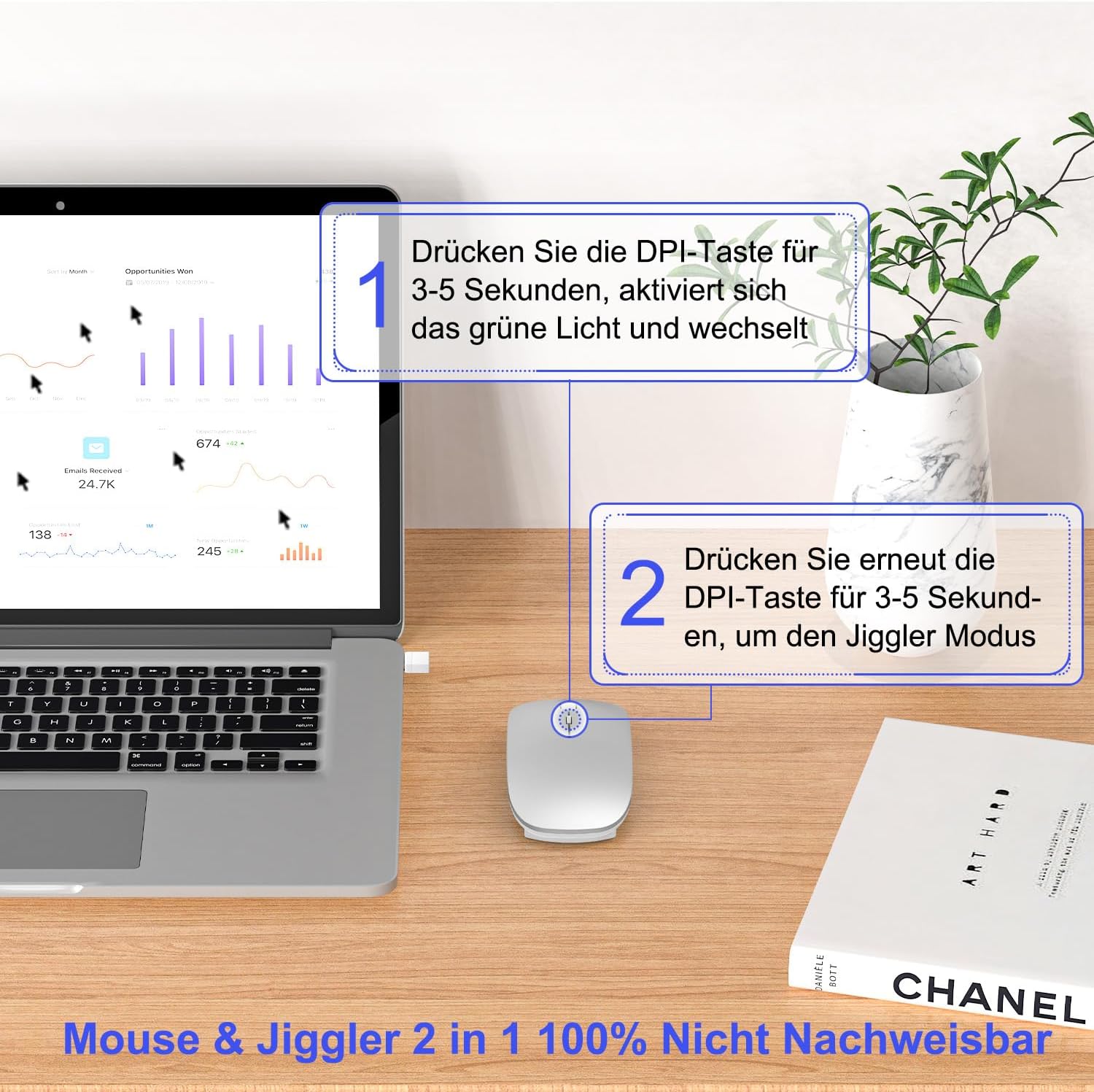 • Bluetooth мишка и джиглер в едно устройство - Azmall Bluetooth iPad Mouse 2025 съчетава безжична мишка и вграден джиглер! Вече няма нужда от отделно устройство - просто натиснете и задръжте бутона DPI за 3-5 секунди, за да активирате незабележимия режим на джиглер. Перфектен за офис служители, дистанционни работници, ИТ специалисти и всеки, който иска да предотврати заключването на компютъра, когато е далеч.
