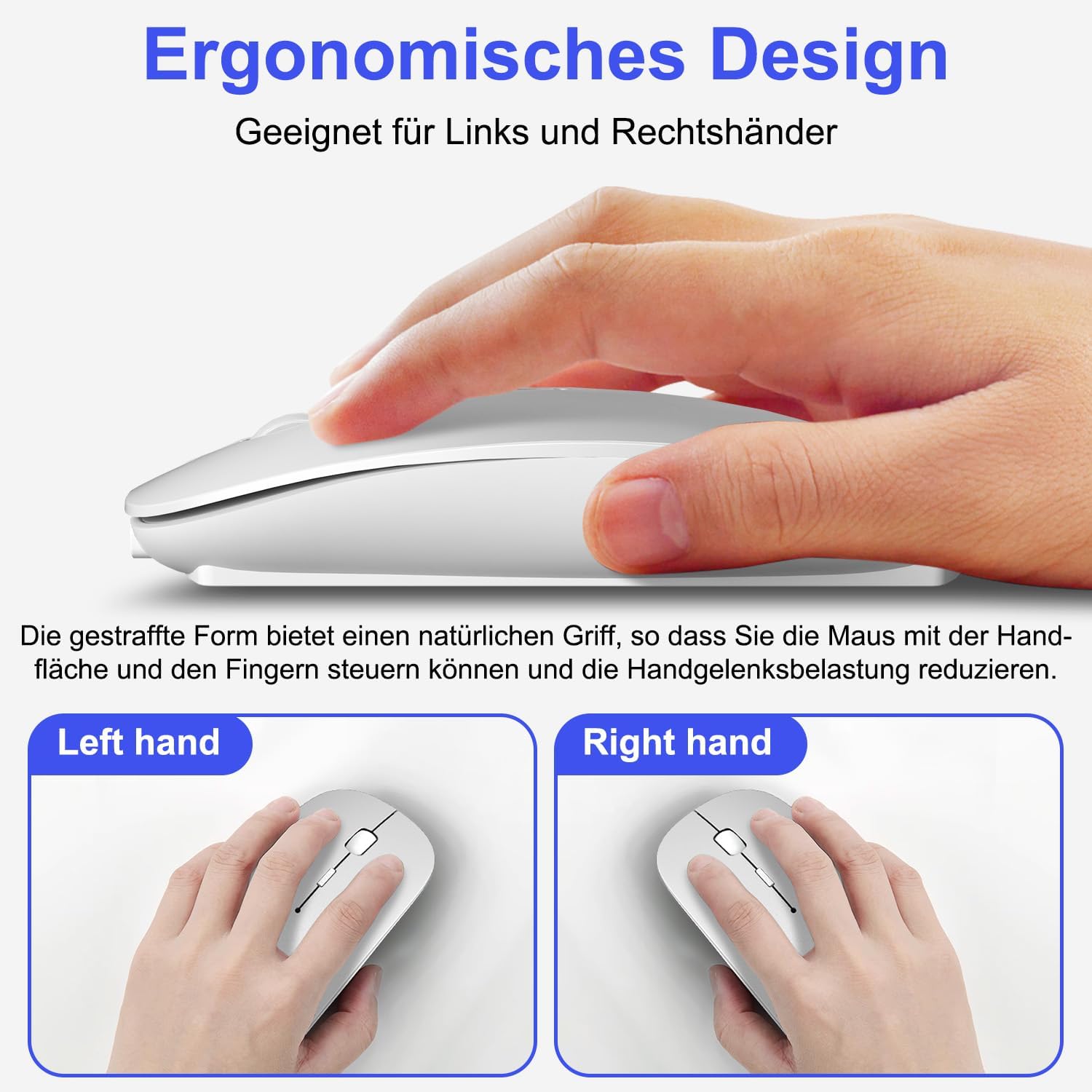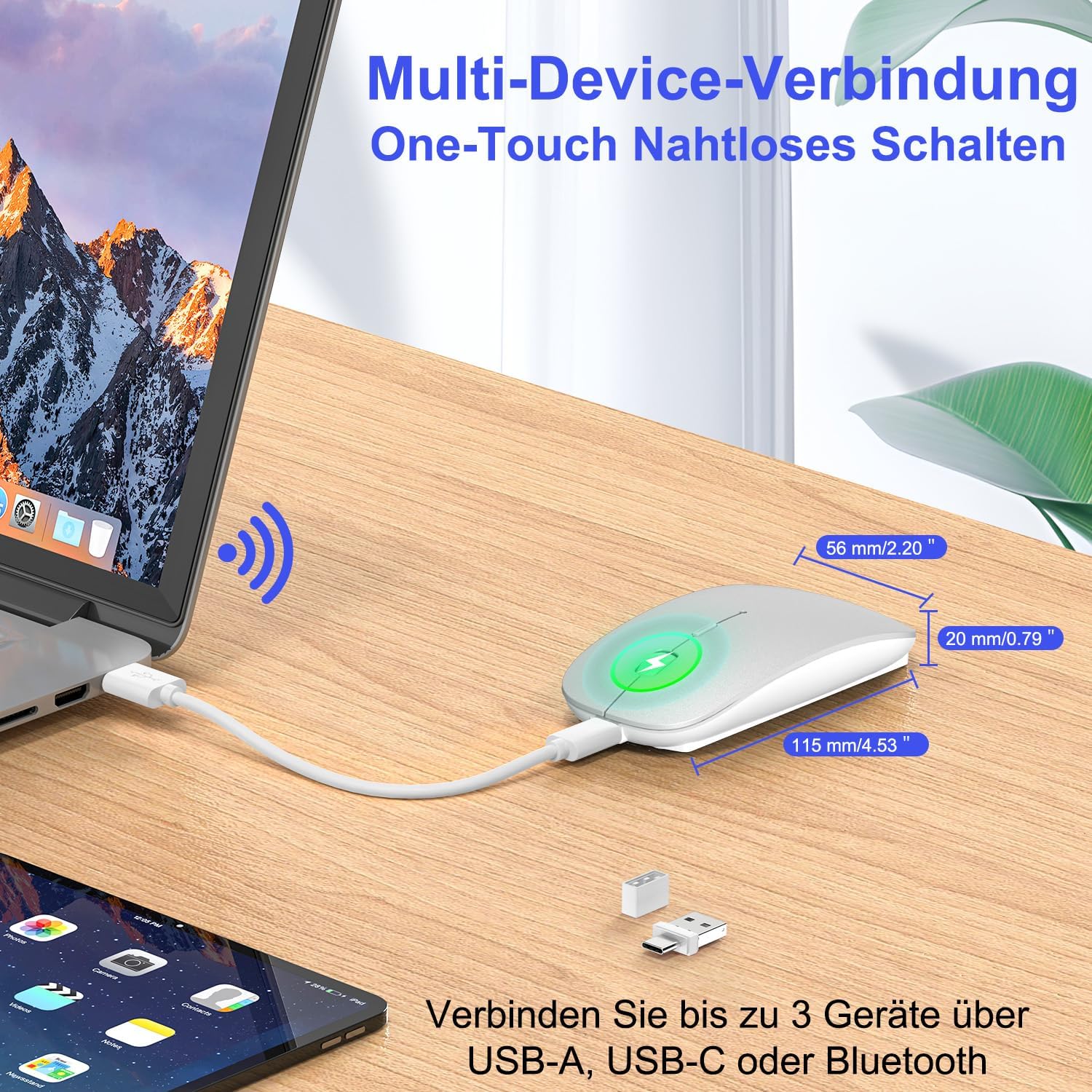 • Максимална гъвкавост за Apple и още повече връзка: свържете без усилие мишката си чрез Bluetooth 5.2 или 3.0 с Apple устройства като iPad, MacBook Pro, MacBook Air или iPhone - без адаптер! За други устройства, иновативният 2-в-1 приемник (2.4 GHz, USB-A и USB-C) предлага широка съвместимост с лаптоп, компютър, таблет и други. Една мишка - пълна гъвкавост за всички ваши устройства!