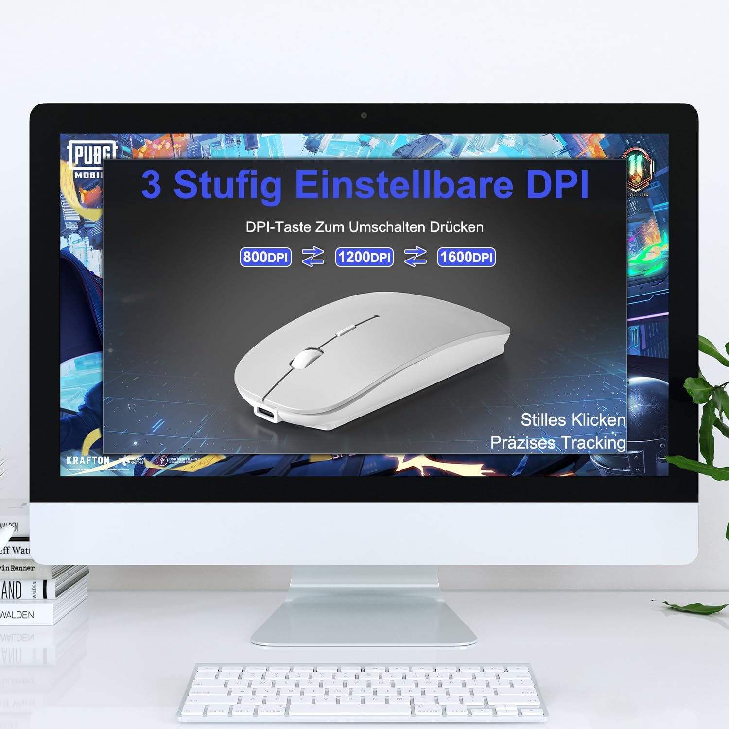 • ⭐ Регулируем DPI и оптичен сензор за проследяване - Преносимата мишка Azmall за iPad е оборудвана с мощен оптичен сензор и предлага 3 нива на DPI (800 / 1200 / 1600 DPI), които могат да се променят с кратко натискане на бутона (1 секунда). Усъвършенстваната технология за проследяване ви позволява да работите гладко върху широк спектър от повърхности - независимо дали е бюро, плот, подложка за мишка или дори диван. Работи надеждно върху дърво, кожа, смола, метал и други - Това е най-добрият ви заместител на Apple Magic Mouse.