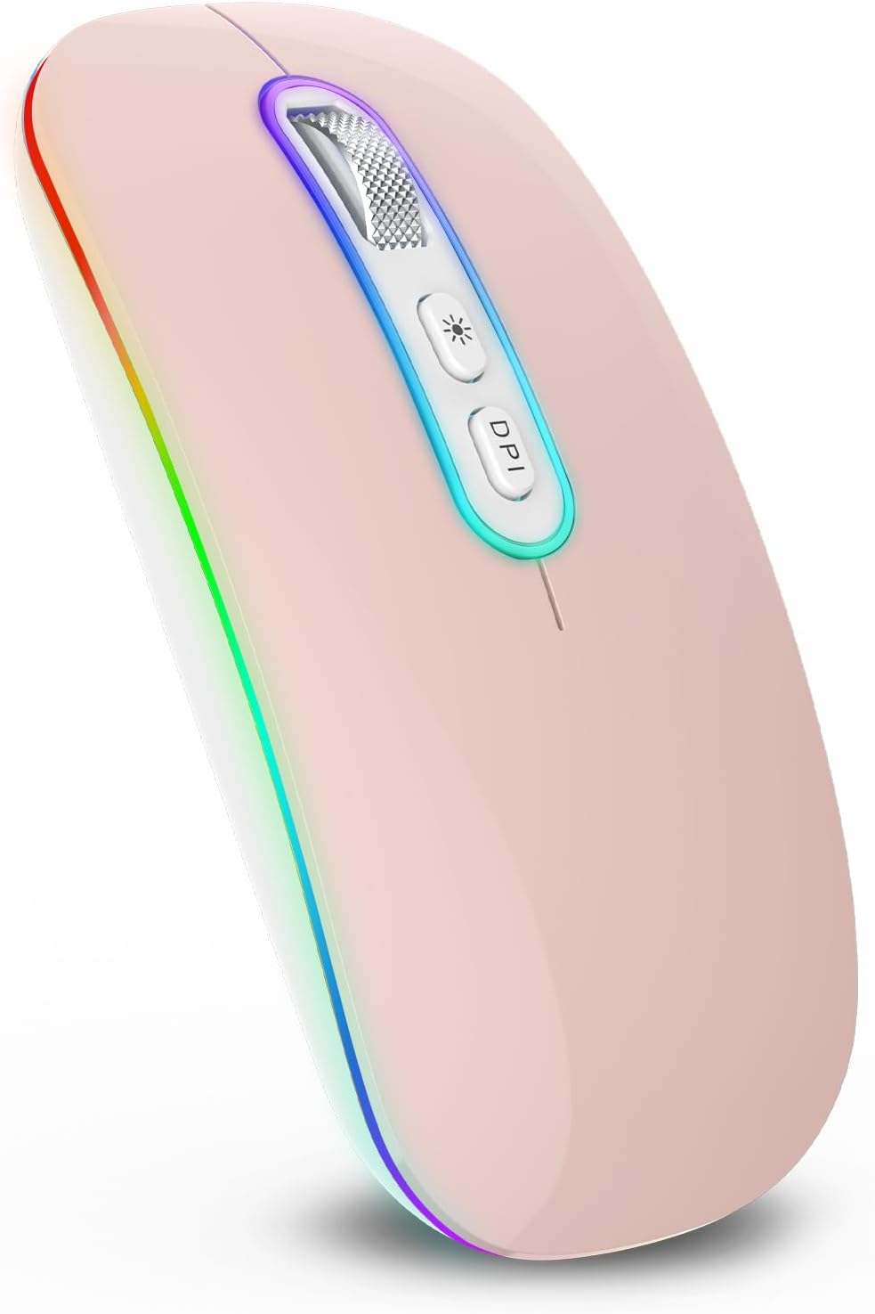 • Подобрен LED дизайн: безжичната Bluetooth мишка се осветява с 5 различни цвята, които се променят произволно по време на употреба, осигурявайки успокояващи светлинни ефекти и създавайки хладна и изискана атмосфера за работа и забавление. Изключвайте LED светлината на мишката, когато не я използвате, за да пестите енергия. С 3 регулируеми нива на DPI можете да контролирате скоростта на мишката за пътуване.