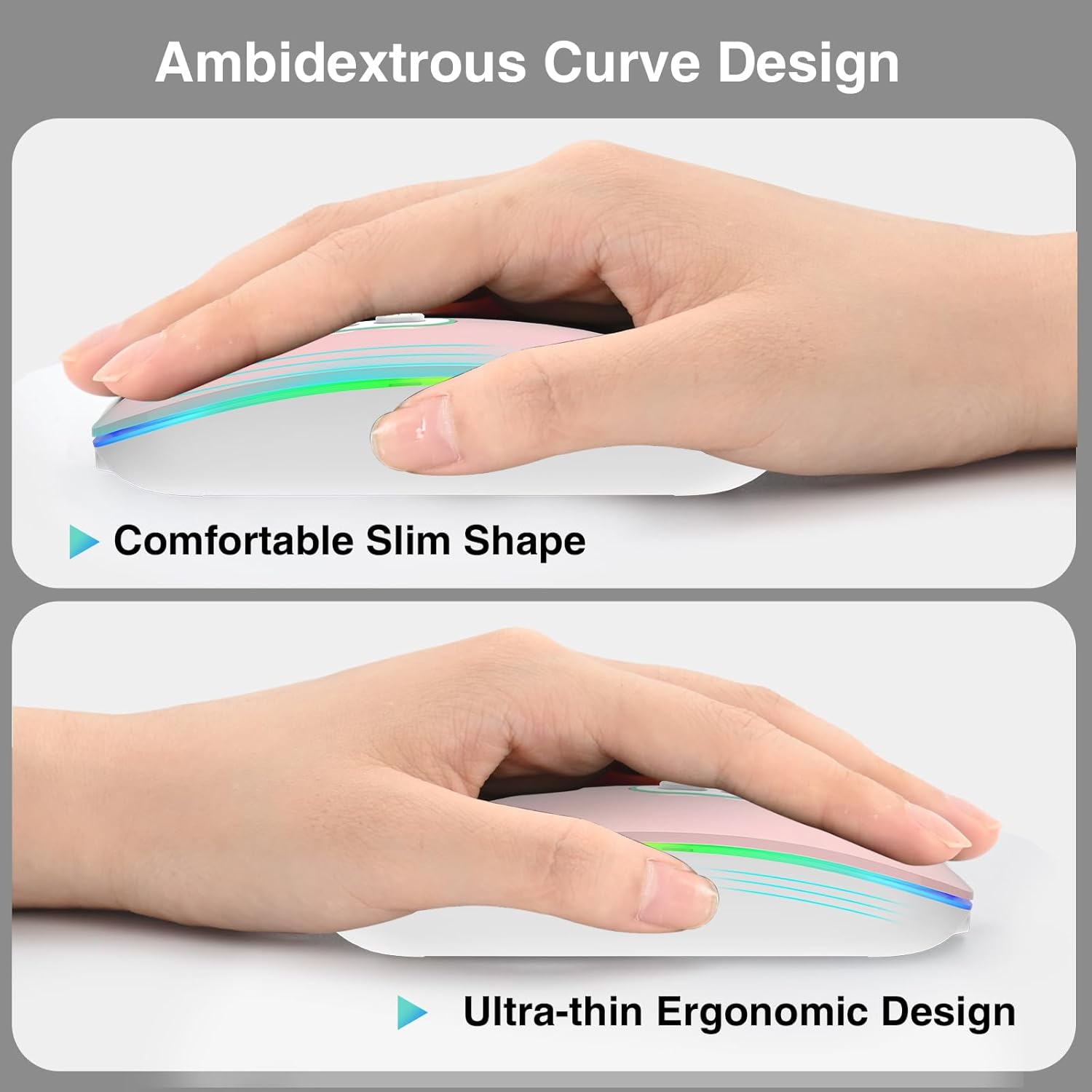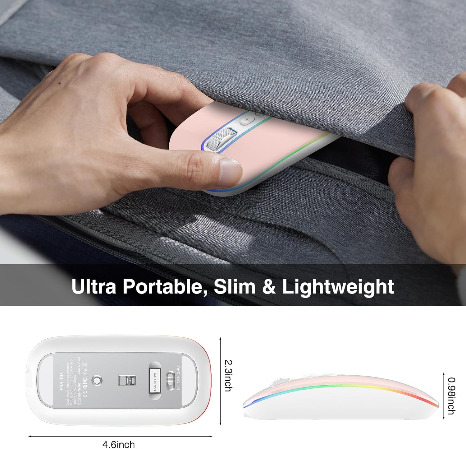 Безжична Bluetooth мишка cimetech (Bluetooth 5.1 + USB 2.4 GHz) LED с двоен режим, презареждаща се оптична, офис безжична мишка за лаптоп, MacBook Air Pro, iPad, компютър, настолен компютър, мишка