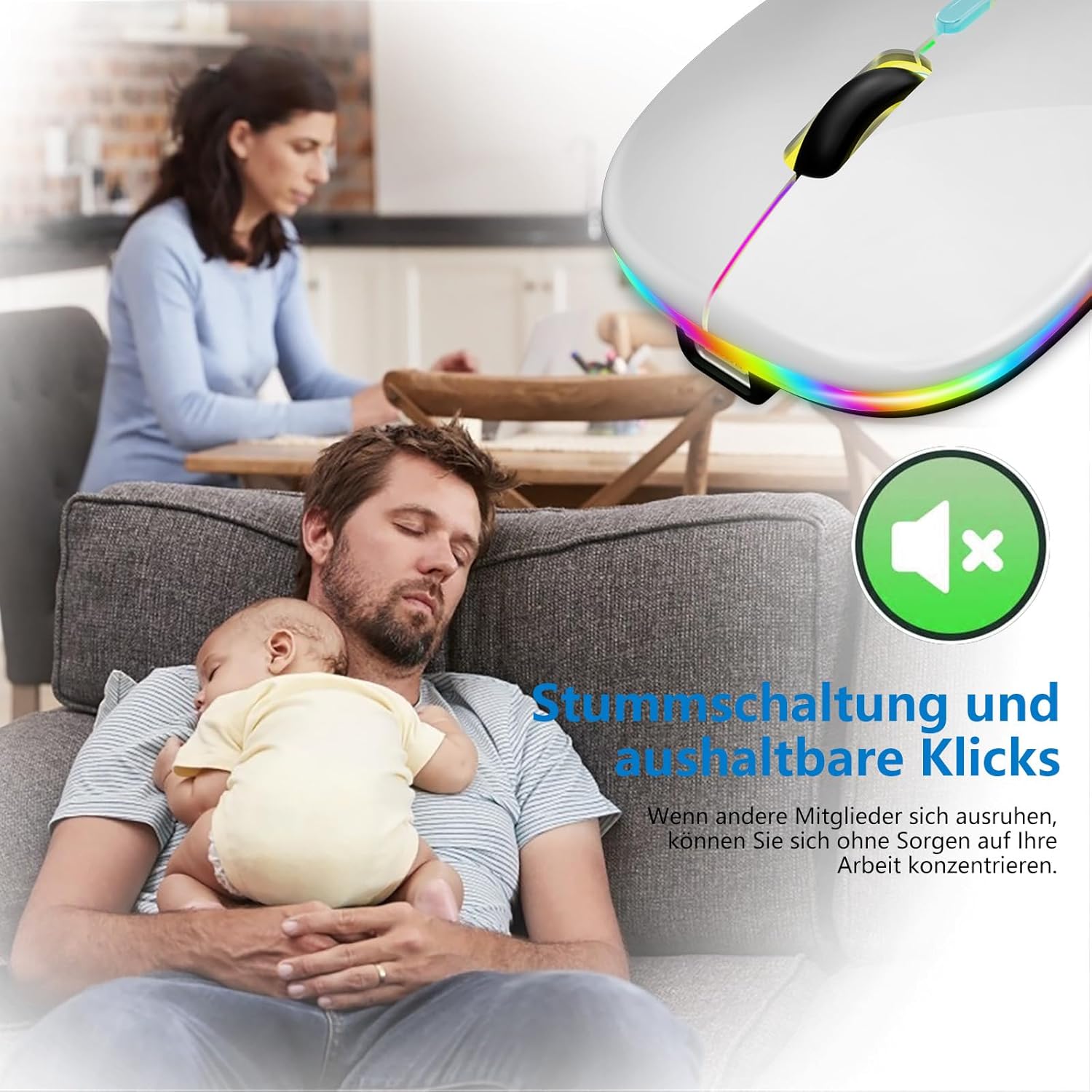 • Регулируема чувствителност и дихателна светлина: Компютърната мишка има 3 нива на DPI (1000, 1200, 1600), за да променя скоростта на мишката и по този начин да позволява плавно и точно проследяване върху по-голяма площ от конвенционалните оптични мишки. Меката, ярка светлина се променя произволно и добавя цвят към работата или свободното време.