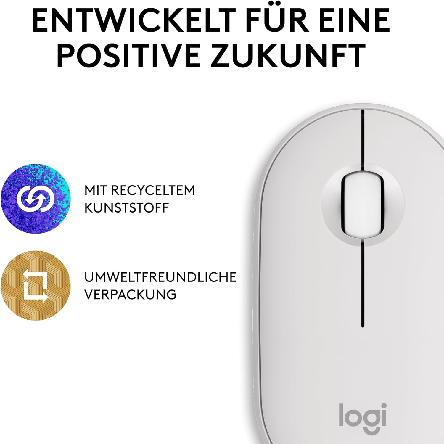 • Никога не е обикновена, вашият спътник навсякъде: С минималистичния си, заоблен дизайн, Pebble Mouse 2 M350s, изработена от рециклирана пластмаса(1), е тънка, лека и мобилна