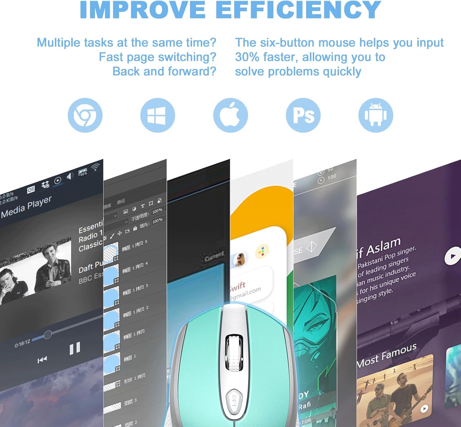 • Широка съвместимост: безжичната мишка за лаптоп е добре съвместима с Windows 7/8/10/XP, Vista 7/8 Mabook OS X 10.4 и Linux и др. Подходяща за настолни компютри, лаптопи, PC и други устройства с USB портове.