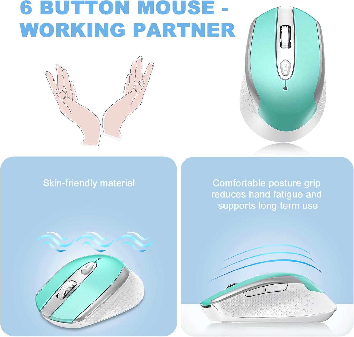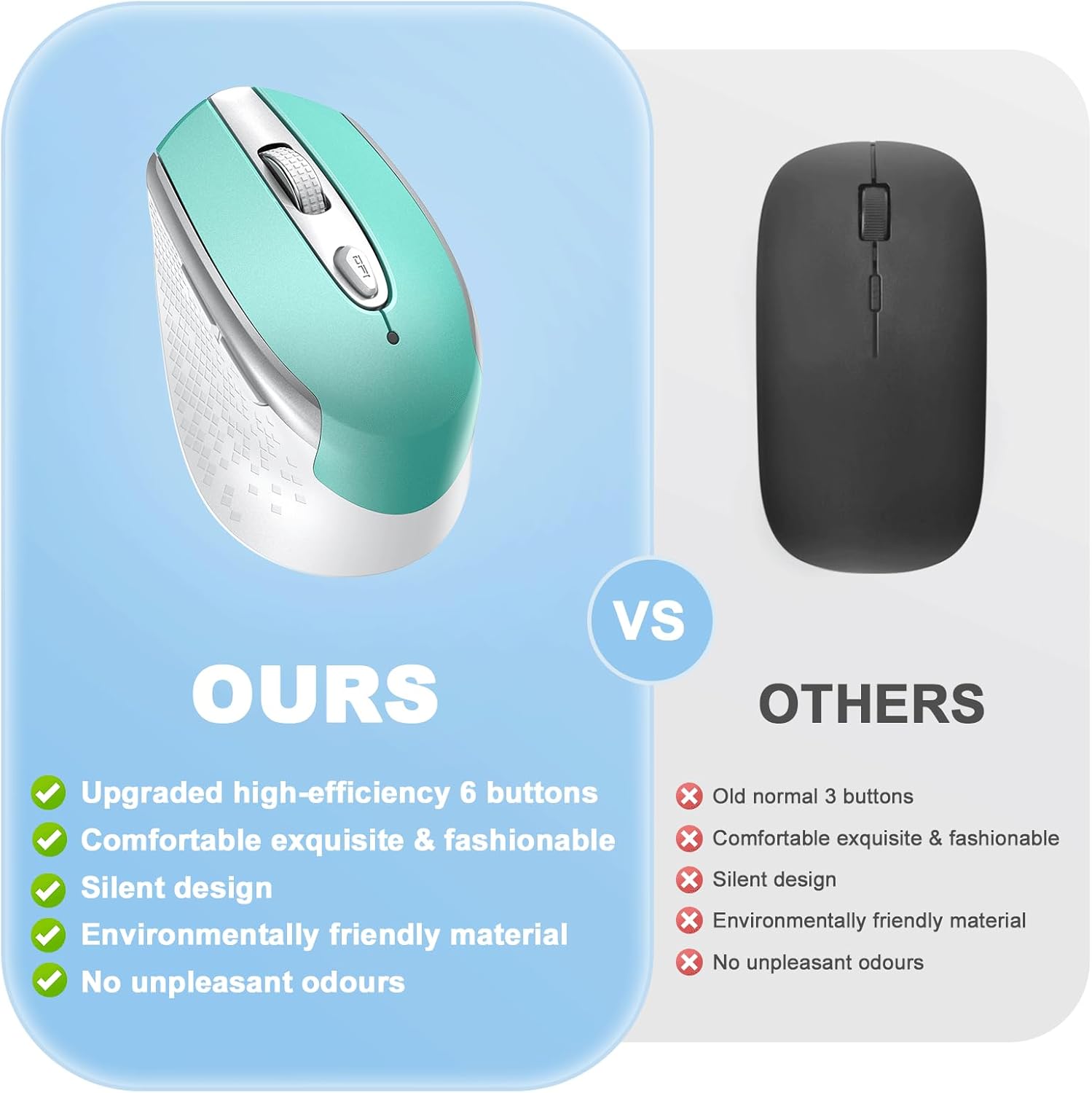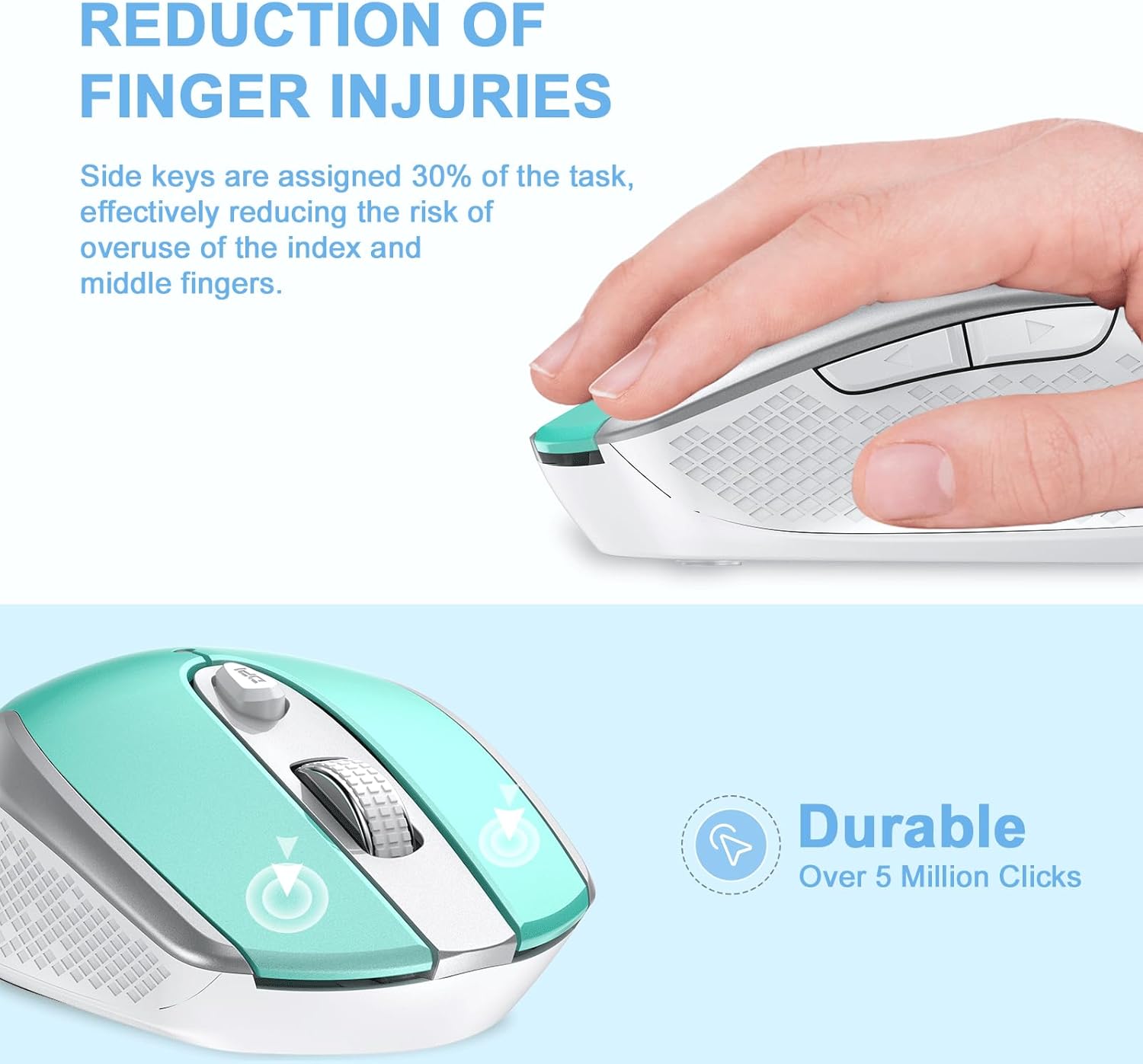 • Тихо щракване: намаляване на шума с до 90%. Мишката не се чува при щракване, колелцето на безжичната компютърна мишка е тихо при въртене. Идеална ергономична мишка за лаптоп, офис, дом и свободно време. Повърхностното покритие на тихата мишка осигурява мек захват. Не е лепкава, дори ако се потите.