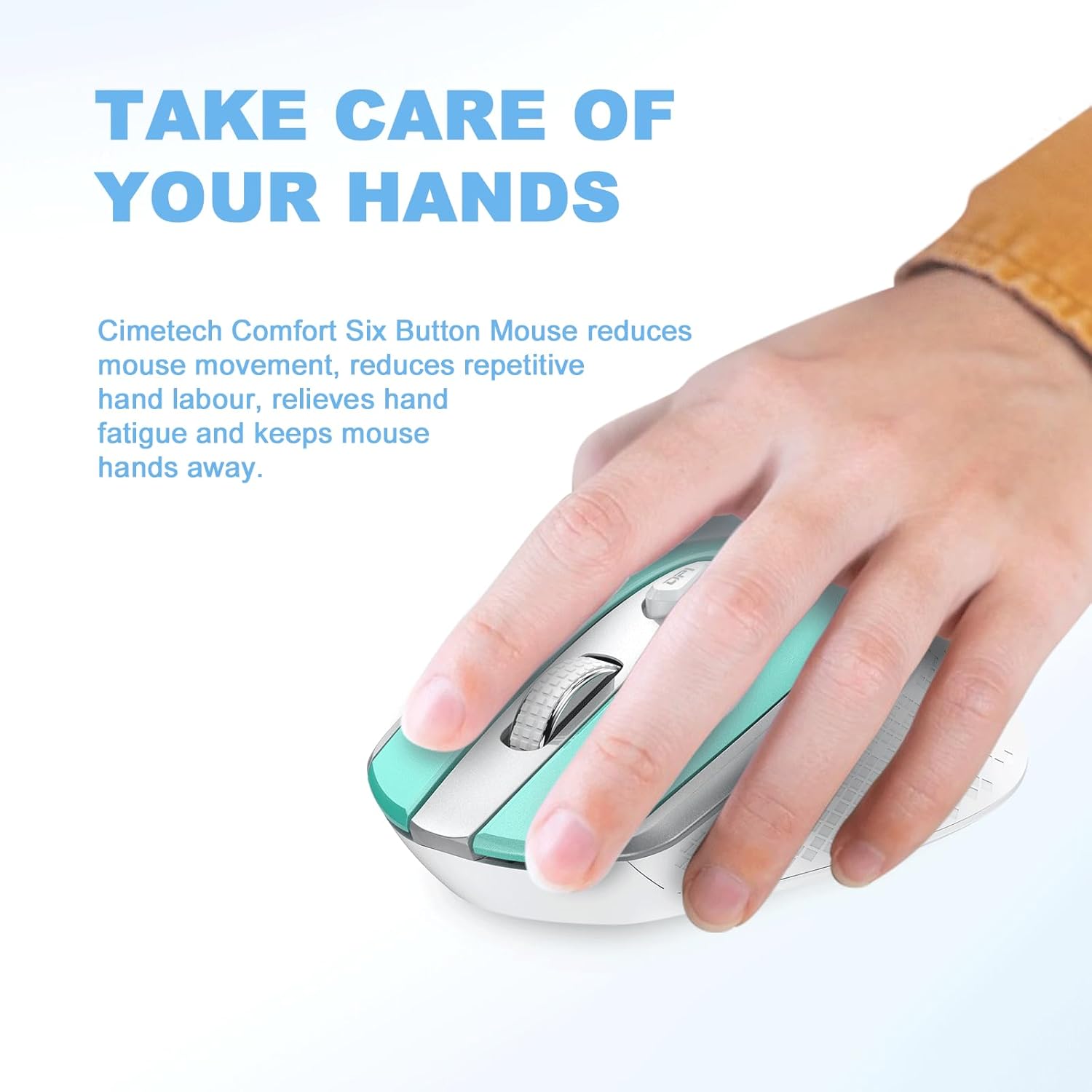 Безжична ергономична мишка cimetech 2.4G 1600 DPI, безжична, 6 бутона, регулируеми странични бутони, 3 нива на DPI, регулируеми за PC, лаптоп, iMac, MacBook, Microsoft Pro, Office Home